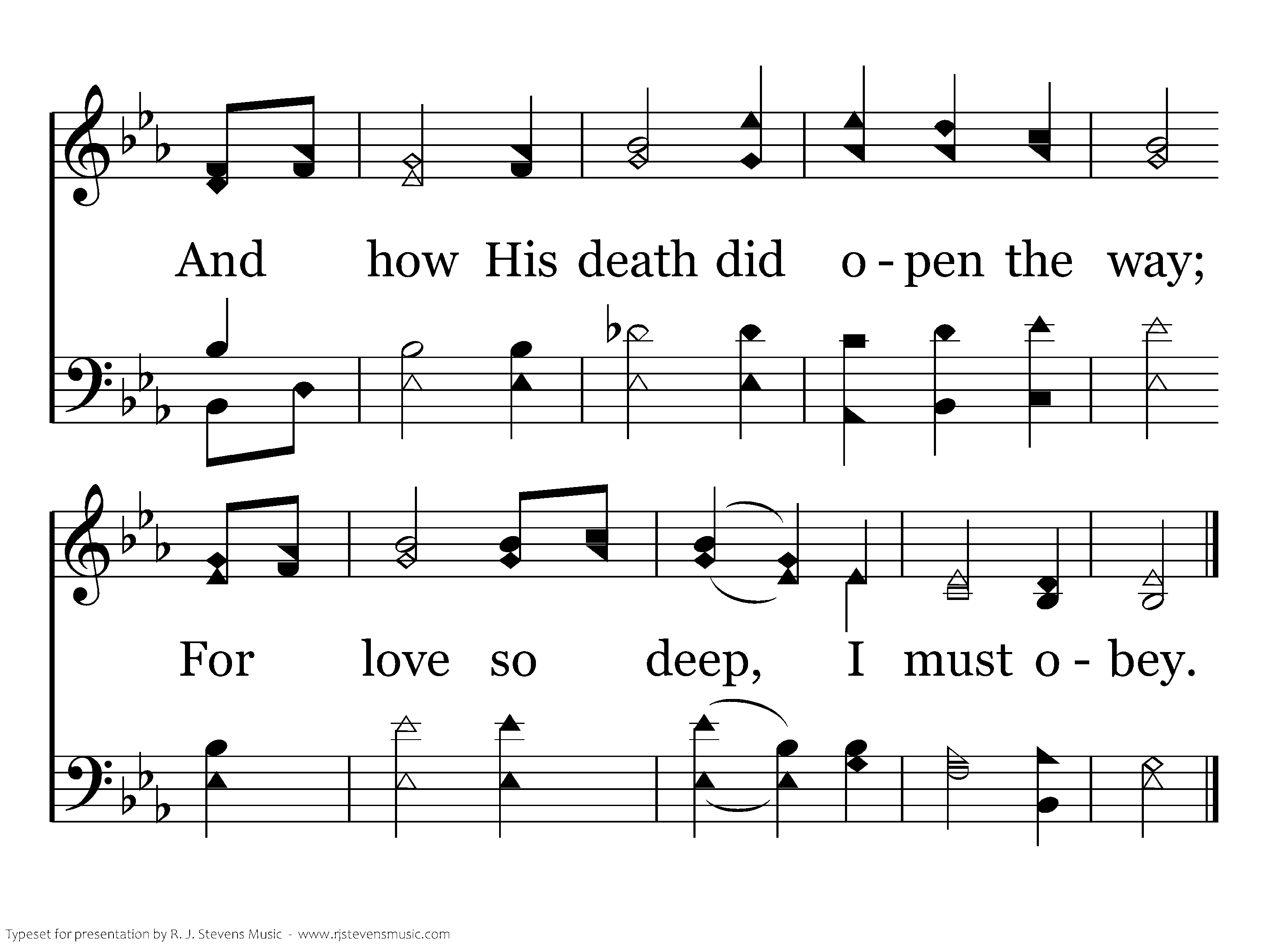 How deep His love, Lord help me see; That all my sins, Bring shame to Thee. And how His death, did open the way; For love so deep, I must obey.