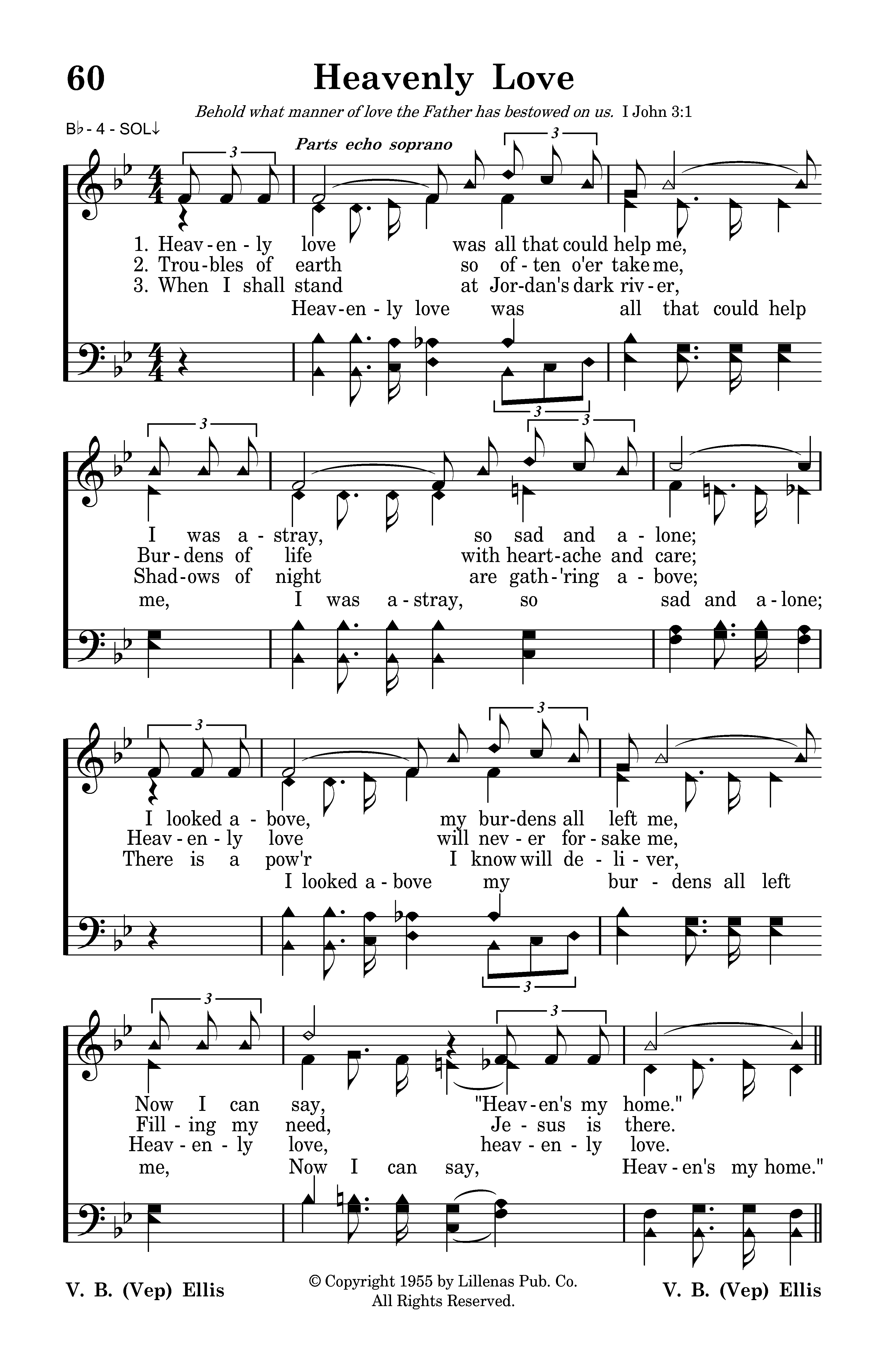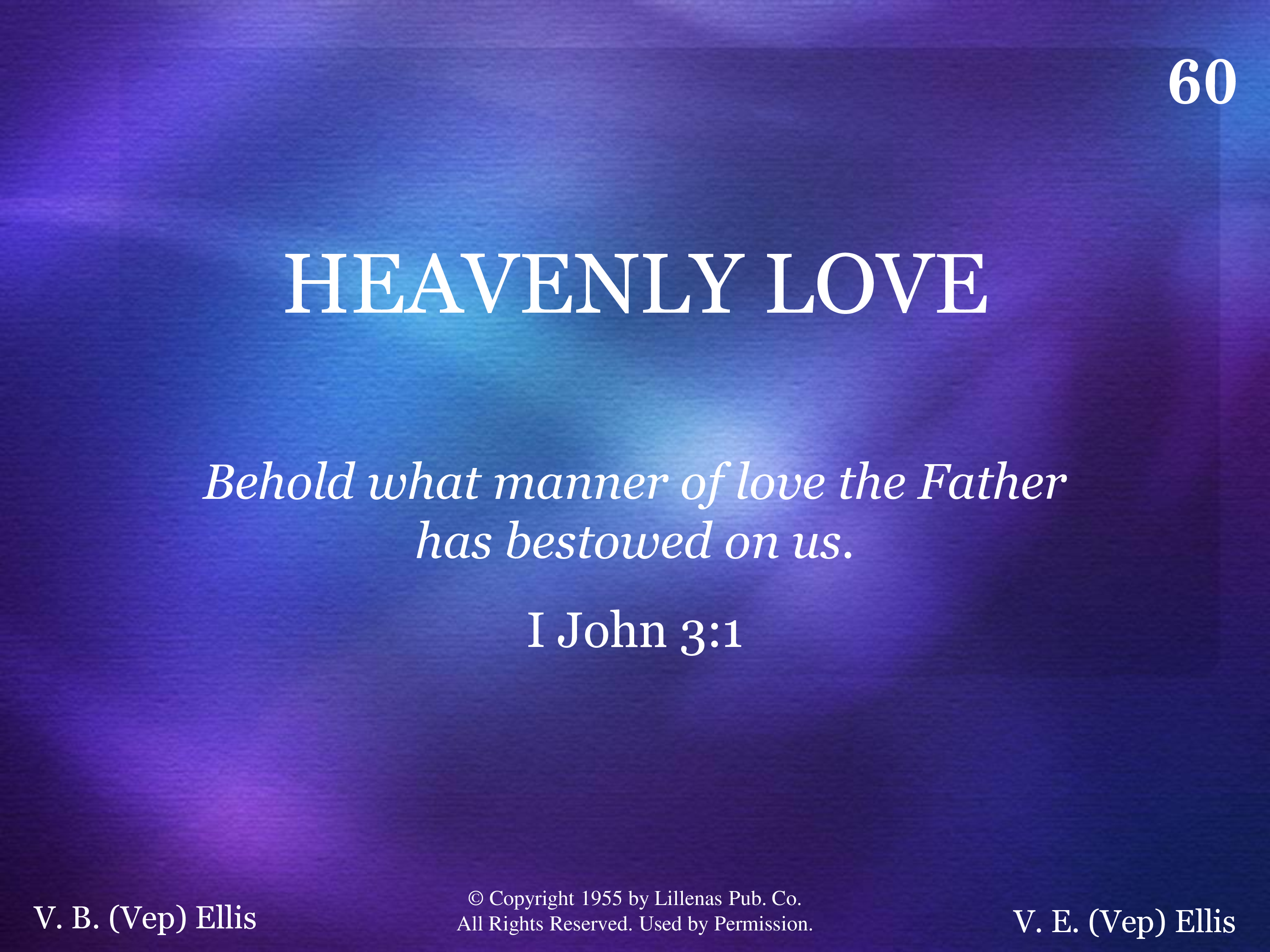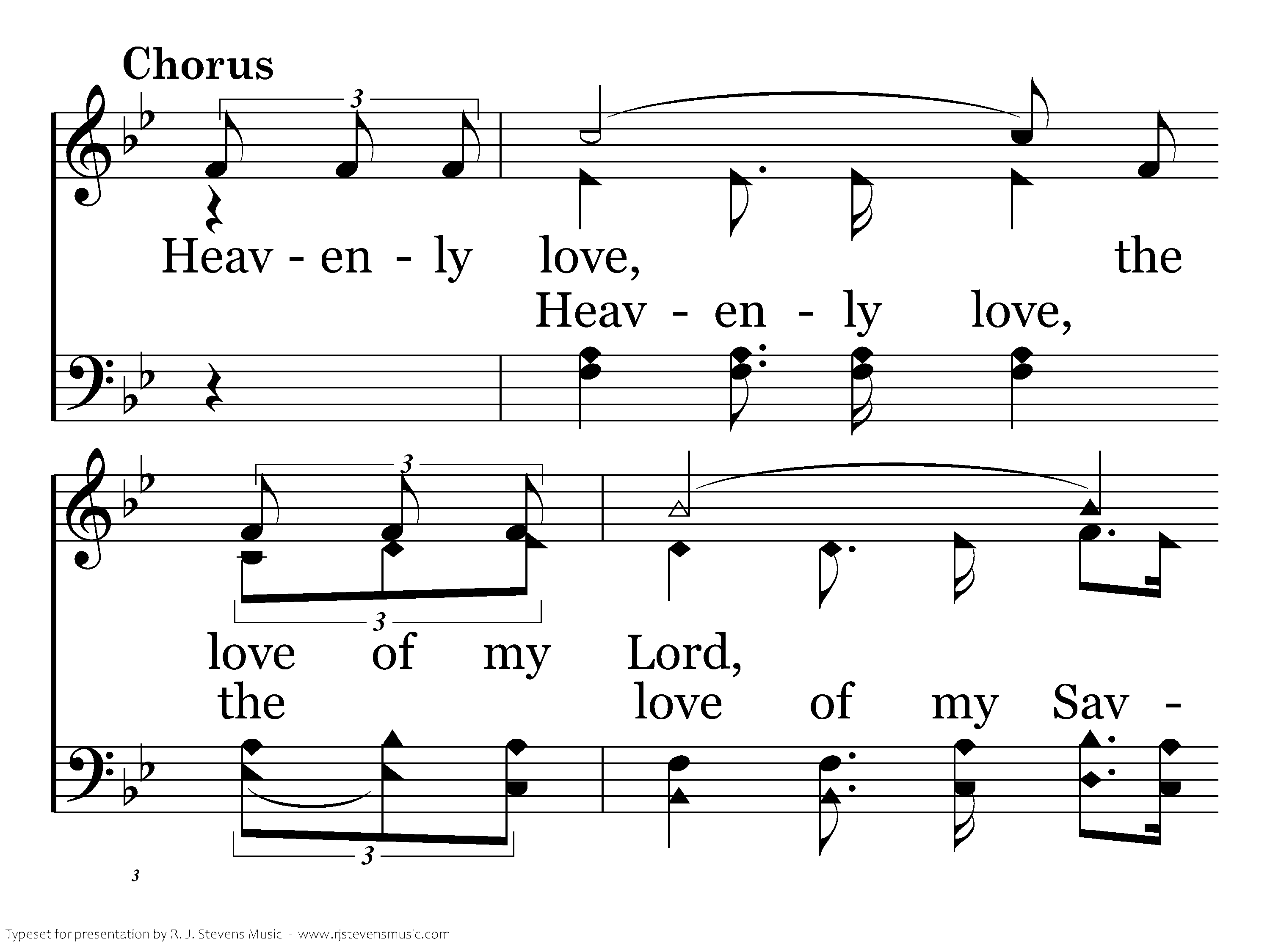 Heavenly love, the love of my Lord, Lifting above for He is my sword and shield; Giving me light in darkness of night, Heavenly love, Heavenly love.