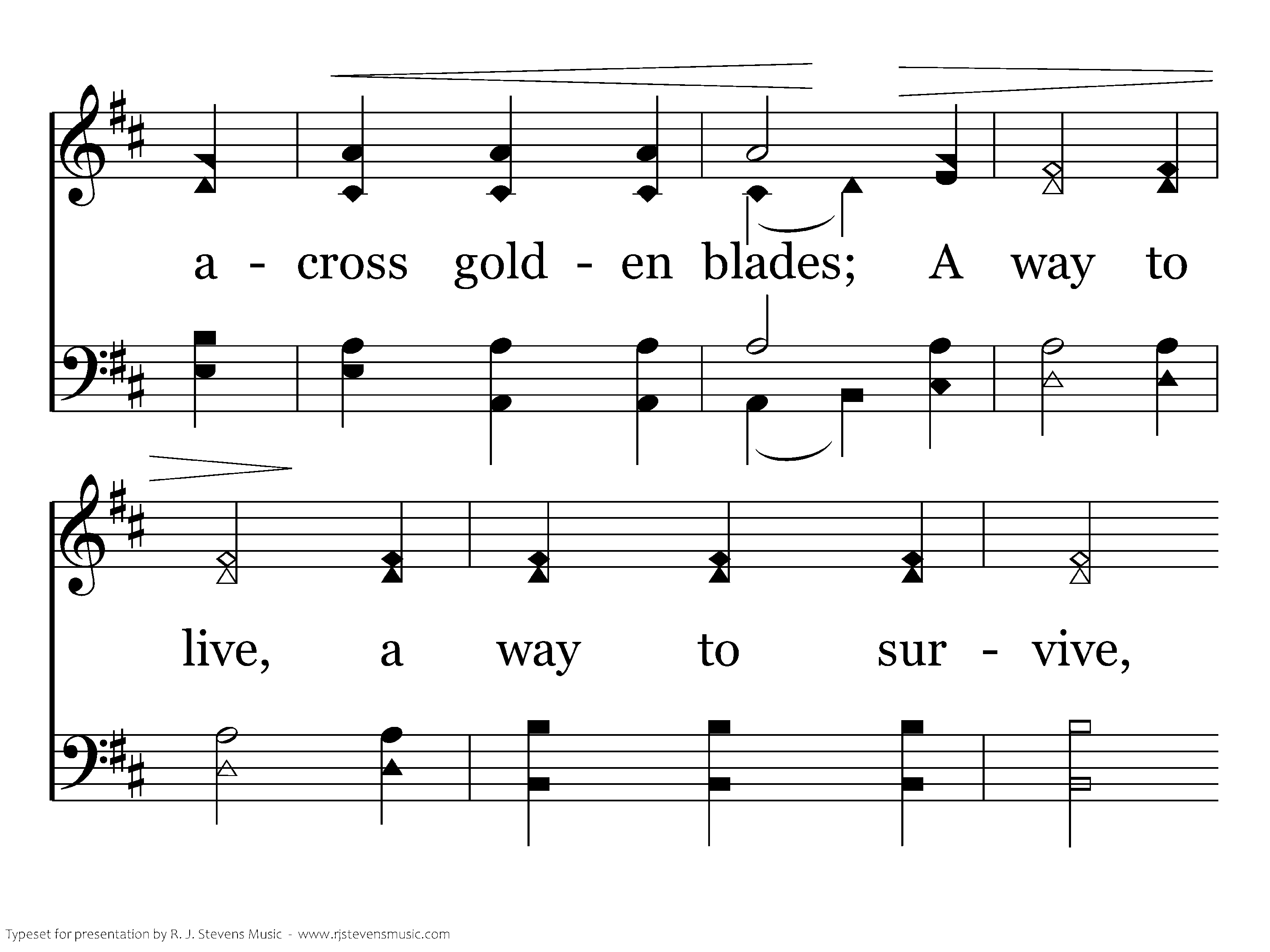 A mountain high with clouds in the haze, perhaps sunlight beams across golden blades; A way to live, a way to survive, Because our God is so much alive.