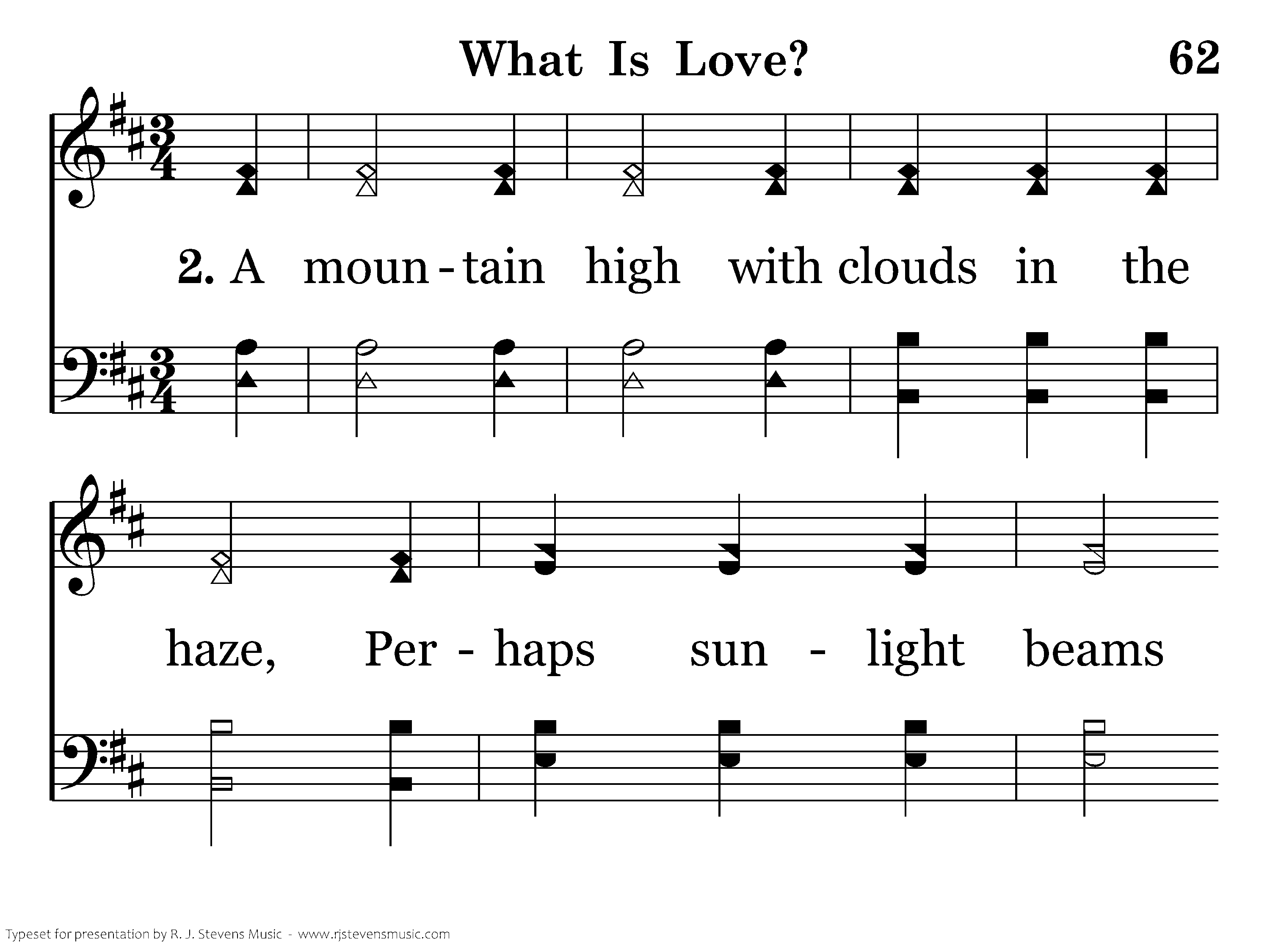 O, what is love? A soft fragile thing; It's hard to say words that make your heart sing; A gentle breeze, A soft summer rain, A rose with dew, A walk in the lane.