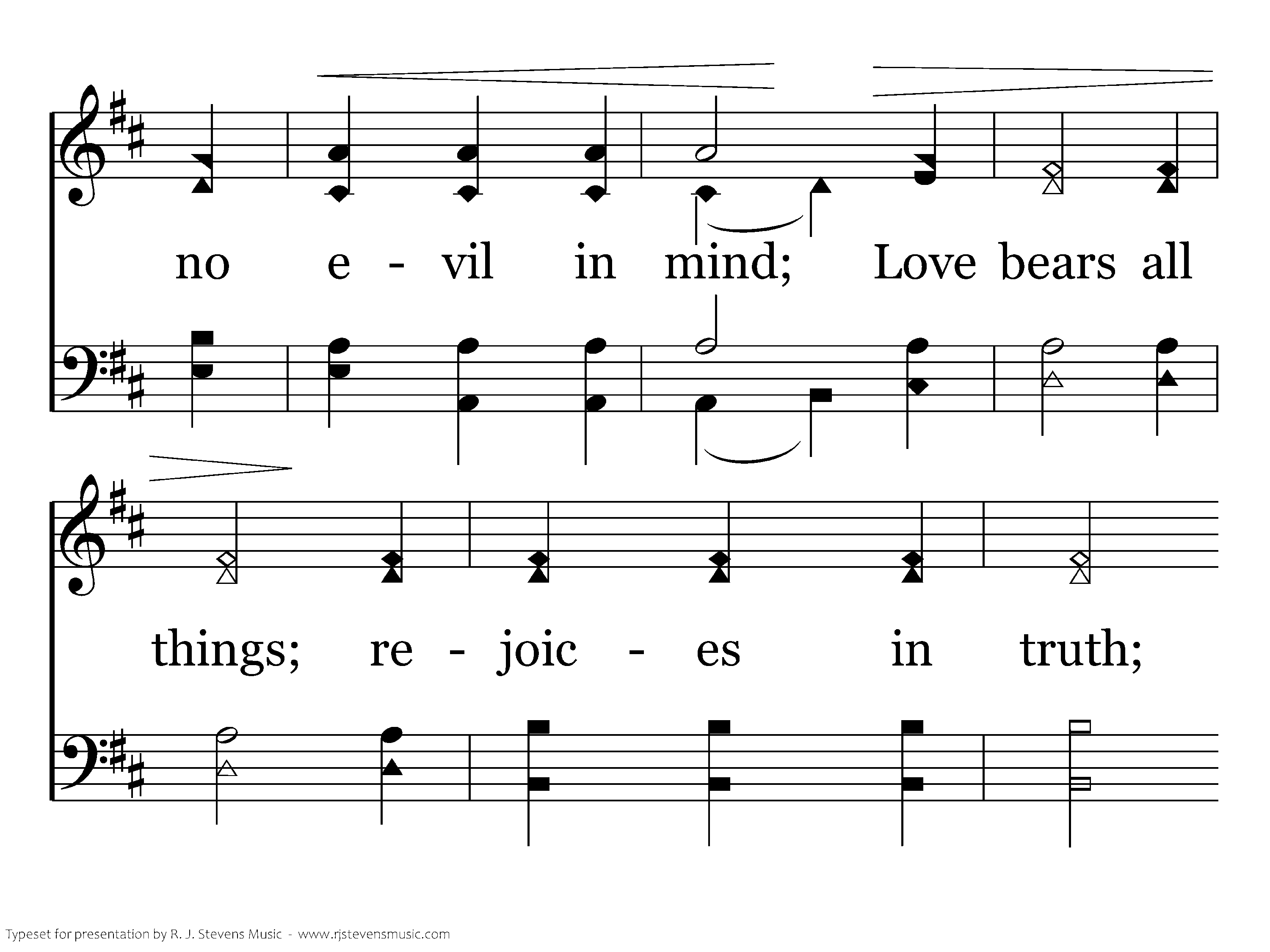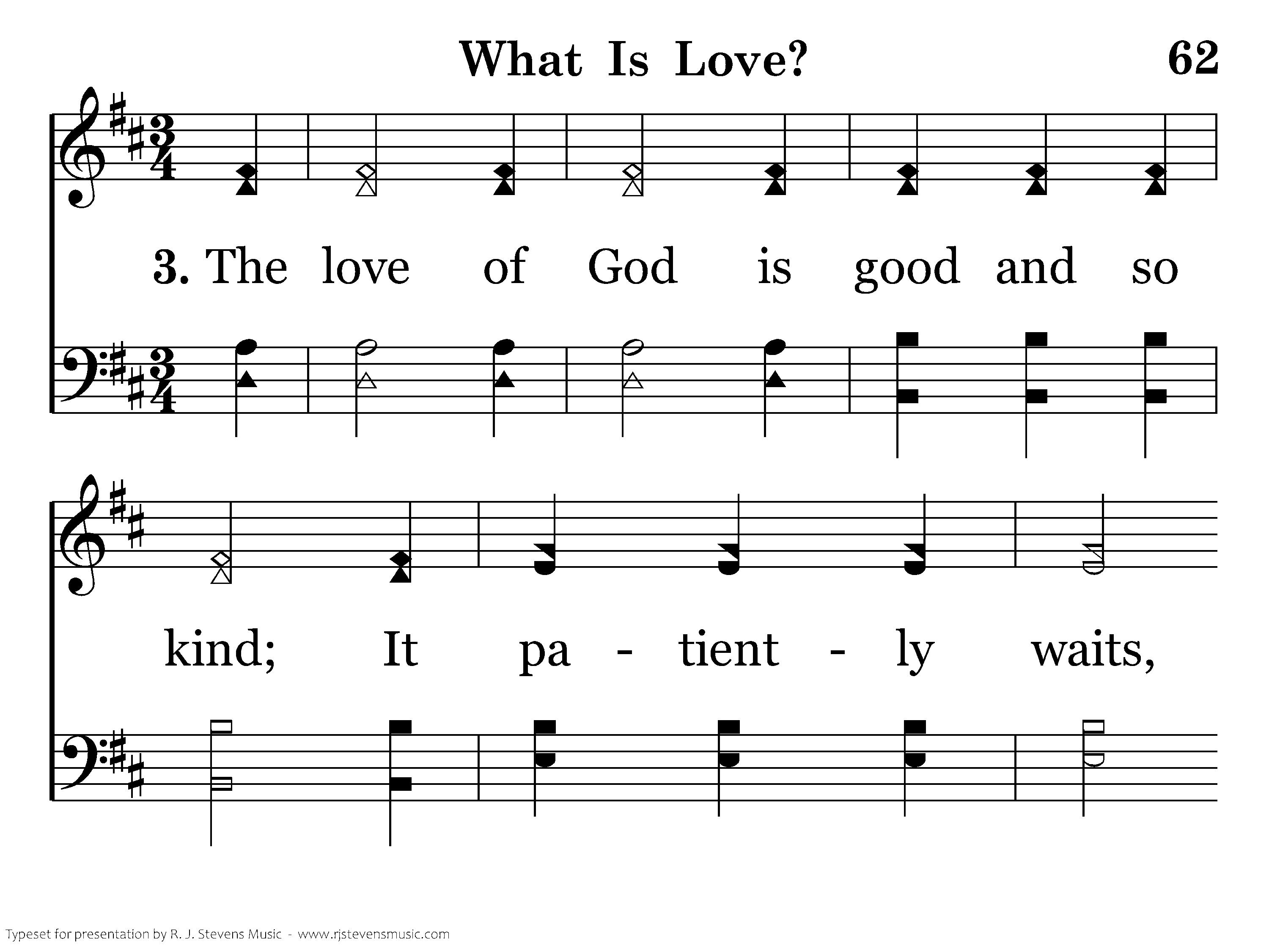 The love of God is good and so kind; It patiently waits, no evil in mind; Love bears all things; rejoices in truth; Its faith and hope will make the heart sing.