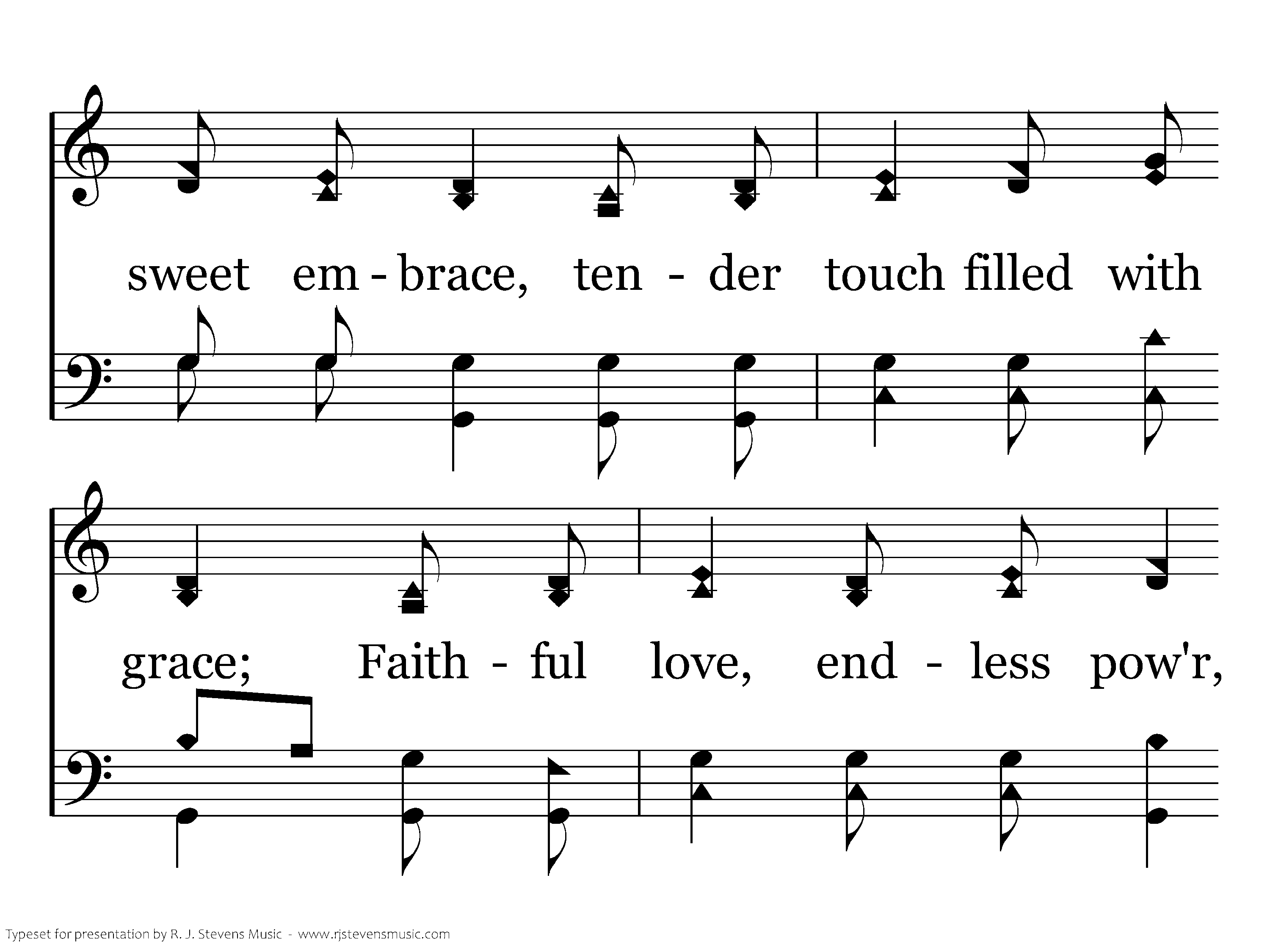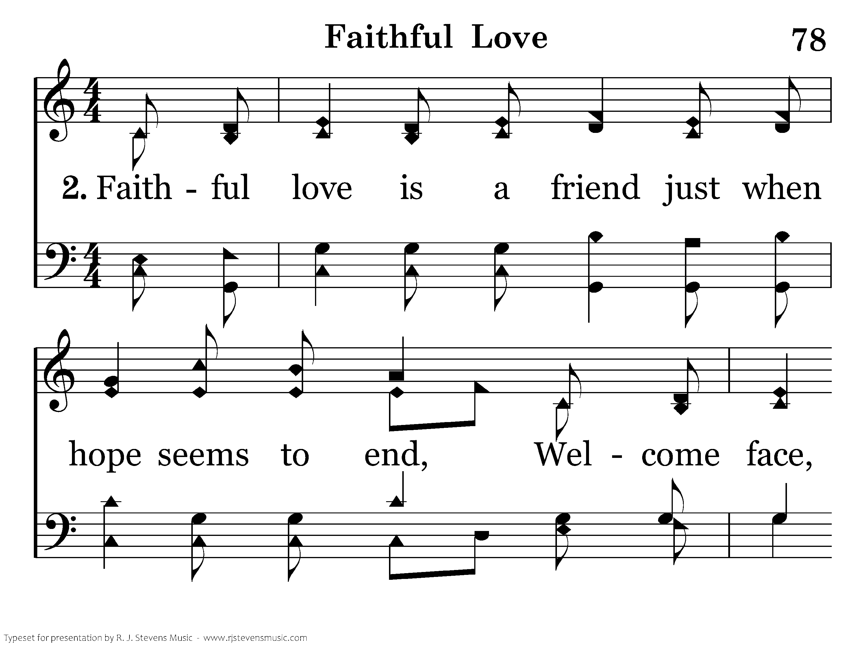 Faithful love is a friend just when hope seems to end, Welcome face, sweet embrace, tender touch filled with grace; Faithful love, endless pow'r, living flame, Spirit's fire, Burning bright in the night, guiding my way. Faithful love from above came to earth to show the Father's love; And I'll never be the same, for I've seen faithful love face to face, and Jesus is His name.