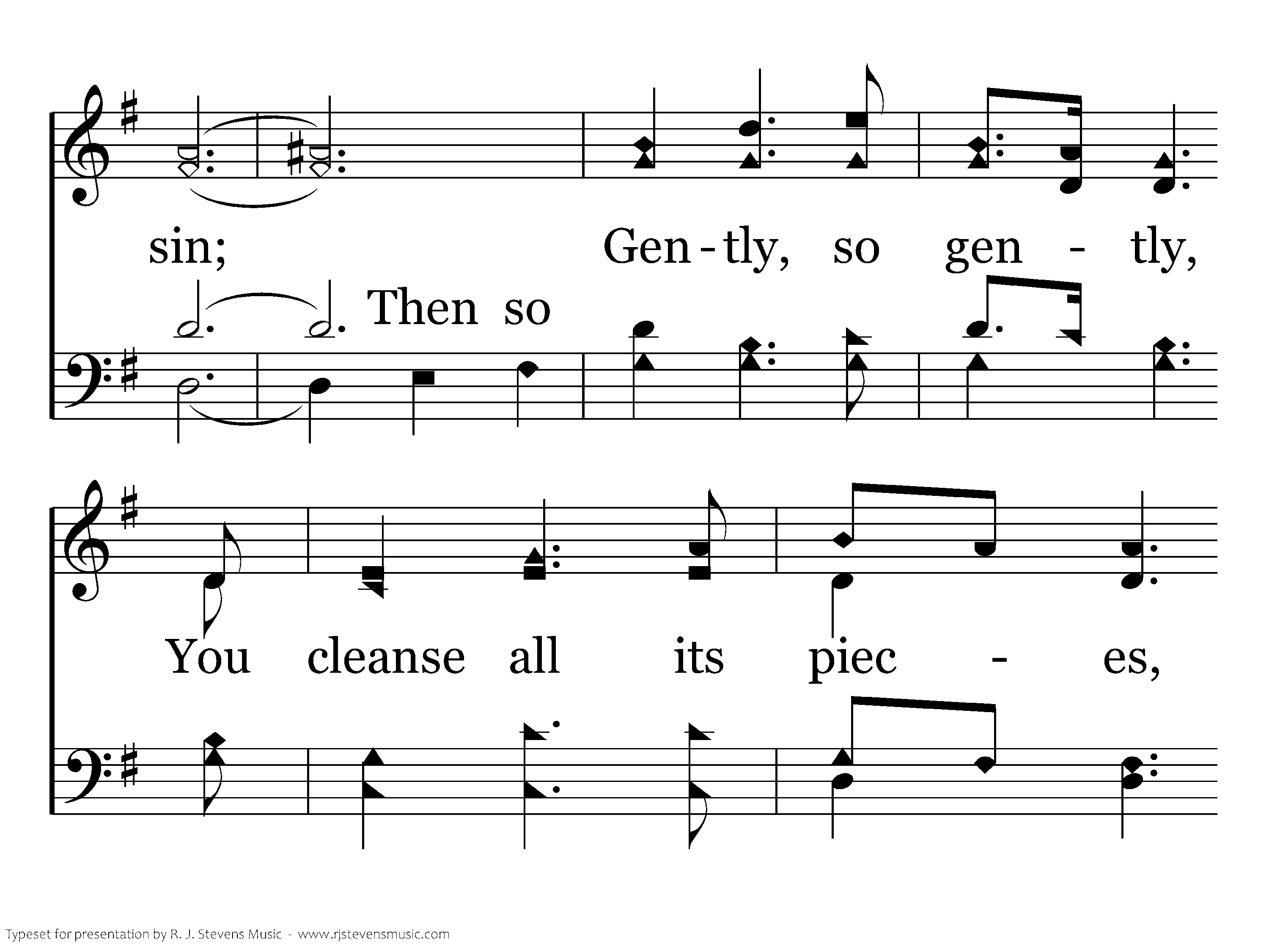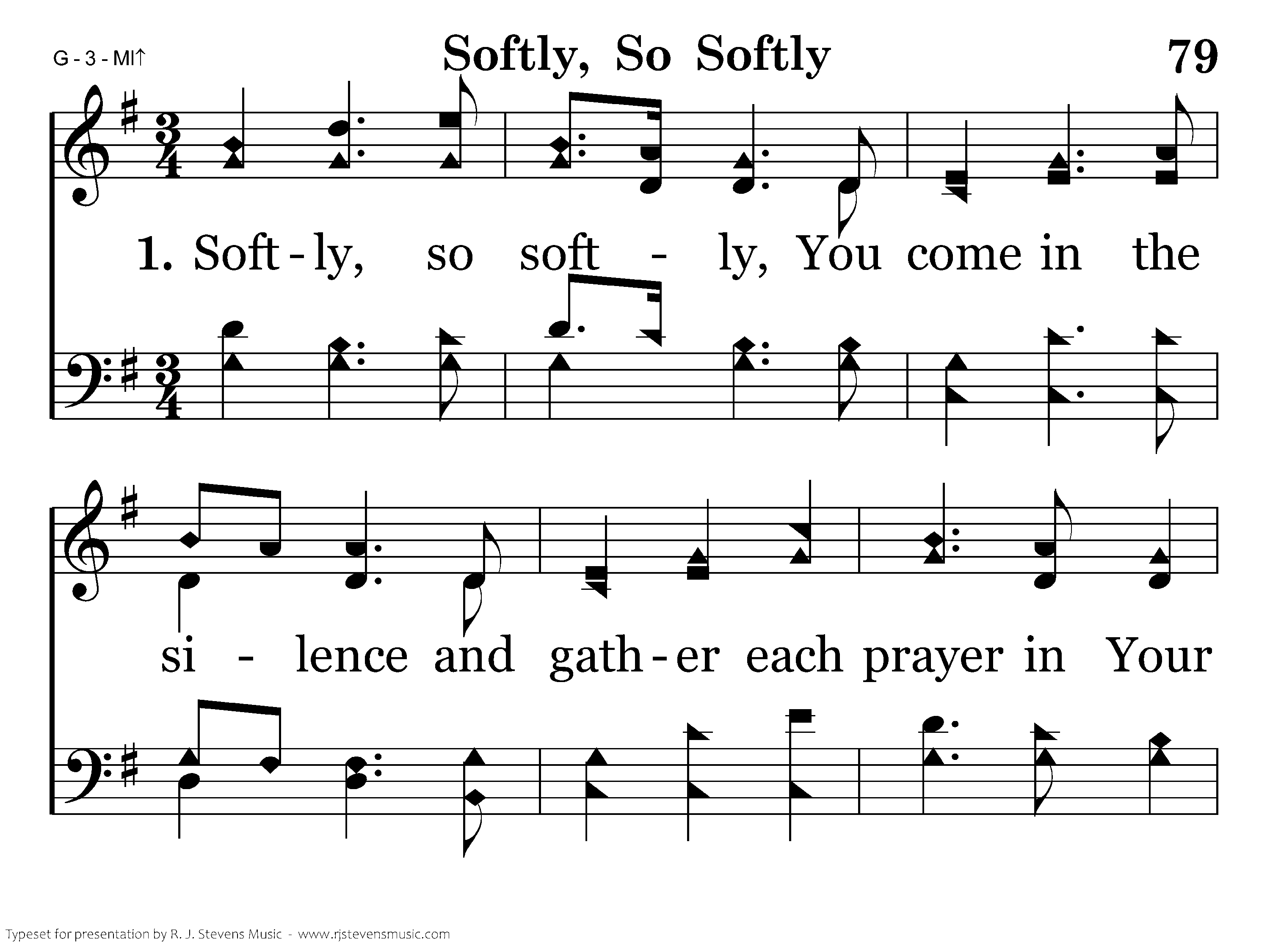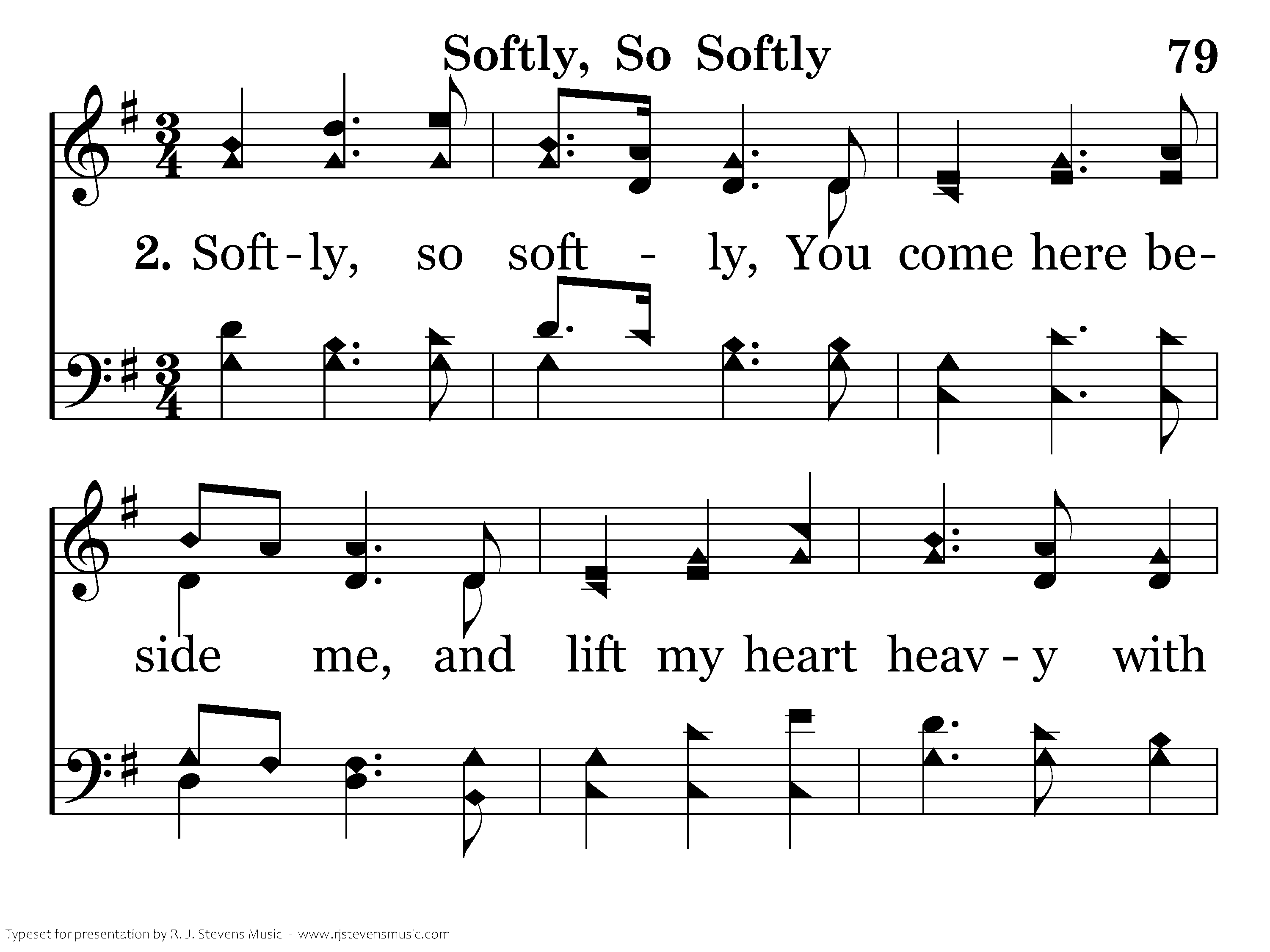 Softly, so softly, You come here beside me, and lift my heart heavy with sin; Then so Gently, so gently, You cleanse all its pieces, until I am pure and whole again.
