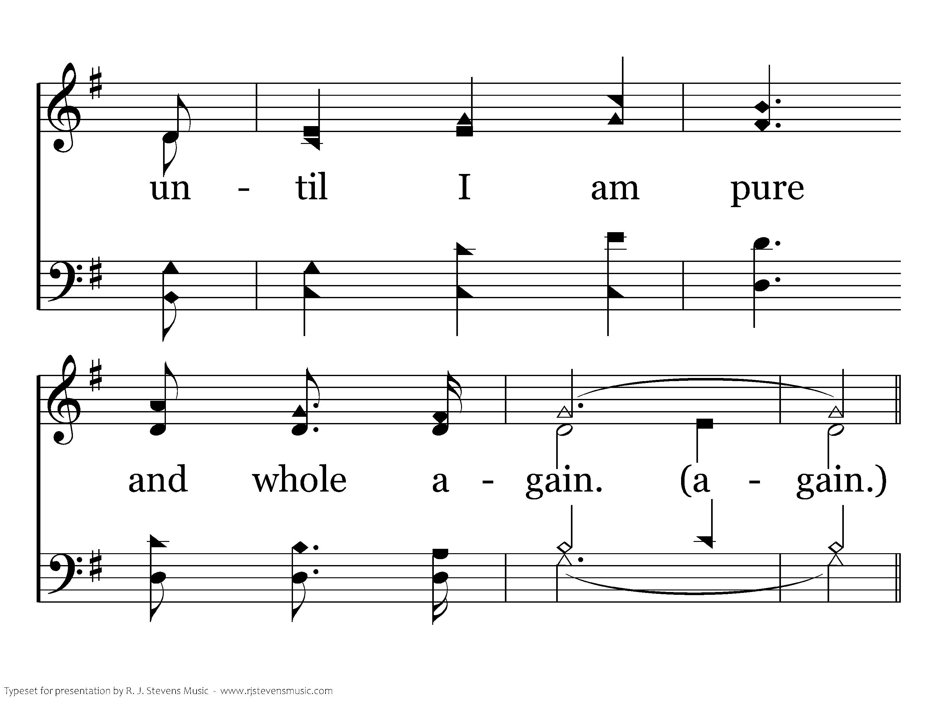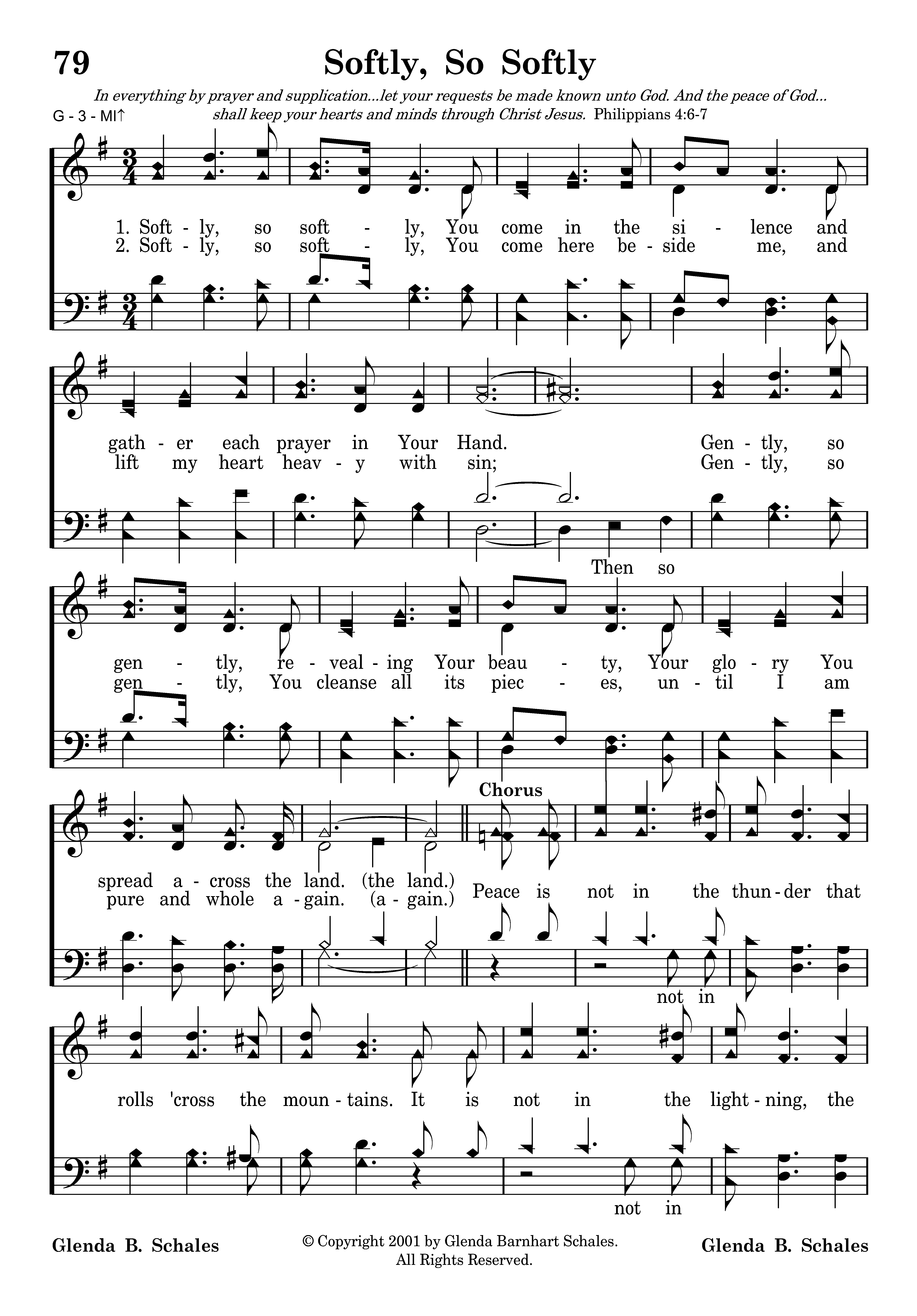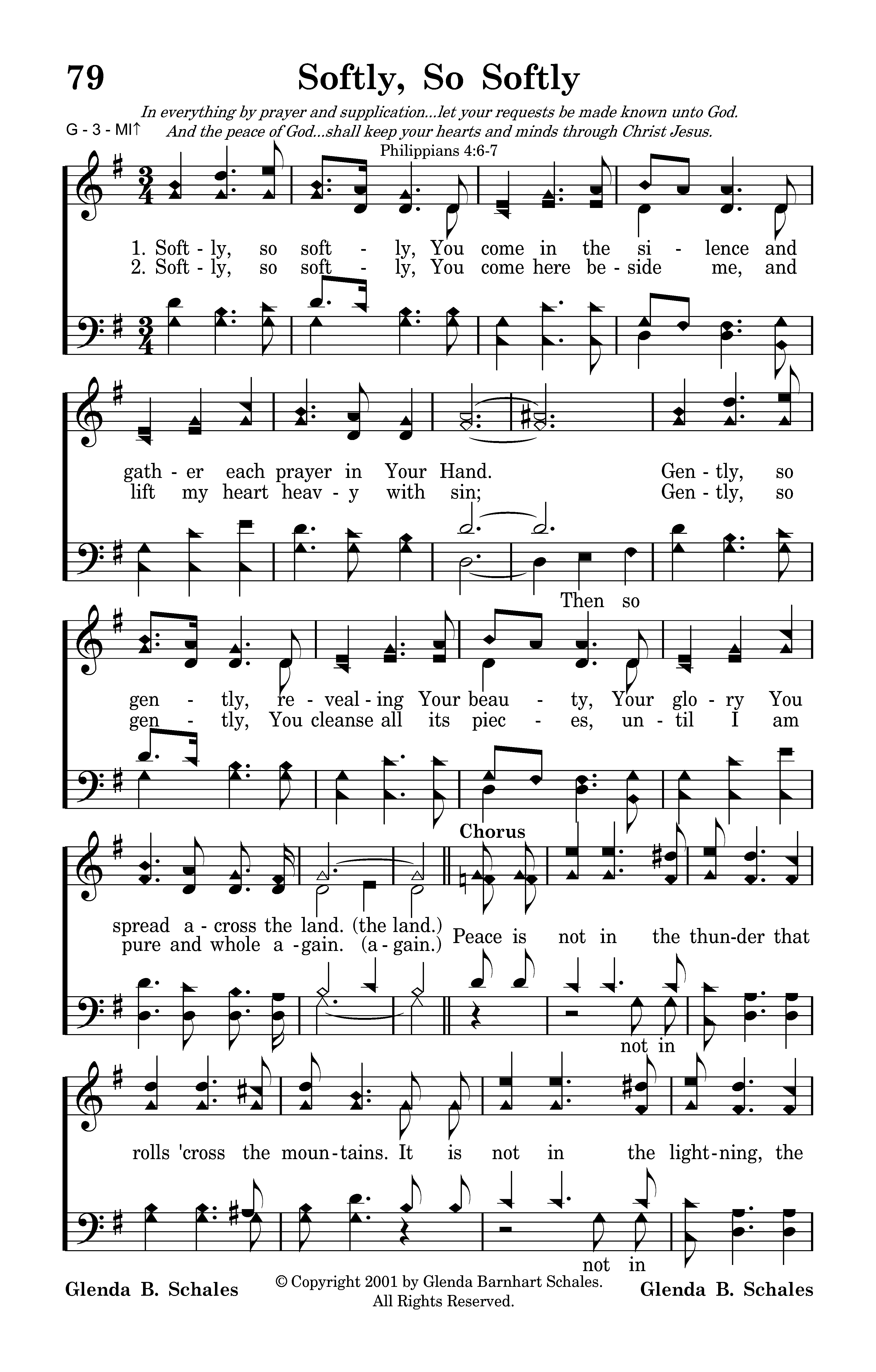 Softly, so softly, You come here beside me, and lift my heart heavy with sin; Then so Gently, so gently, You cleanse all its pieces, until I am pure and whole again.