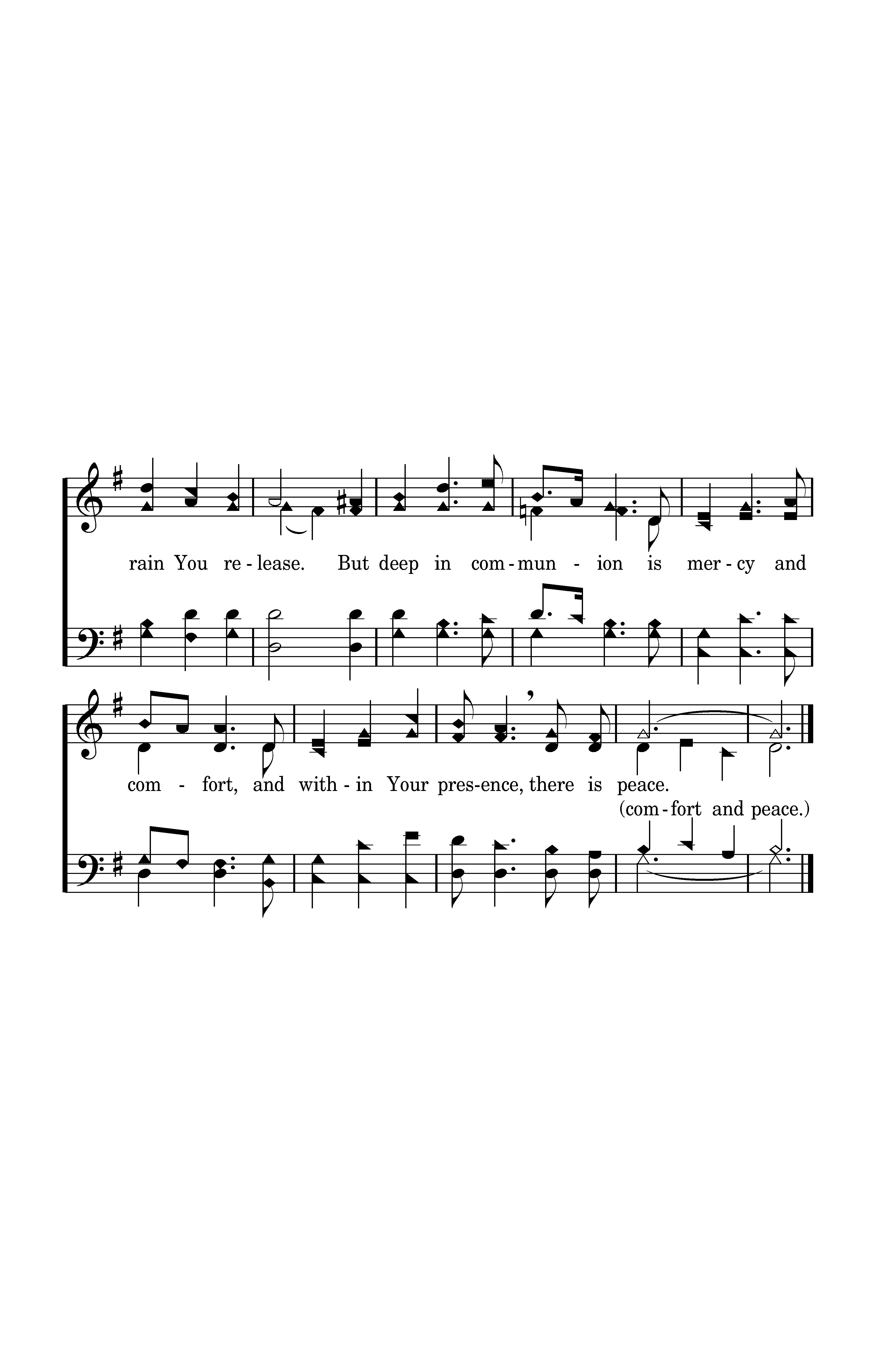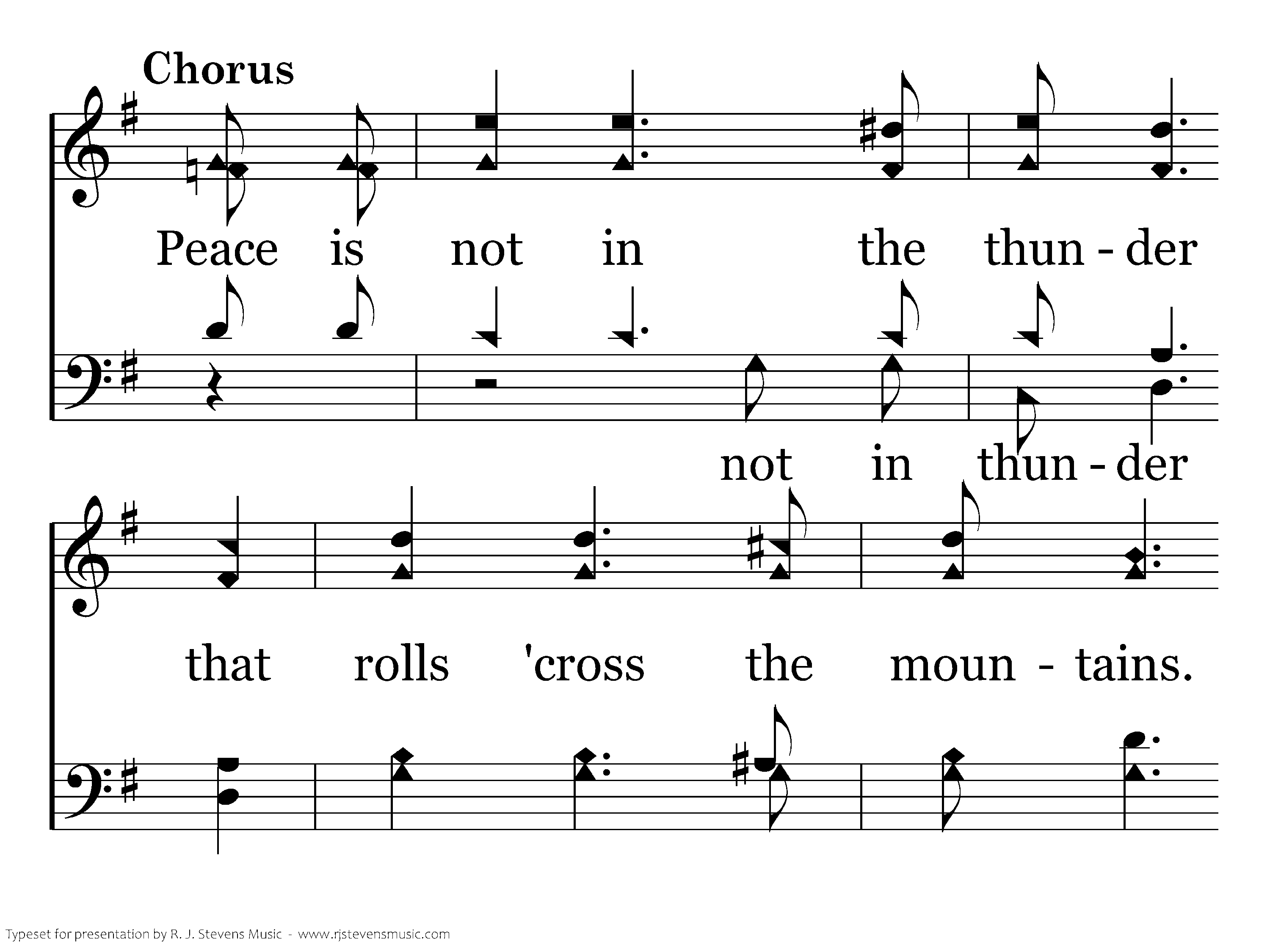 Peace is not in the thunder that rolls 'cross the mountains. It is not in the lightning, the rain You release. But deep in communion is mercy and comfort, and within Your presence, there is peace.
