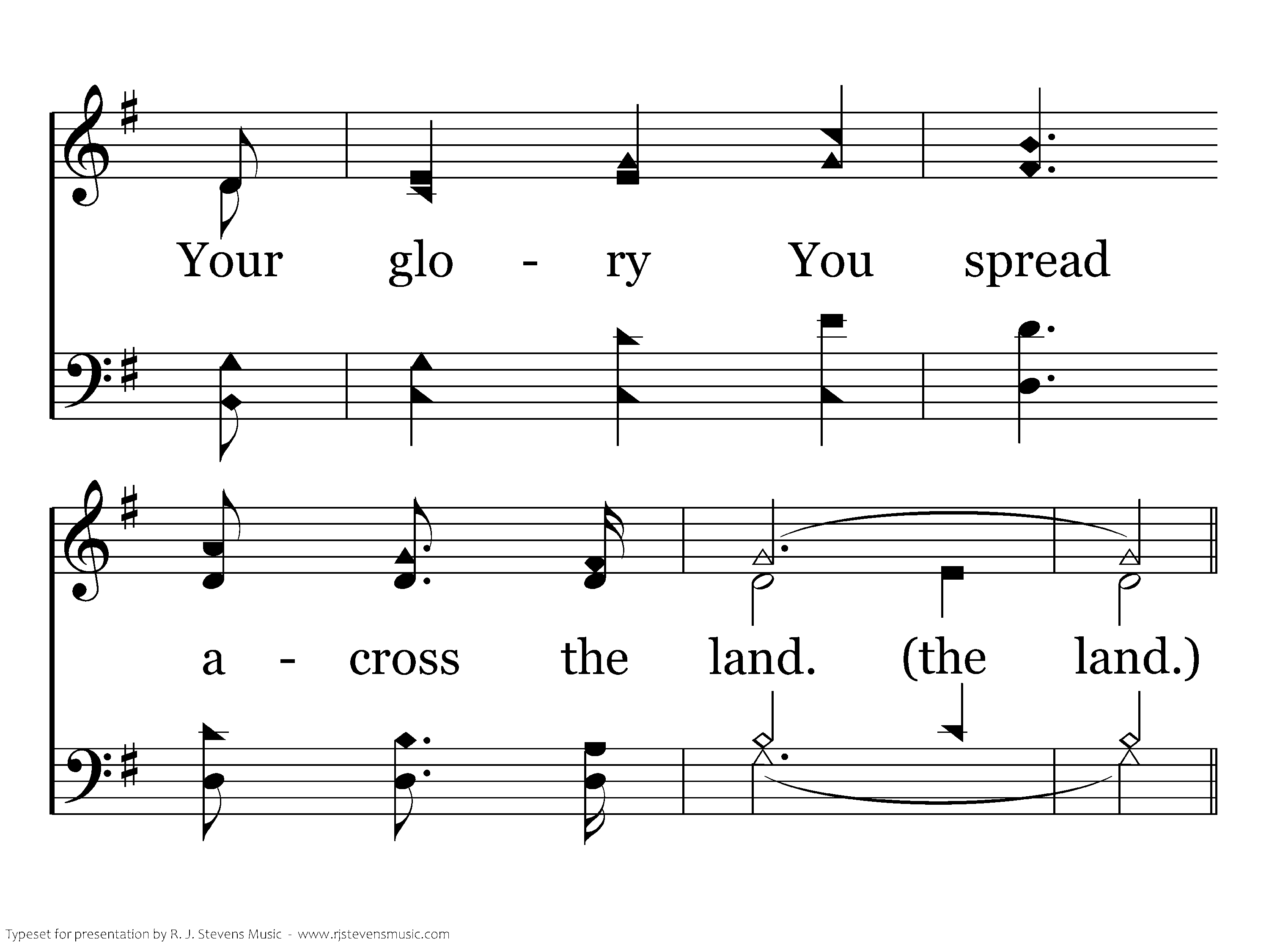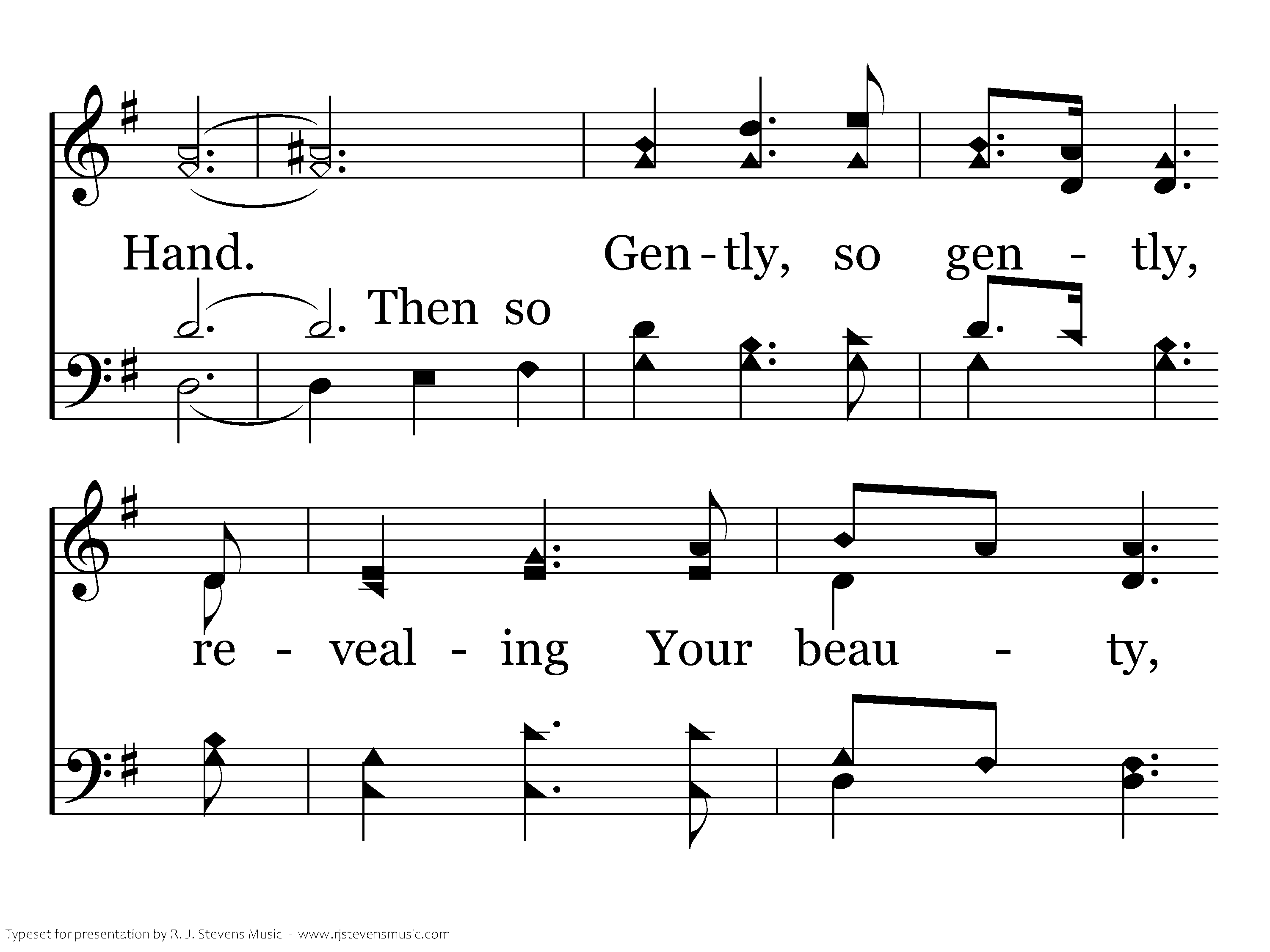 Softly, so softly, You come in the silence and gather each prayer in Your hand. Then so Gently, so gently, revealing Your beauty, Your glory You spread across the land.