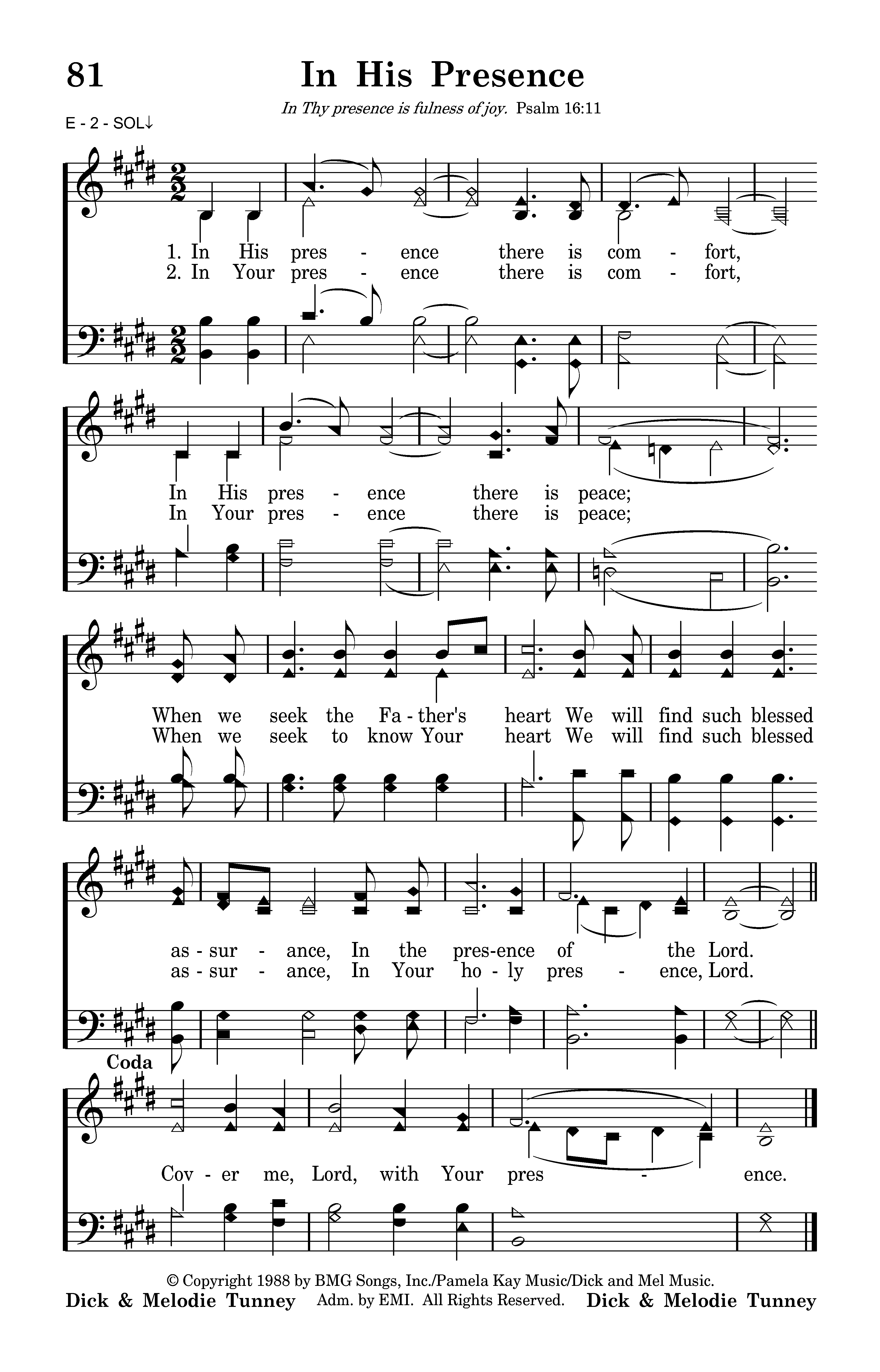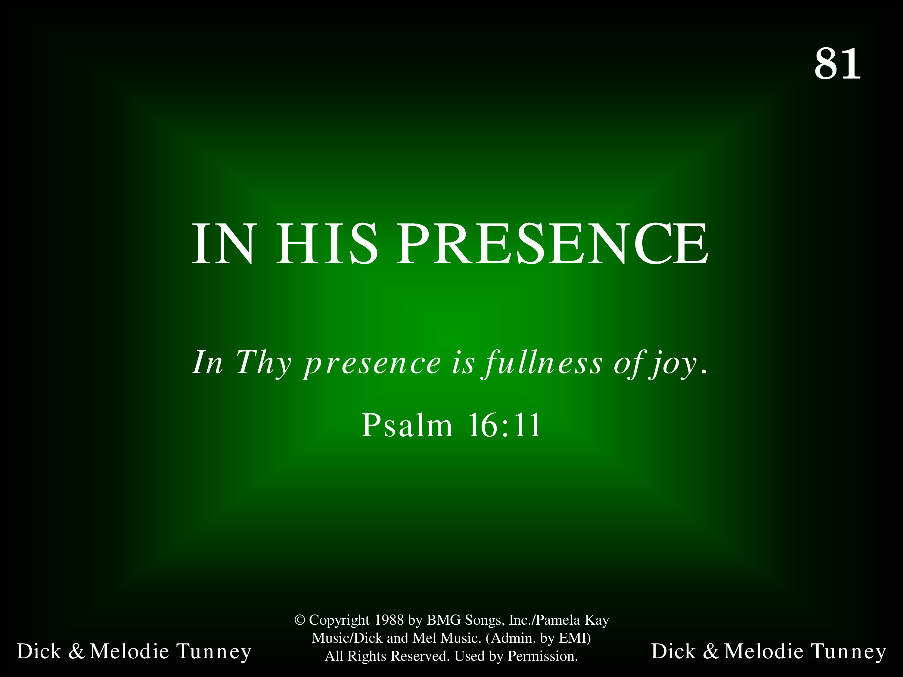 - Copyright © 1988 by Dick And Mel Music; Universal Music - Brentwood Benson Publishing; Pamela Kay Music. (Admin. by Capitol CMG Music Publishing.) All Rights Reserved. Used by Permission.