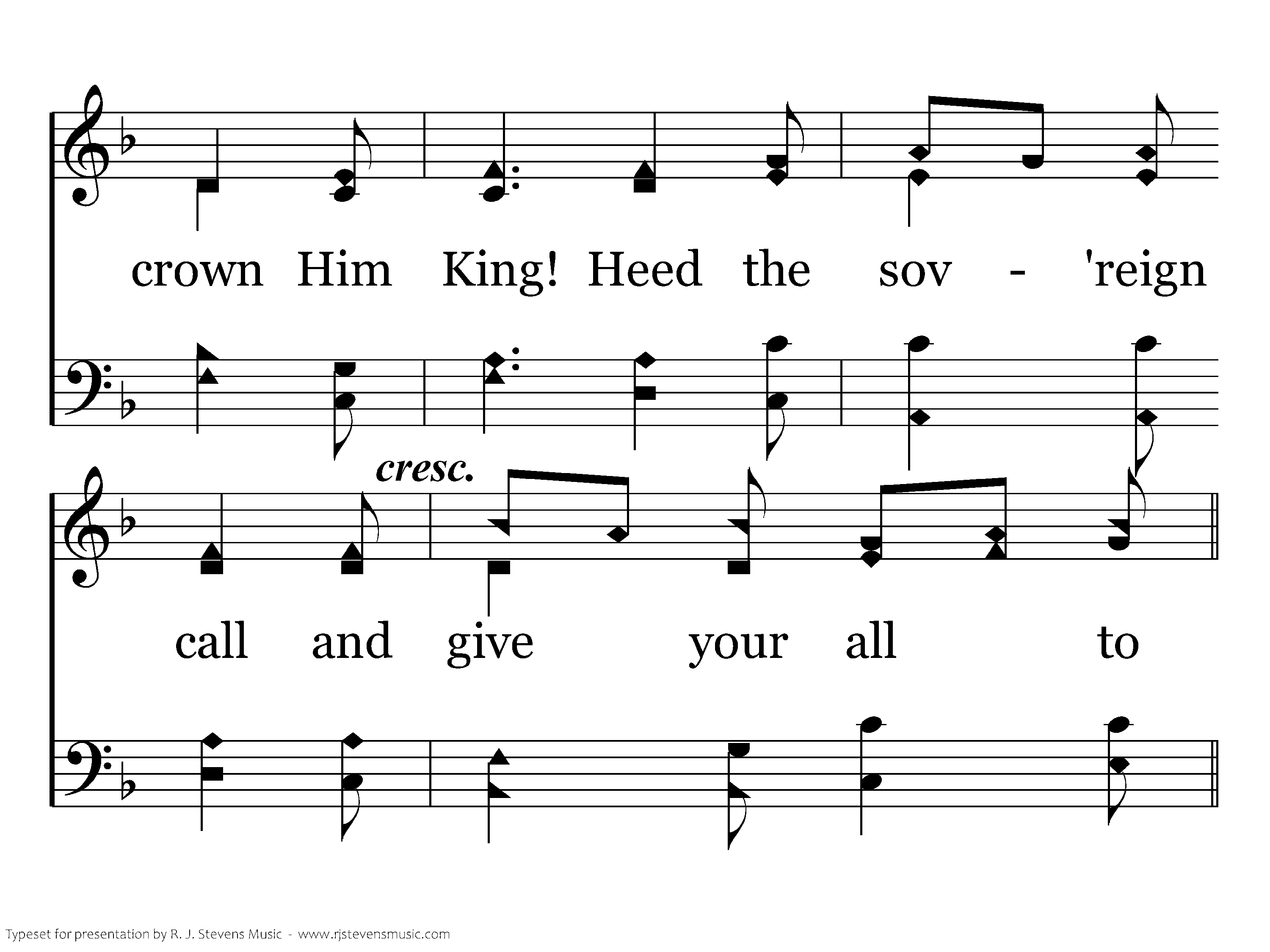 Kneel! kneel! bow down! Bring a humble heart before Him; Crown! crown Him King! Heed the sov'reign call and give your all to
