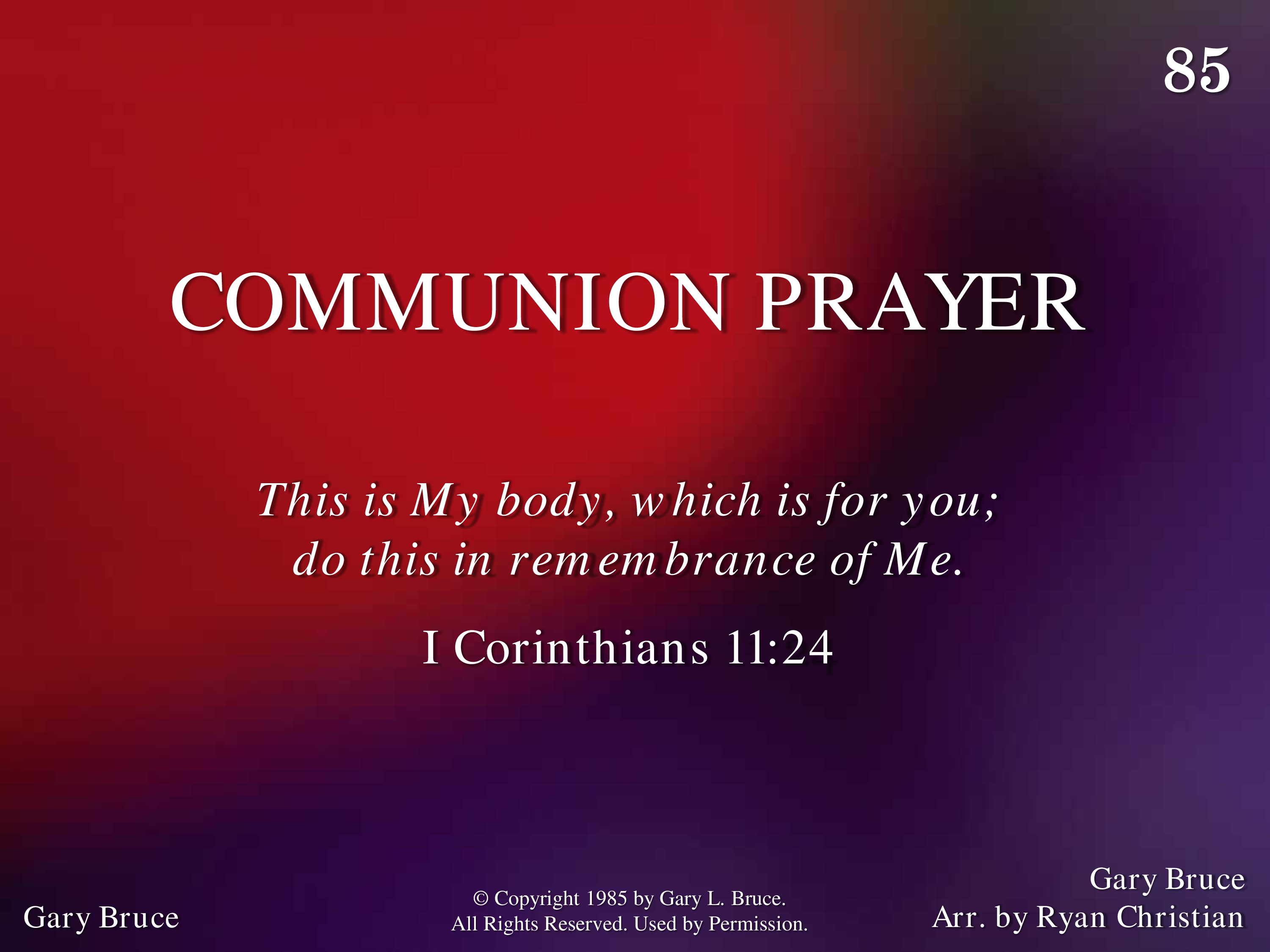 - Copyright © 1985 by Gary Bruce. (Admin. by Gary Bruce.) All Rights Reserved. Used by Permission.
