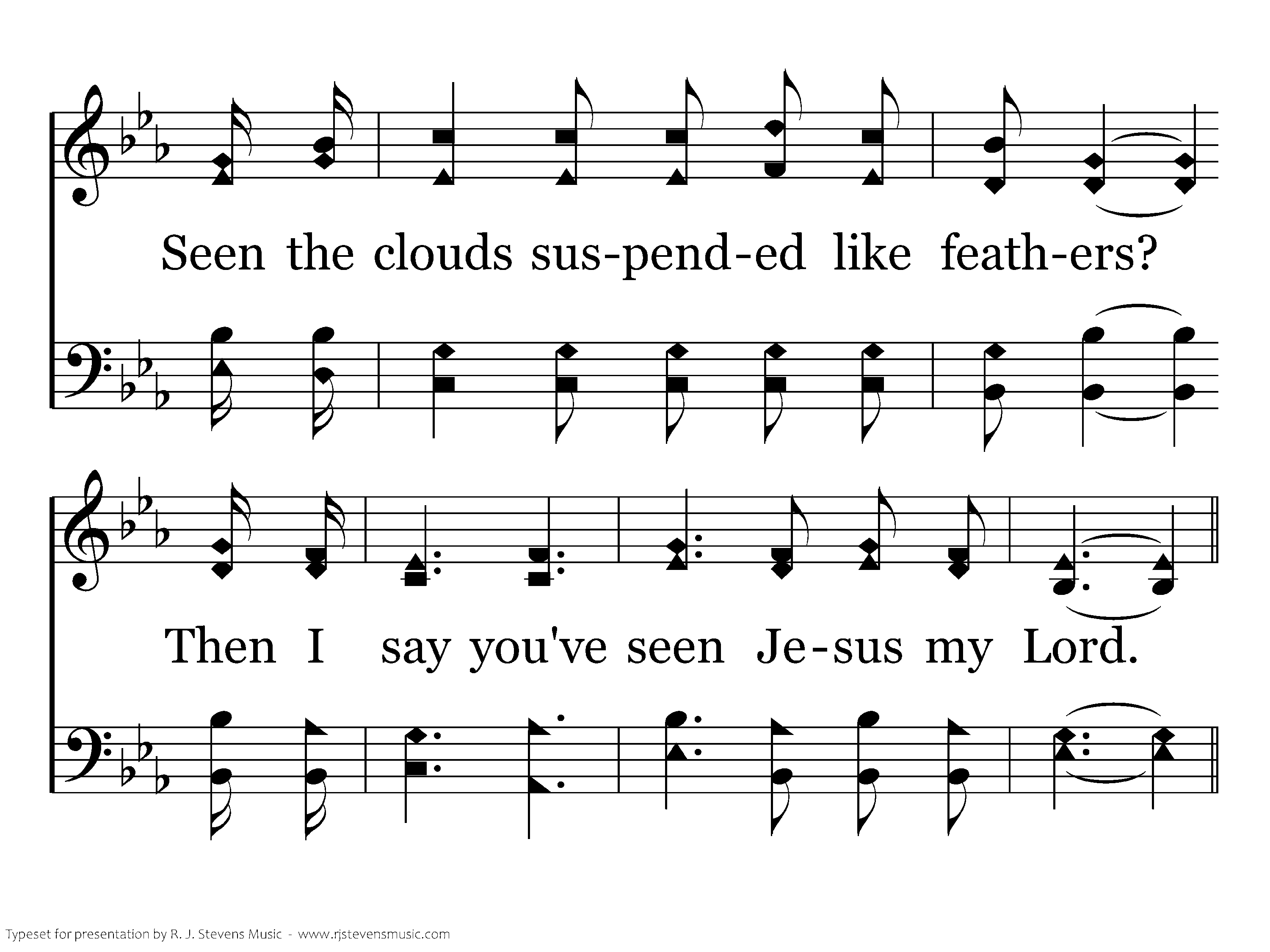 Have you ever stood at the sunset with the sky mellowing red; Seen the cloud suspended like feathers? Then I say you've seen Jesus my Lord.