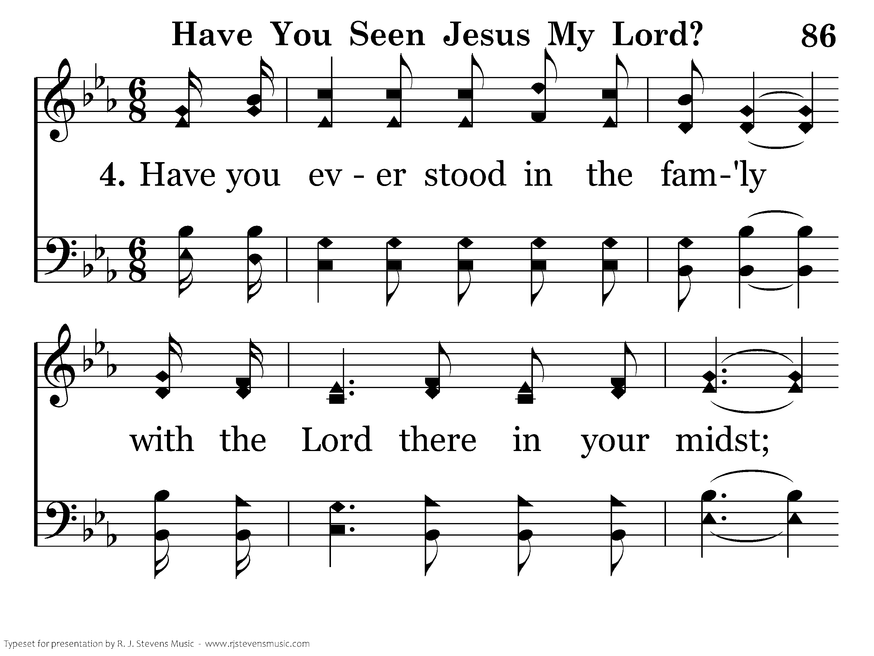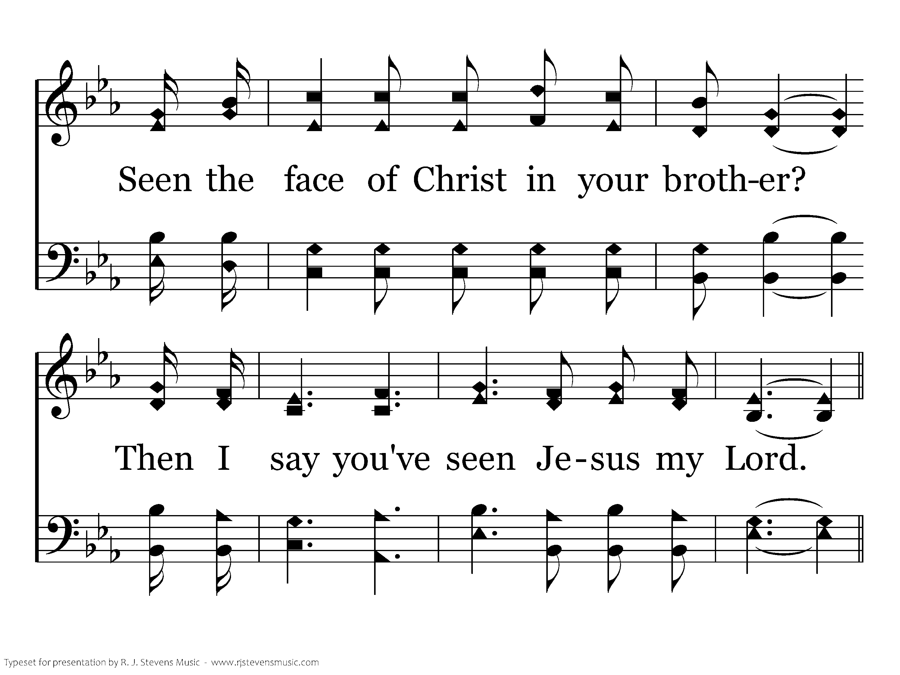 Have you ever stood in the fam'ly with the Lord there in your midst; Seen the face of Christ in your brother? Then I say you've seen Jesus my Lord.