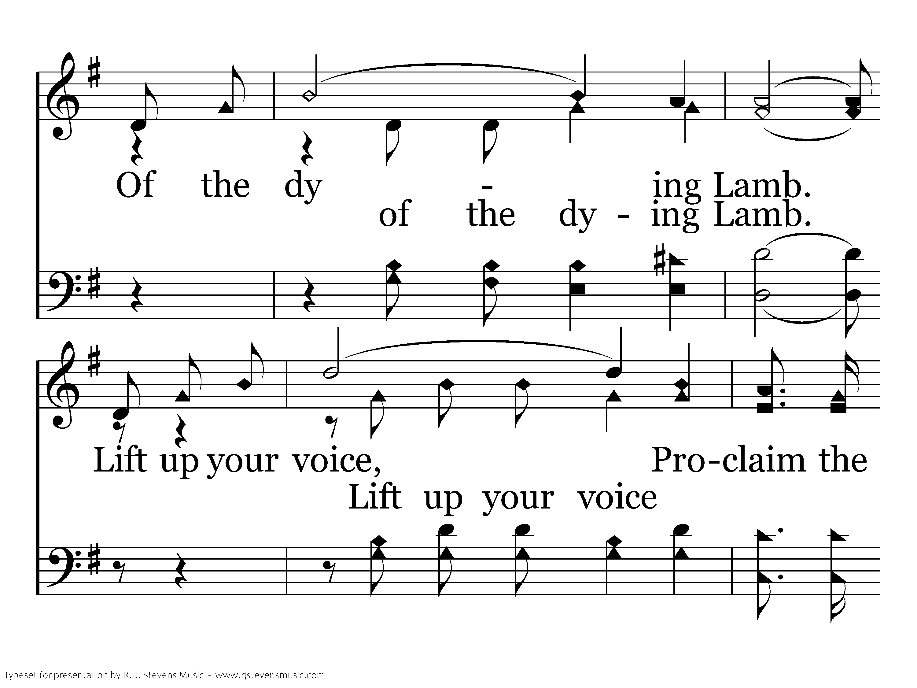 Lift up your voice, sing out this blessed story Of the dying Lamb. Lift up your voice, Proclaim the Father's glory. He's the great I AM!