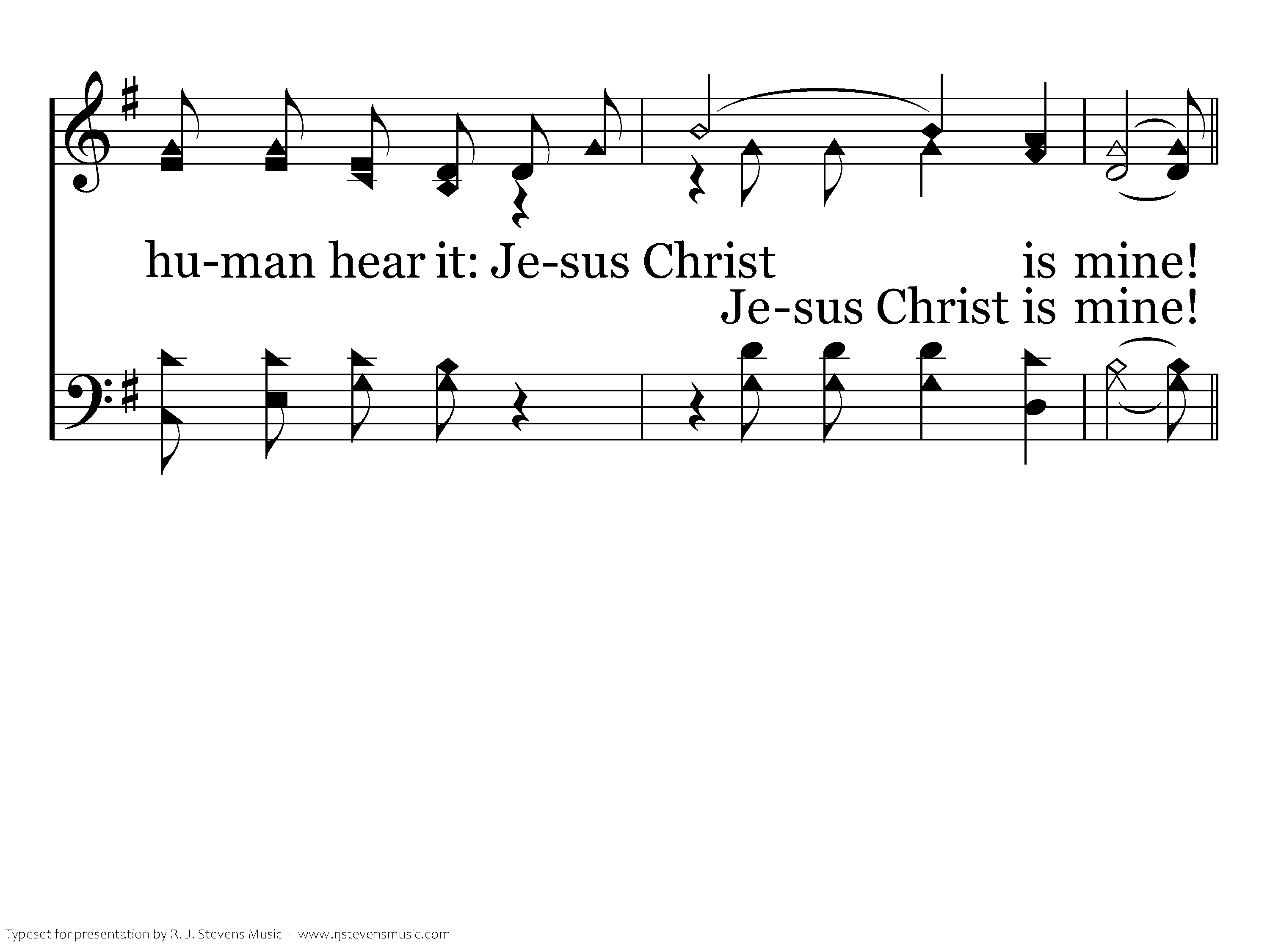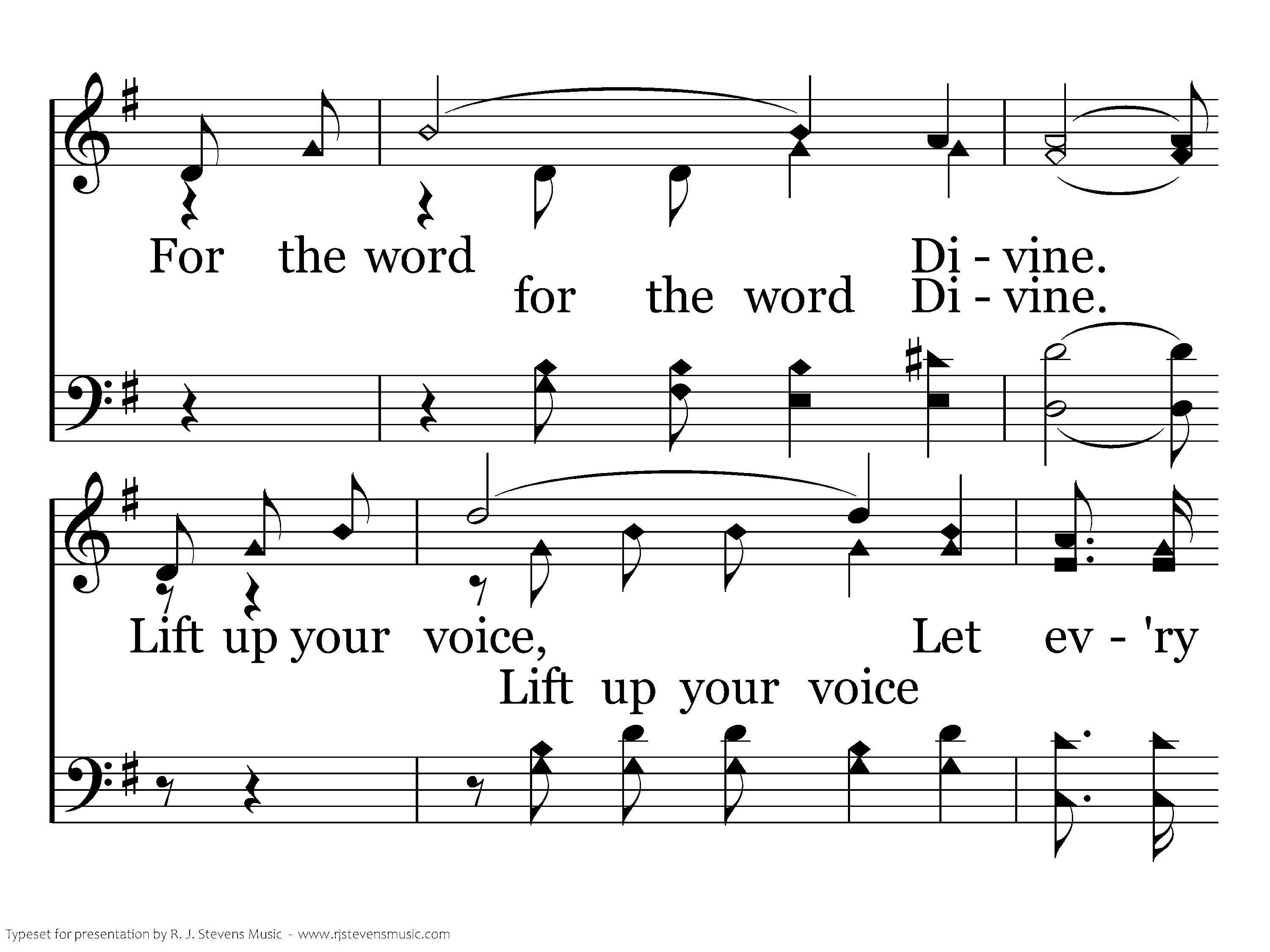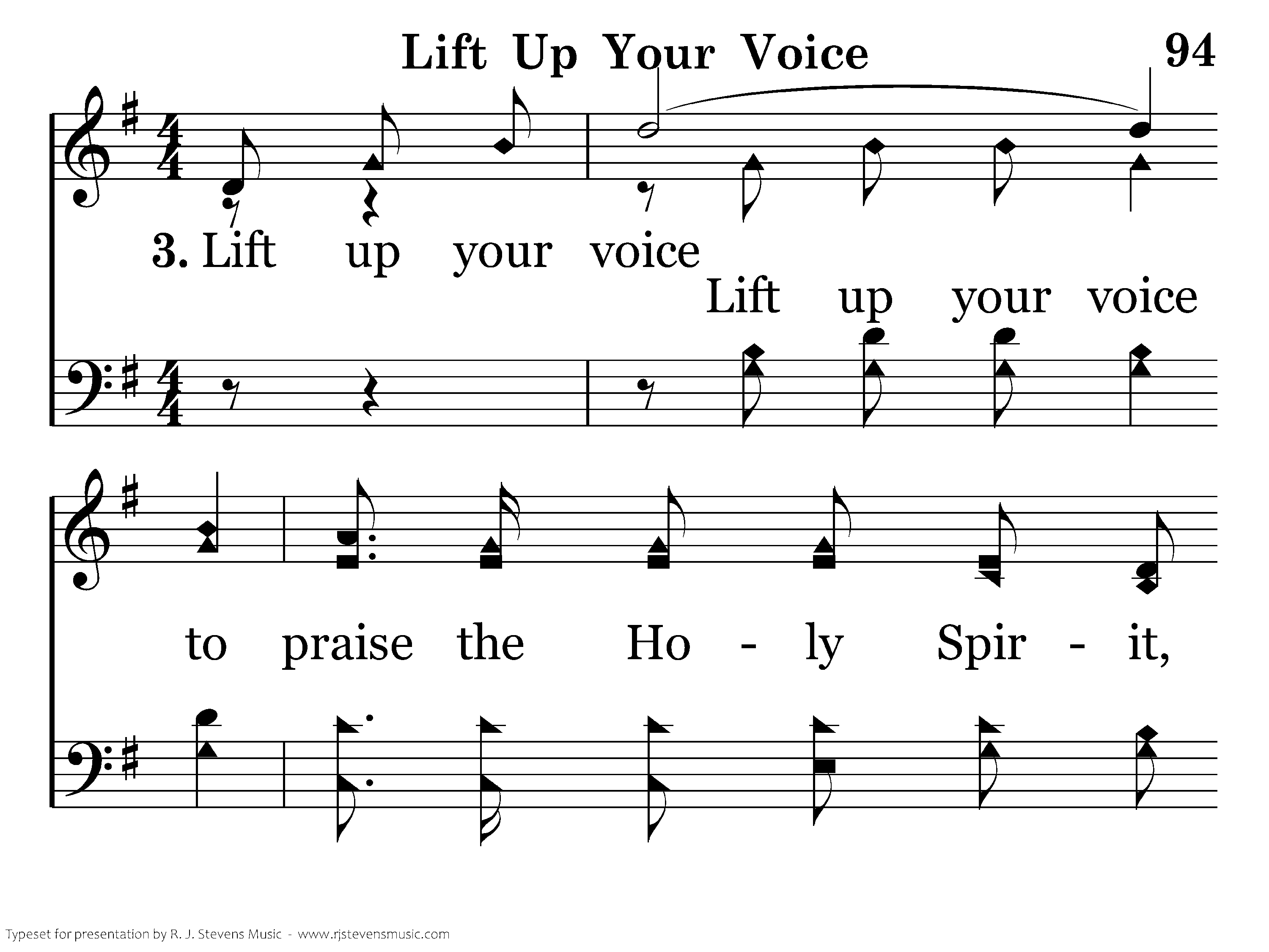 Lift up your voice to praise the Holy Spirit, For the word Divine. Lift up your voice, Let ev'ry human hear it: Jesus Christ is mine!