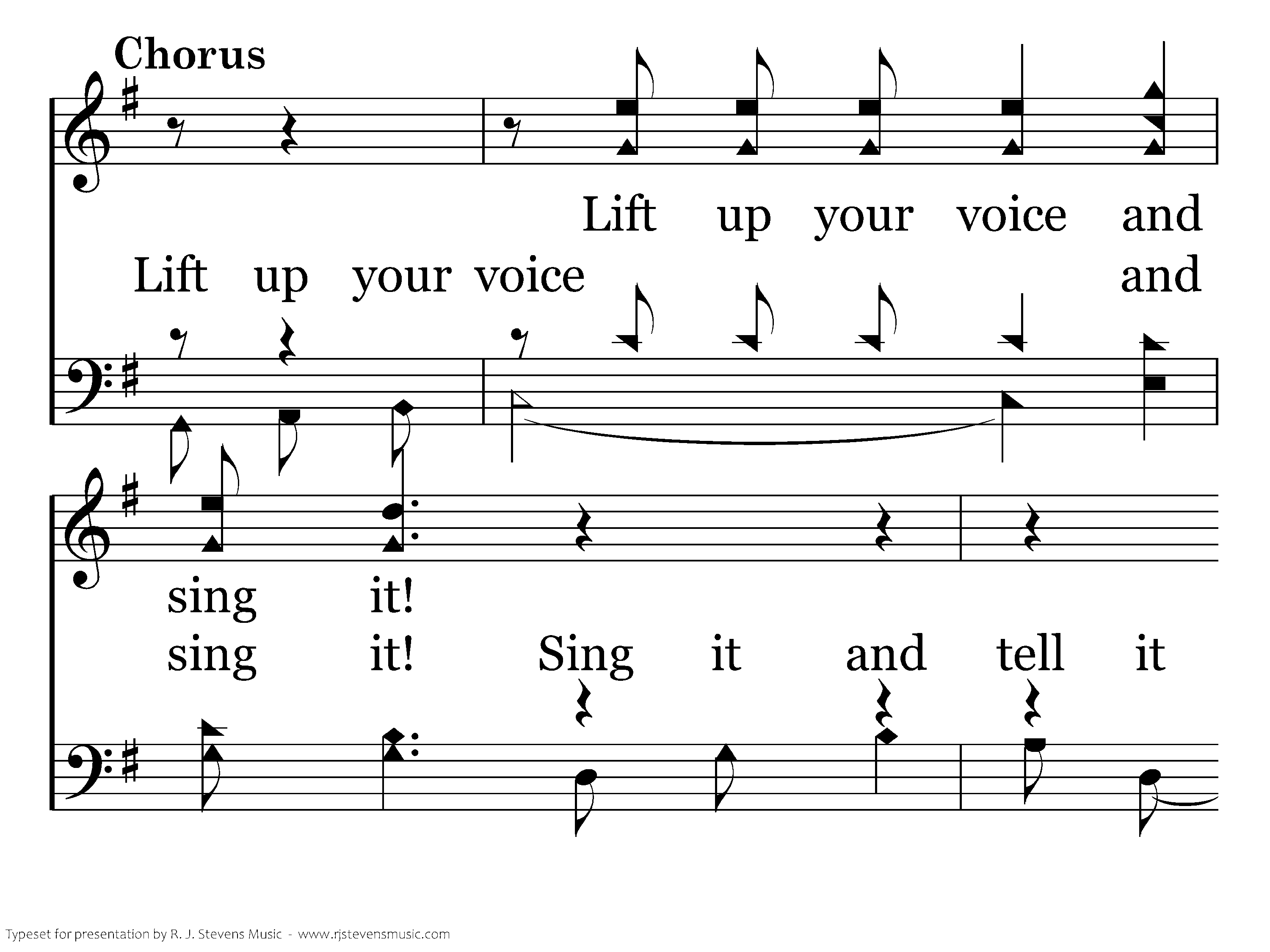 Lift up your voice and sing it! Sing it and tell it, yes, tell it again. Make every mountain ring it! Sing Hallelujah, Amen.