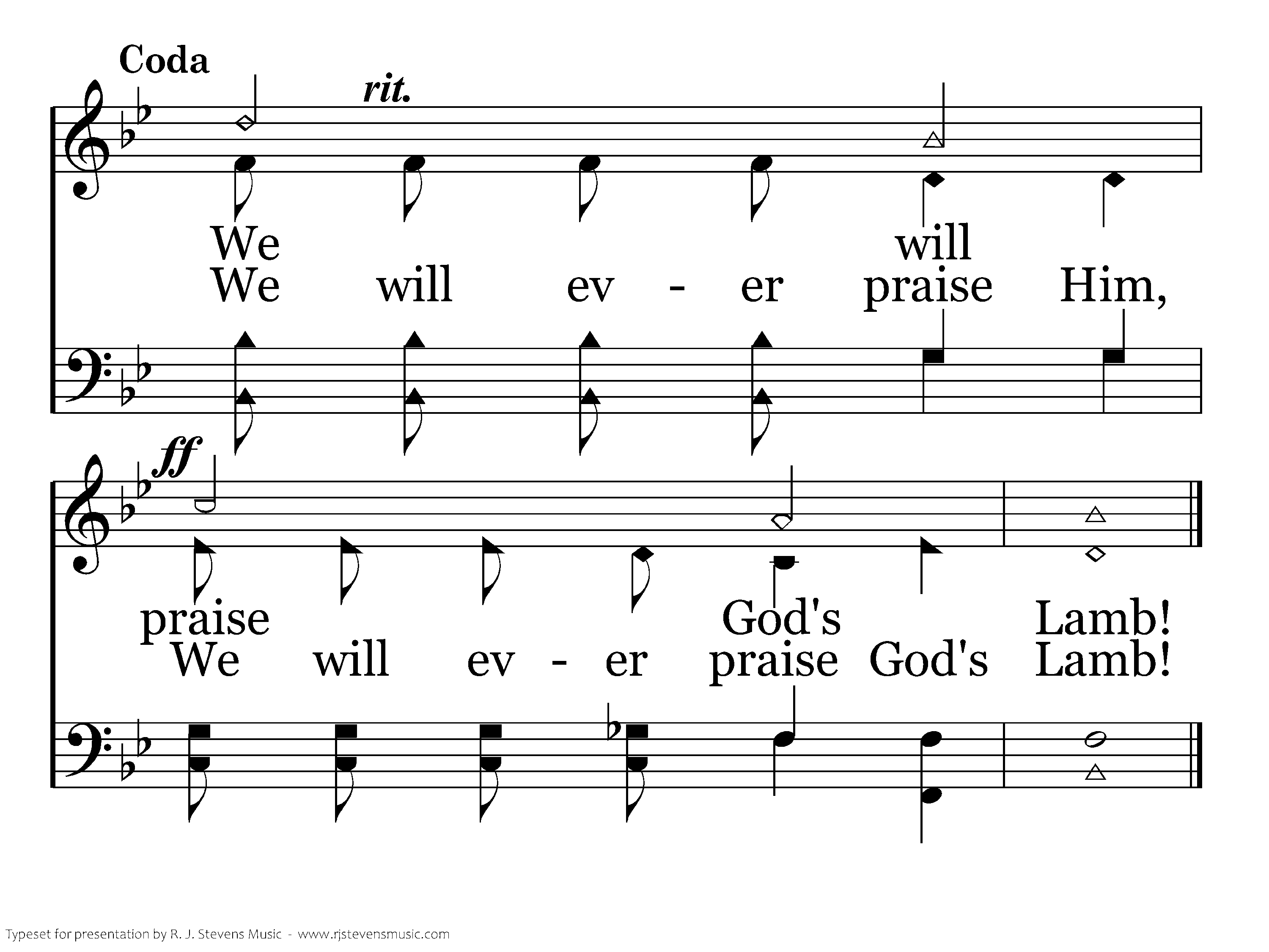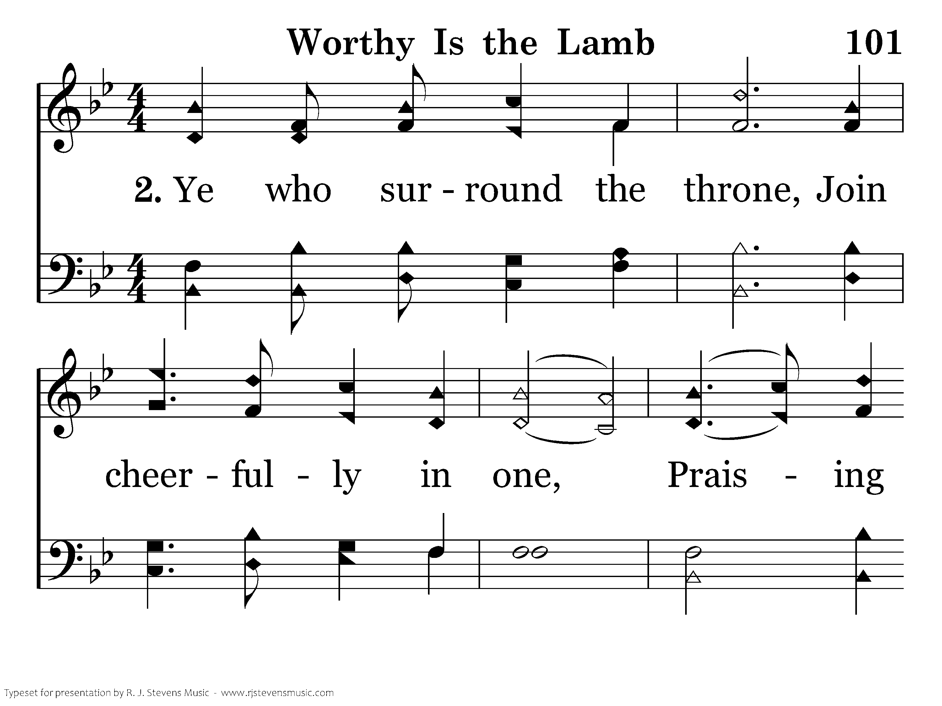 Soon must we change our place; Yet will we never cease Praising His name; To Him our songs we'll bring, Hail Him our gracious King, And thro' all ages sing, "Worthy is the Lamb."