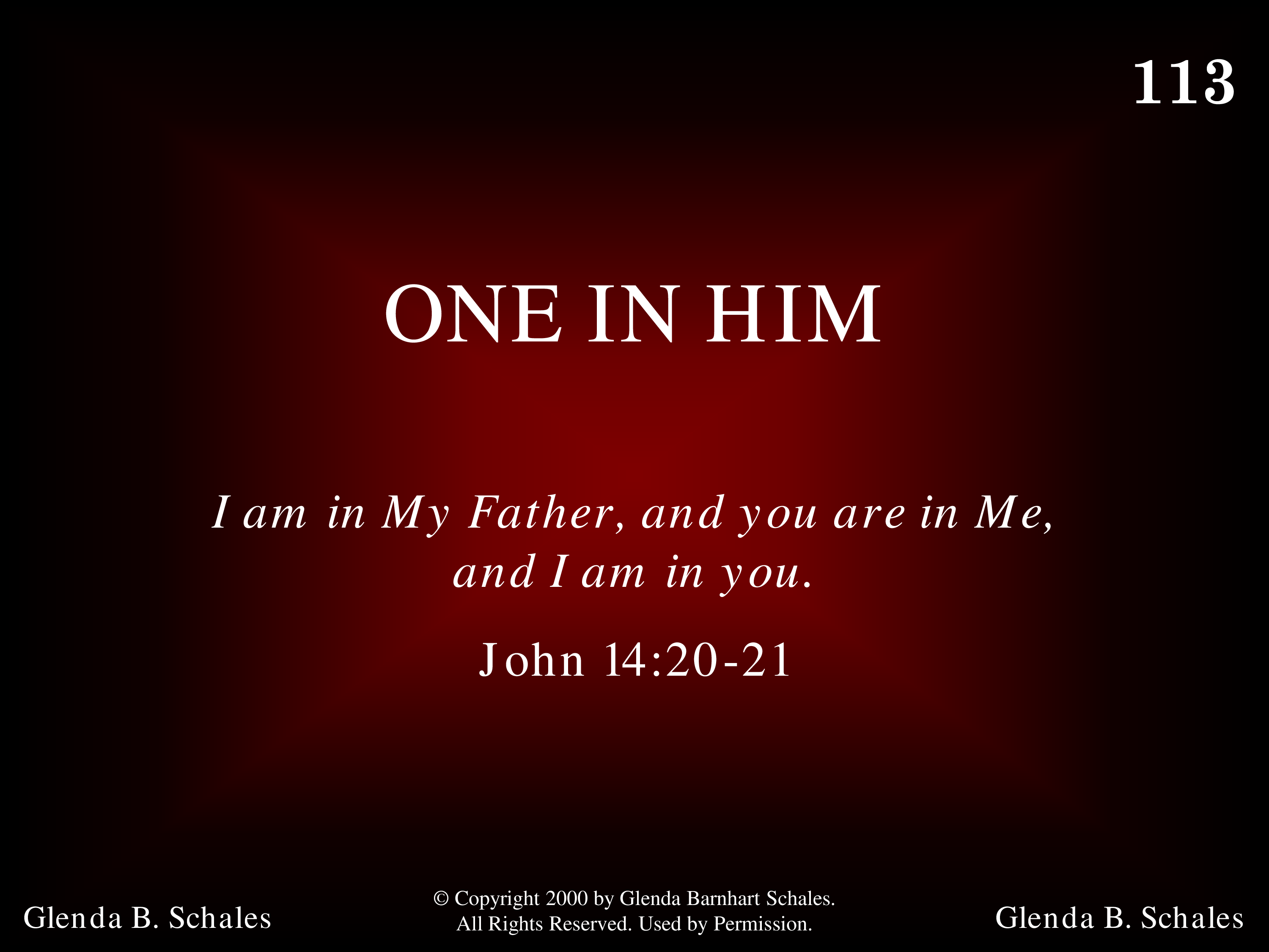 - Copyright © 2000 by Glenda Barnhart Schales. All Rights Reserved. Used by Permission.