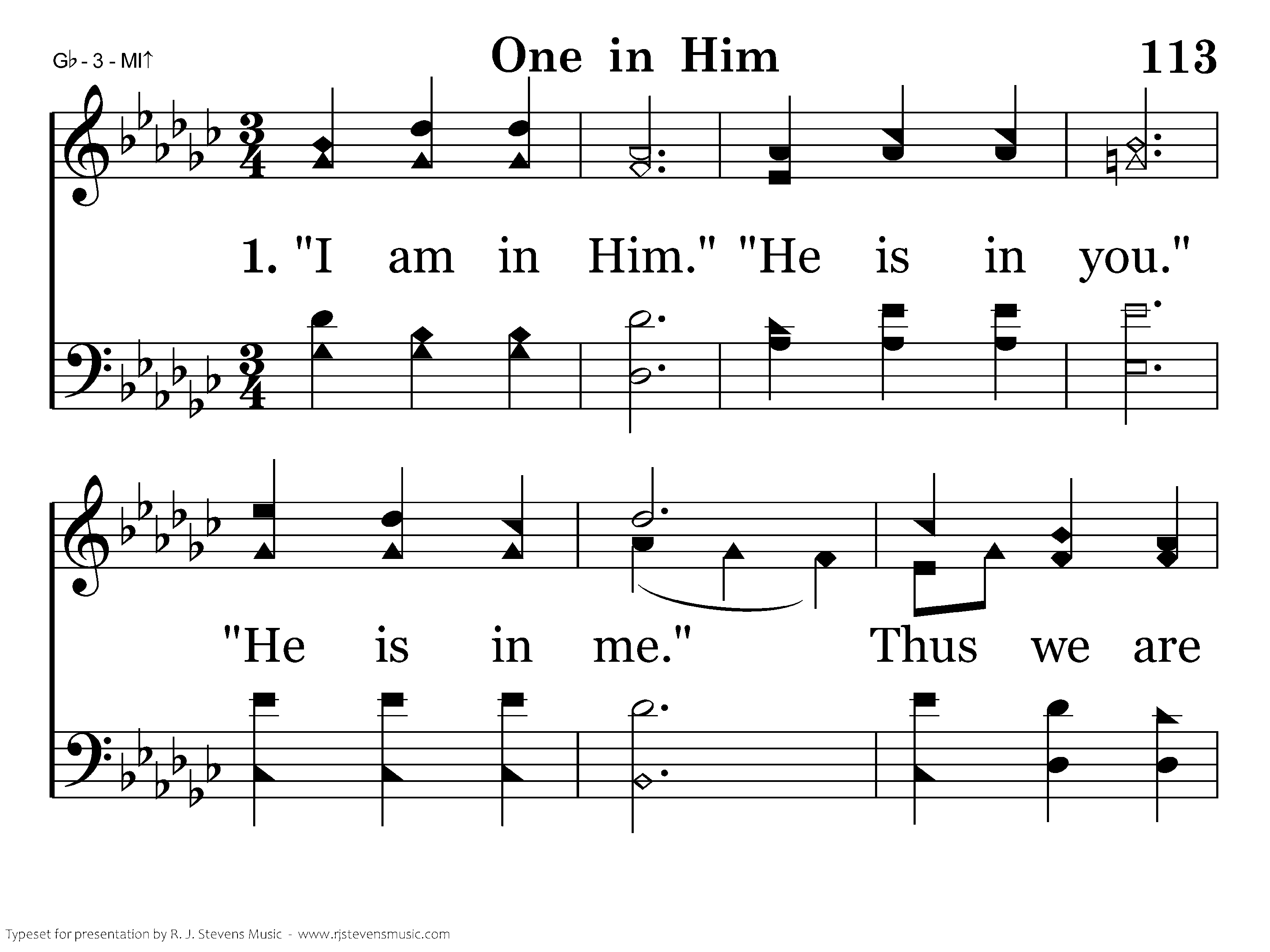 “I am in Him.” "He is in you." "He is in me." Thus we are one. We are one. We are one. We are one in Him. I in you, Joy in Him, You in me, Peace in Him, He in us. Hope in Him, Love united in truth, We are one in Him.