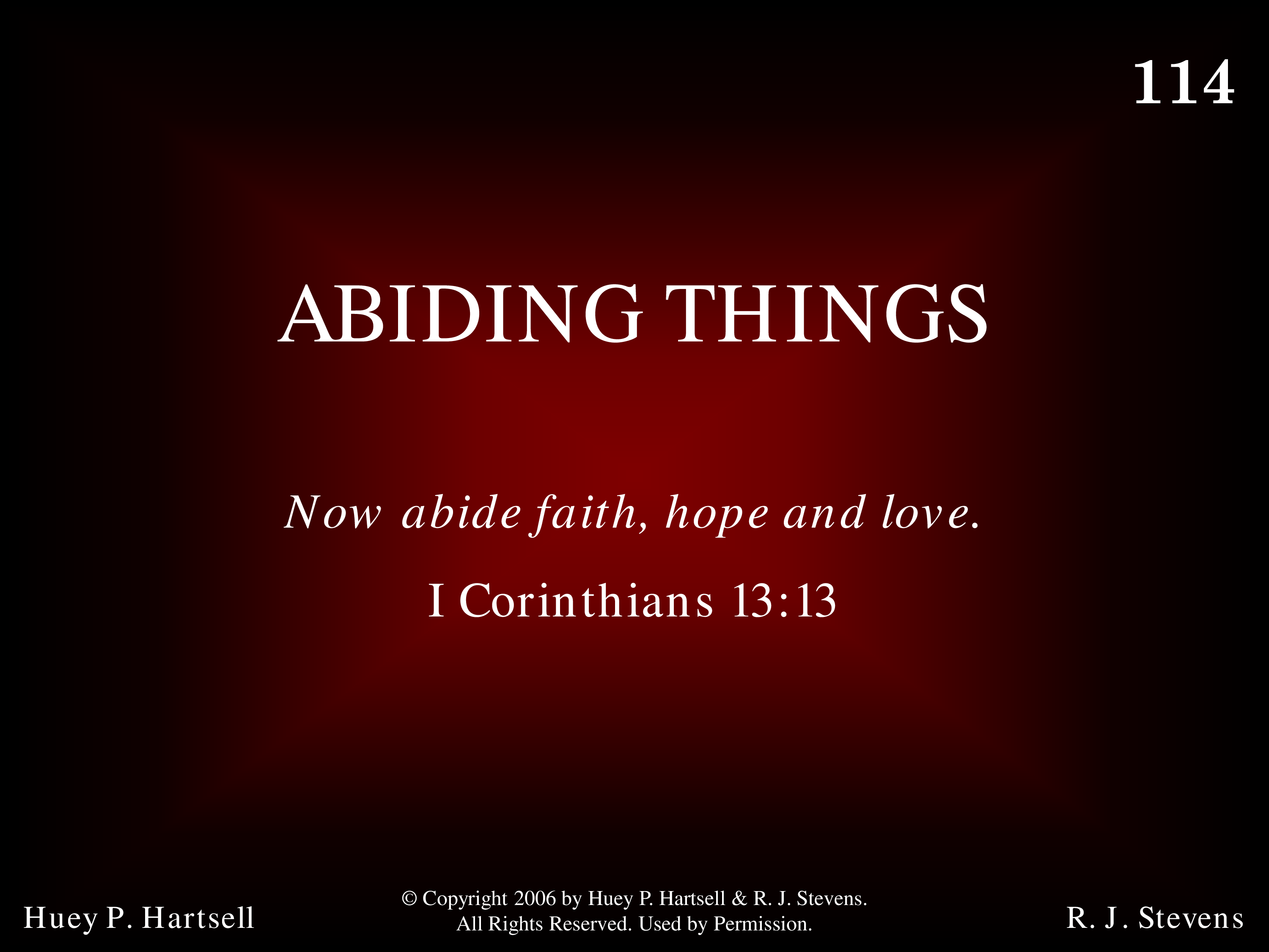 - Copyright © 2006 by Huey P. Hartsell & R. J. Stevens. All Rights Reserved. Used by Permission.