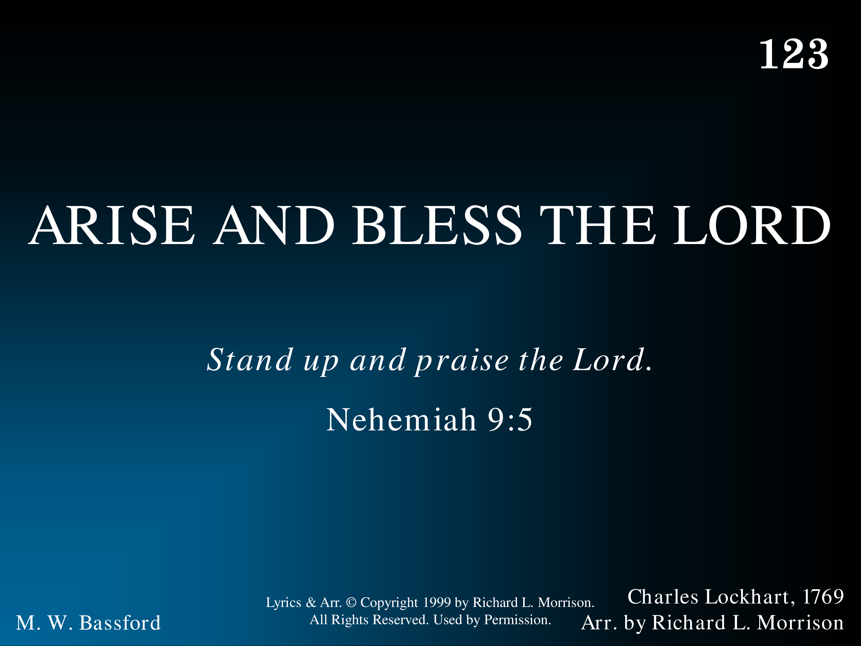 - Lyrics and Arr. © Copyright 1999 by Richard L. Morrison. All Rights Reserved. Used by Permission.