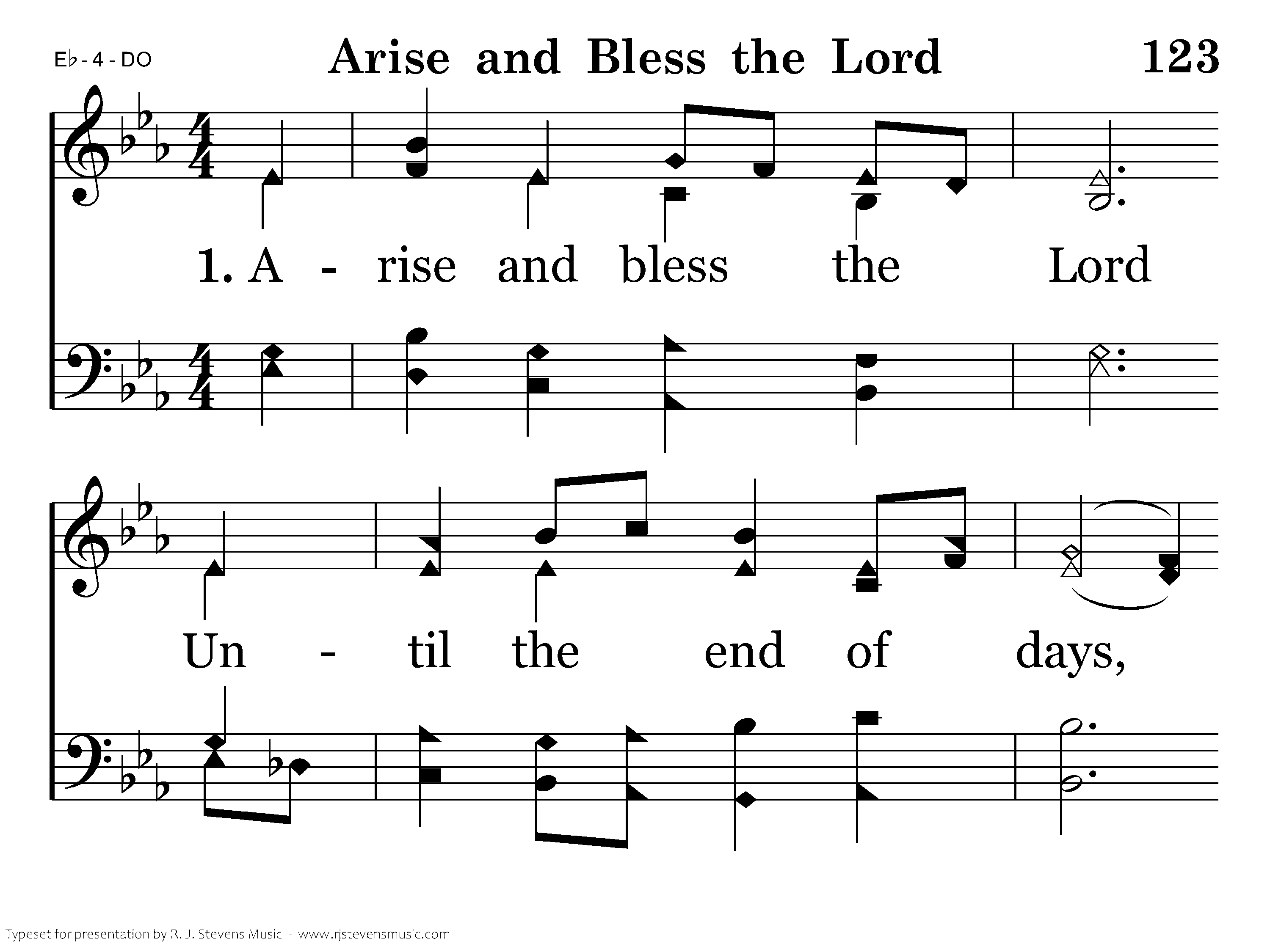 Arise and bless the Lord Until the end of days. O may His glorious name be blessed Beyond the highest praise!