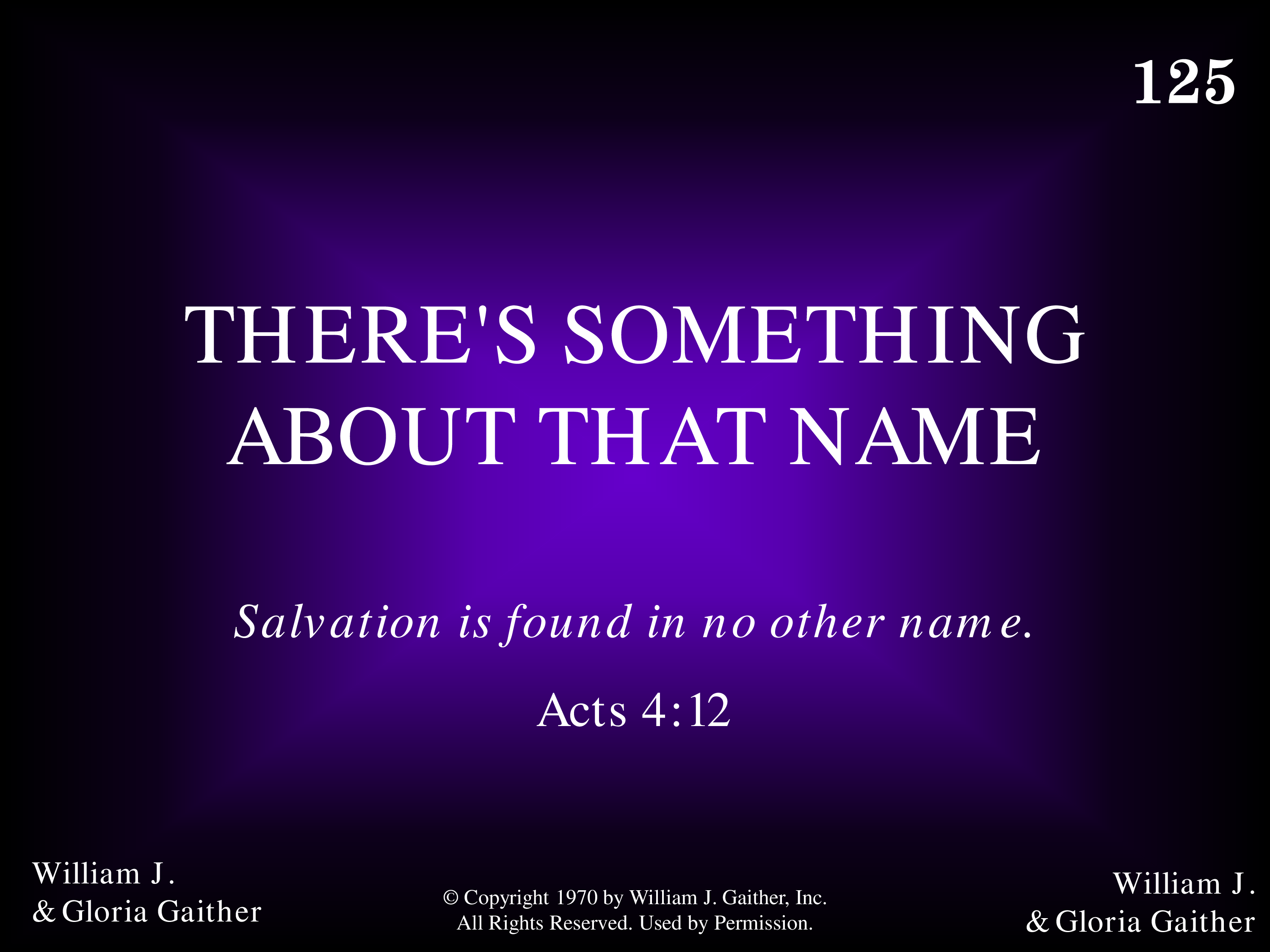 Jesus, Jesus, Jesus, There's something about that name. Master, Savior, Jesus, Like the fragrance after the rain; Jesus, Jesus, Jesus, Let all heaven and earth proclaim; Kings and kingdoms will all pass away, but there's something about that name.