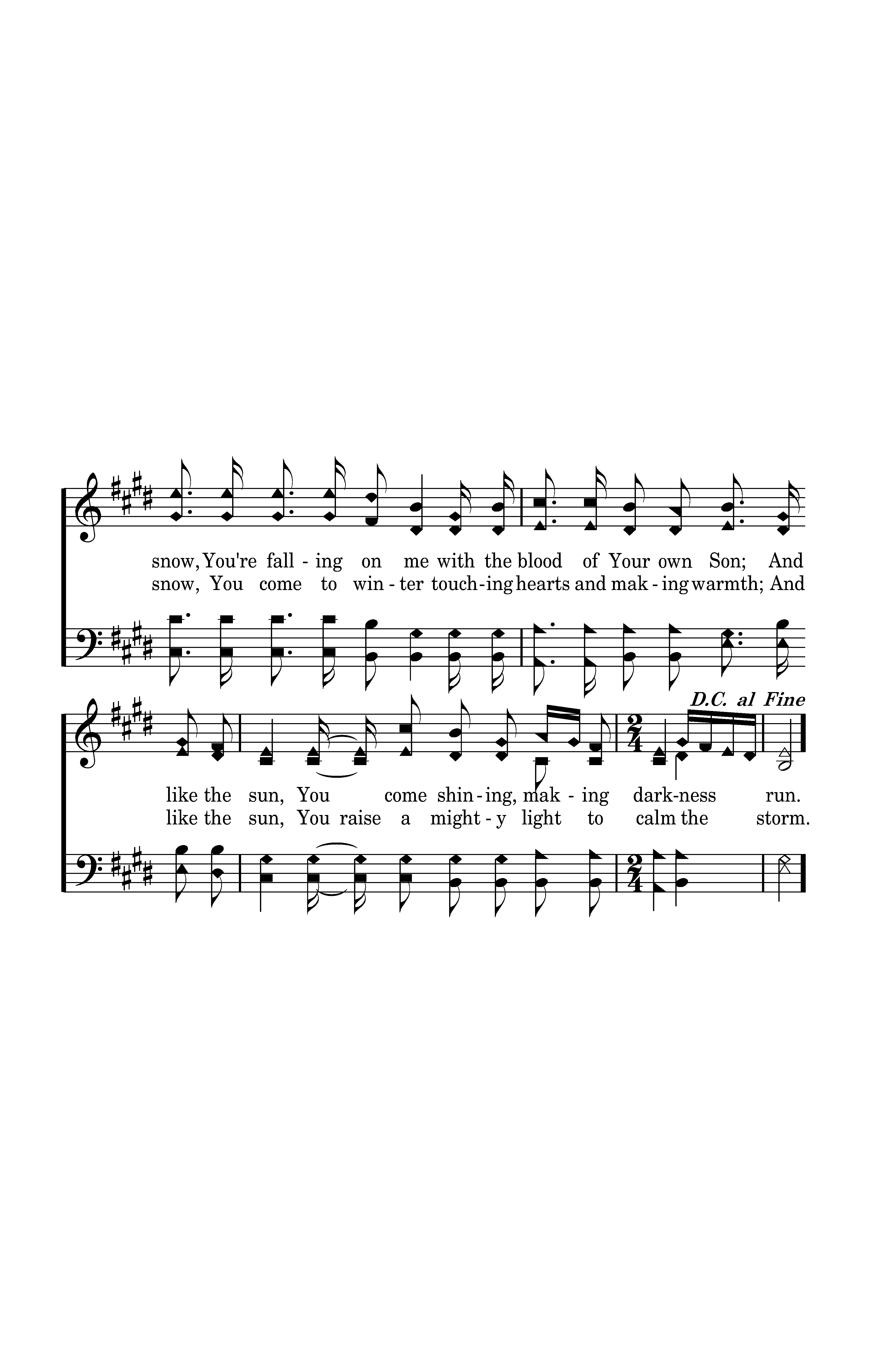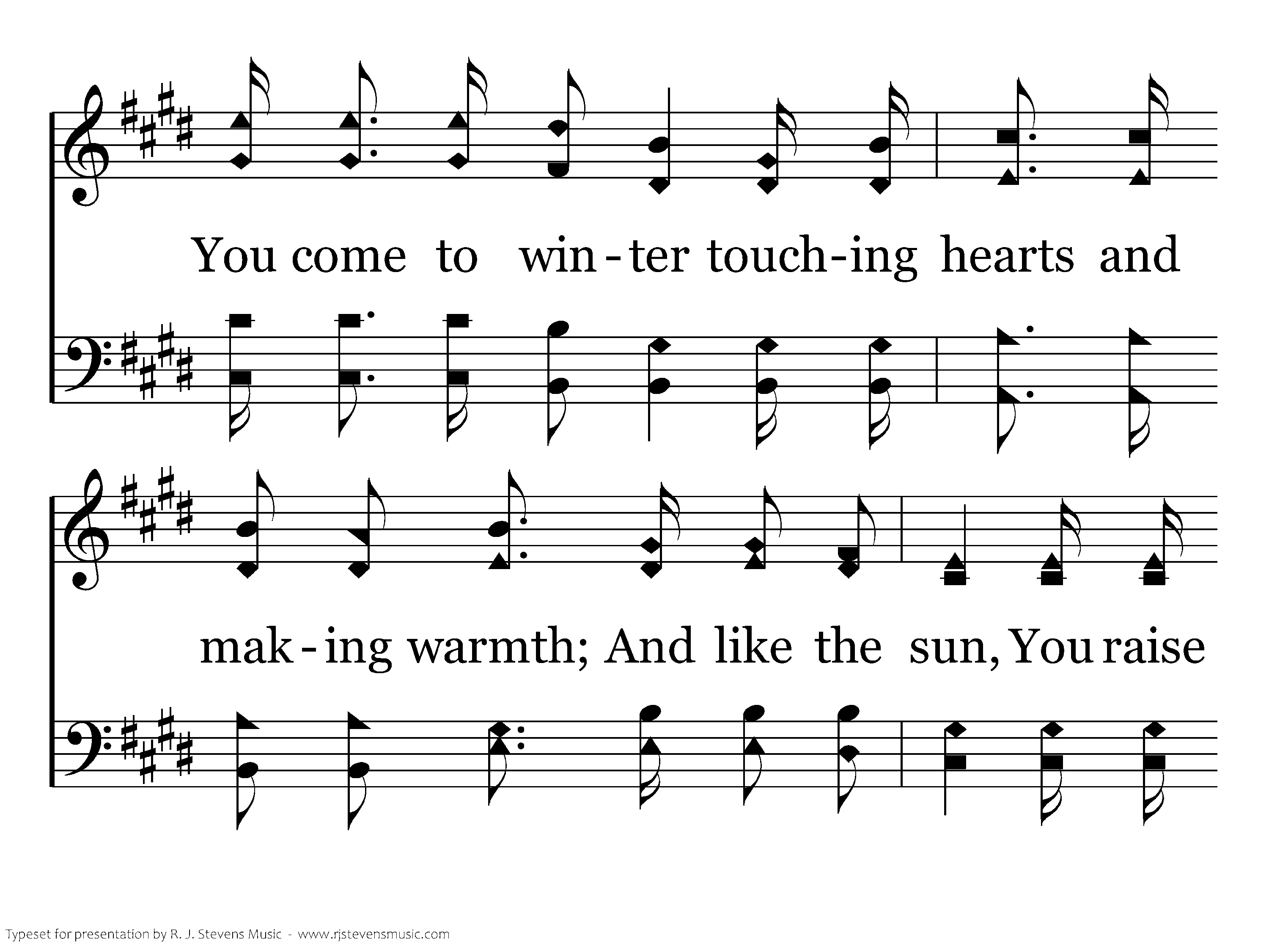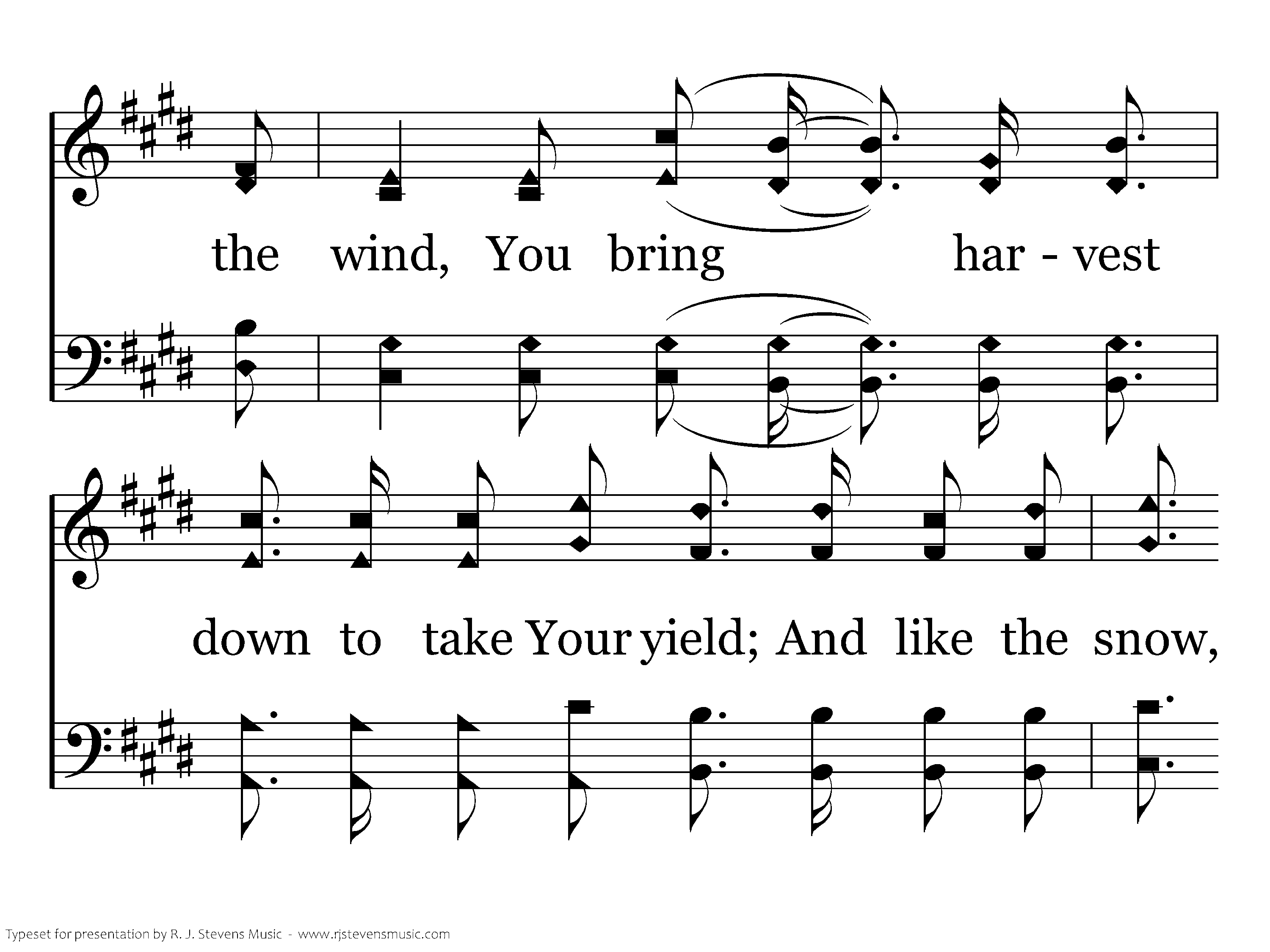 Like a river You come pouring out Your love upon the field; And like the wind, You bring harvest down to take Your yield; And like the snow, You come to winter touching hearts and making warmth; And like the sun, You raise a mighty light to calm the storm.