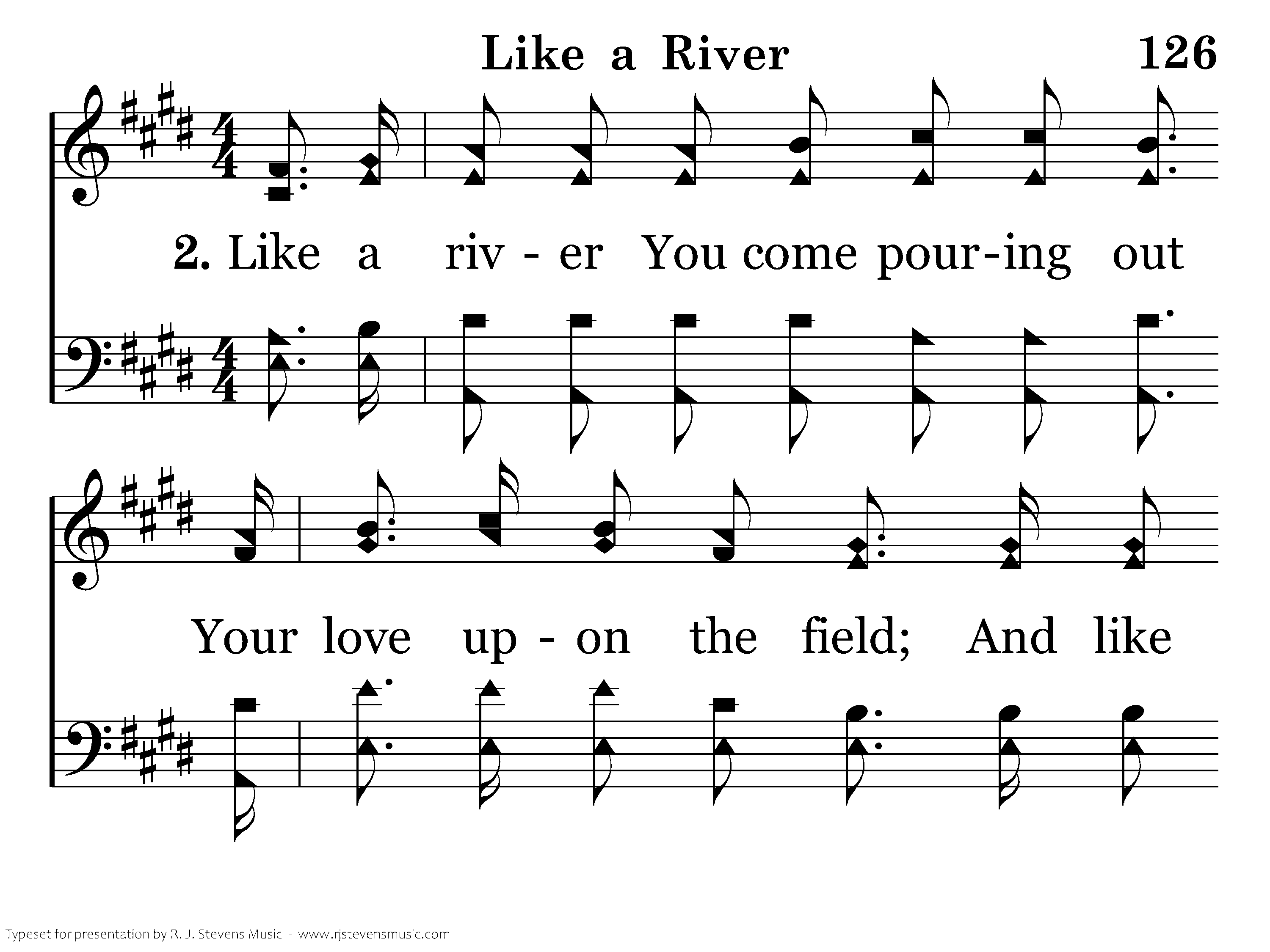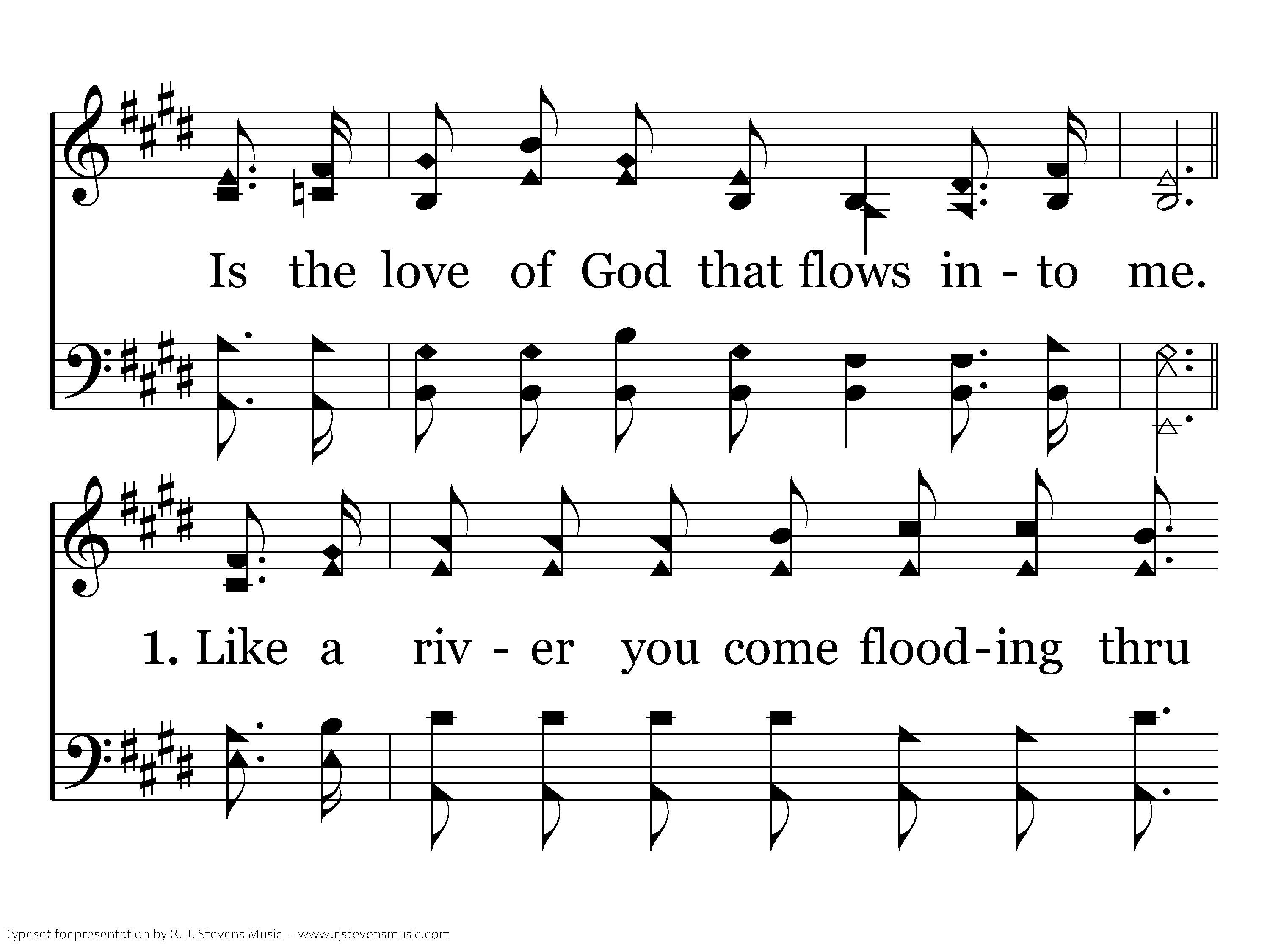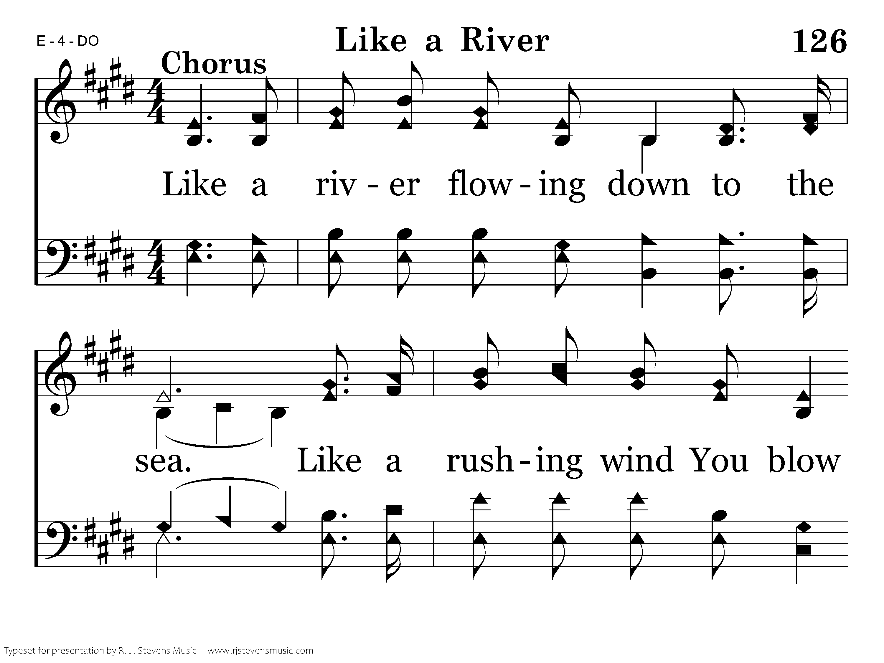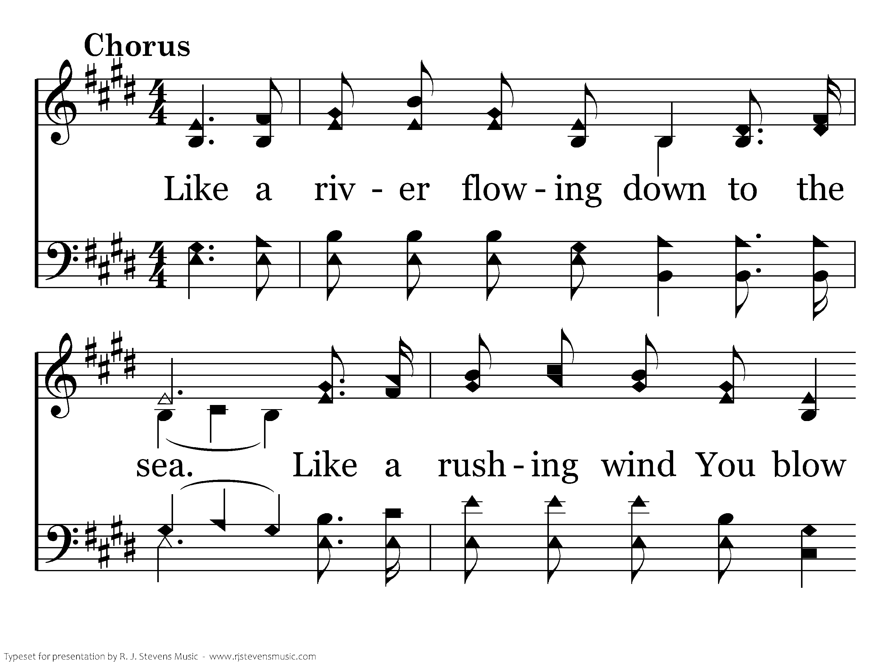 Like a river flowing down to the sea, Like a rushing wind You blow into me. Like the falling of the snow, Like the blood that makes me whole, Is the love of God that flows into me.