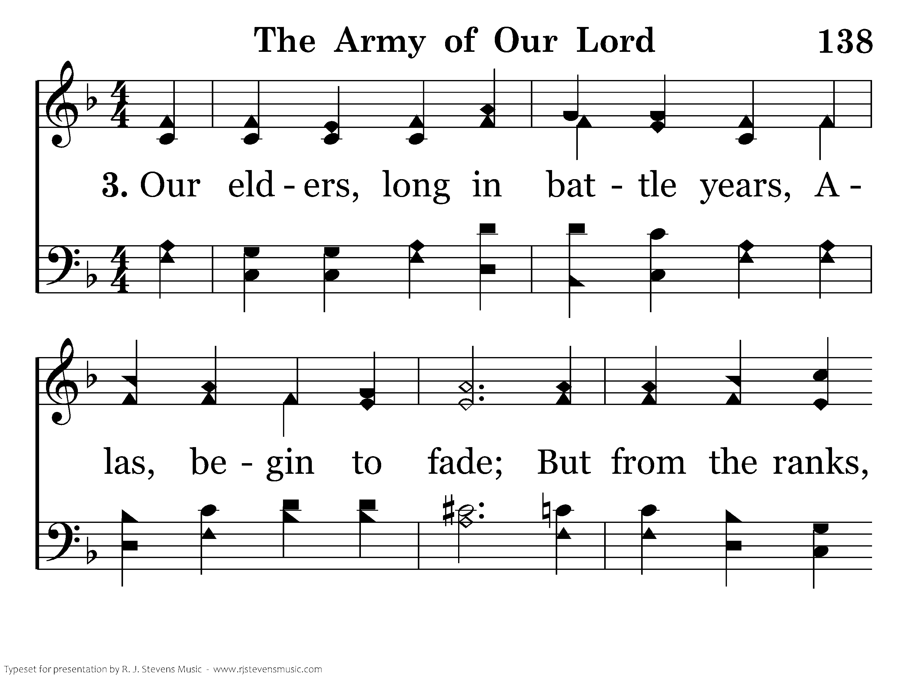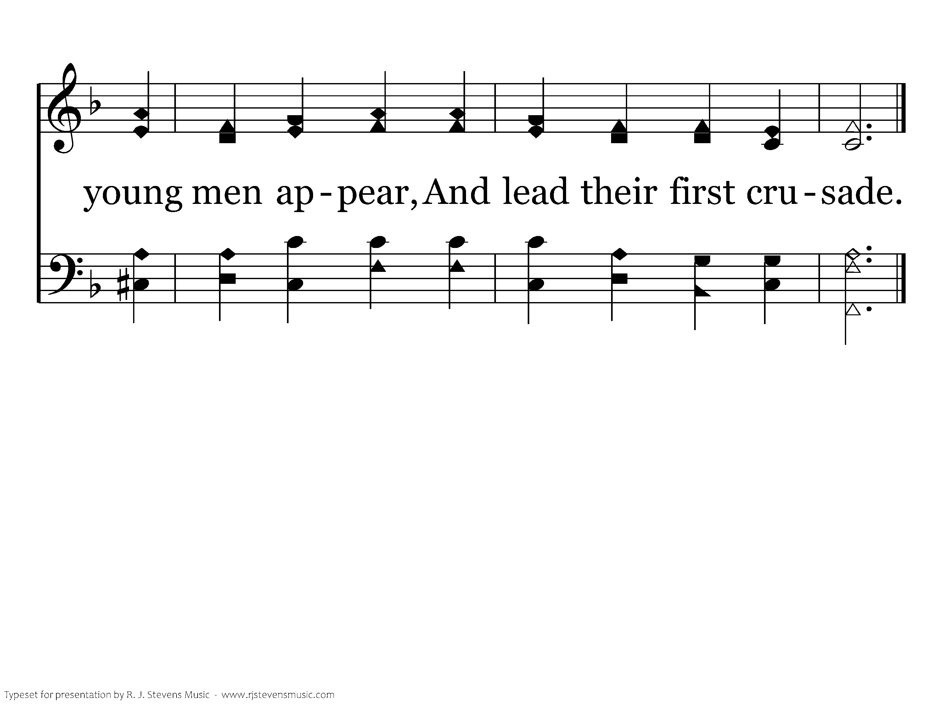 Our elders, long in battle years, Alas, begin to fade; But from the ranks, young men appear, And lead their first crusade.
