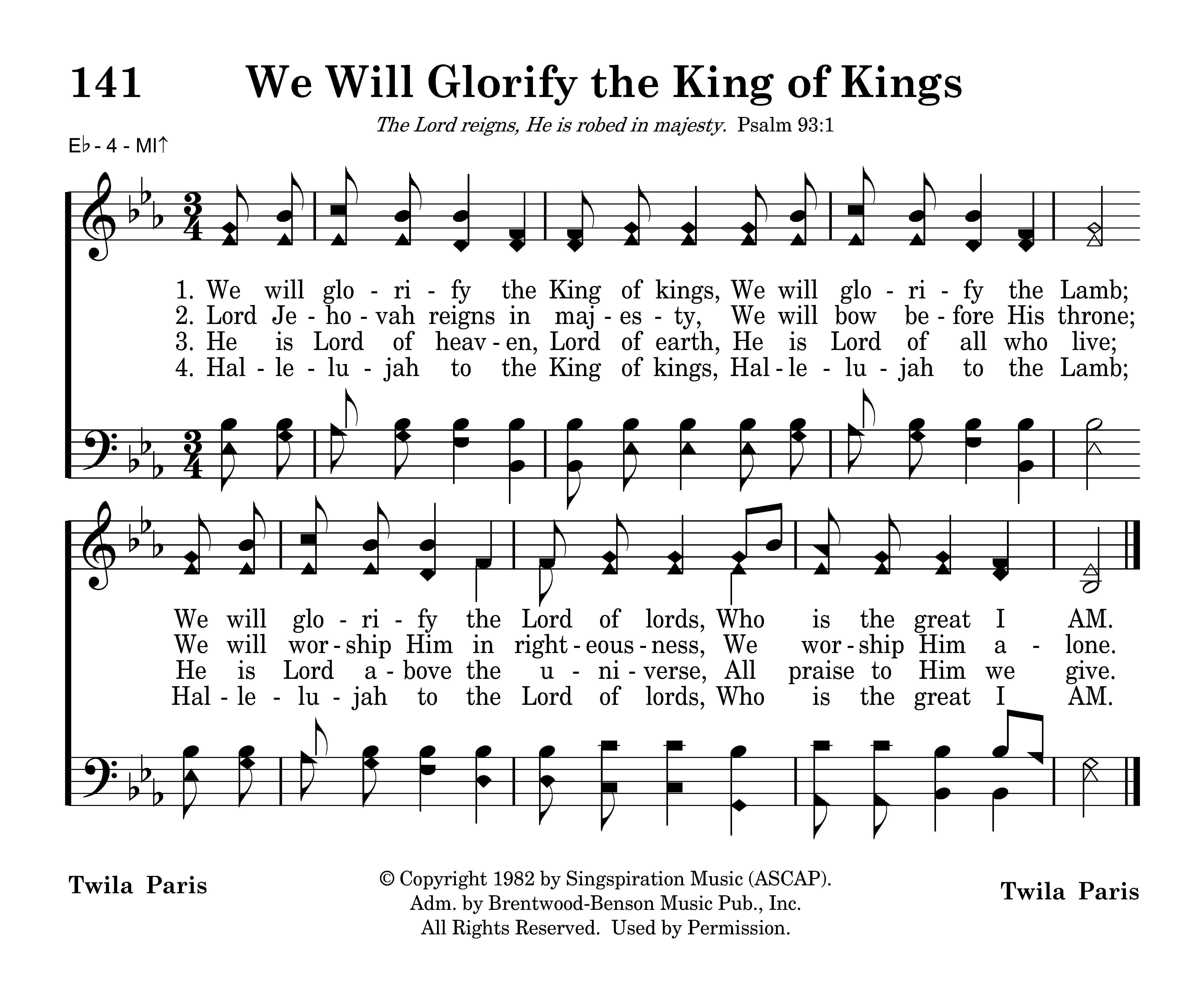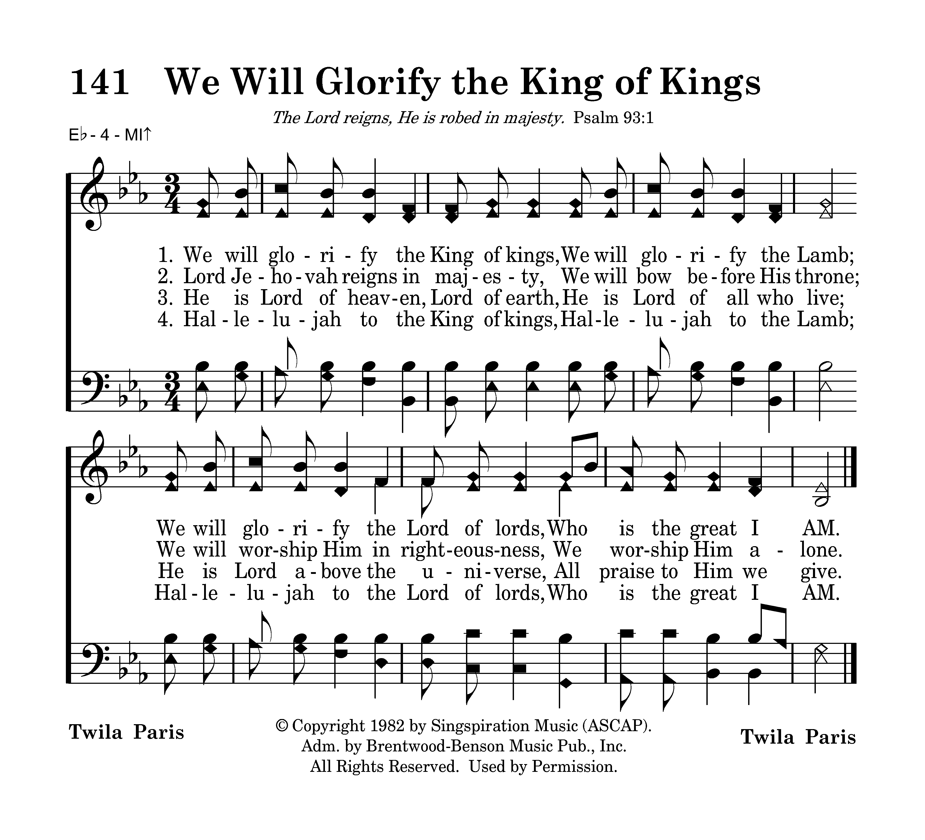 - Copyright © 1982 by New Spring. (Admin. by Brentwood-Benson Music Publishing Co., Inc.) All Rights Reserved. Used by Permission.