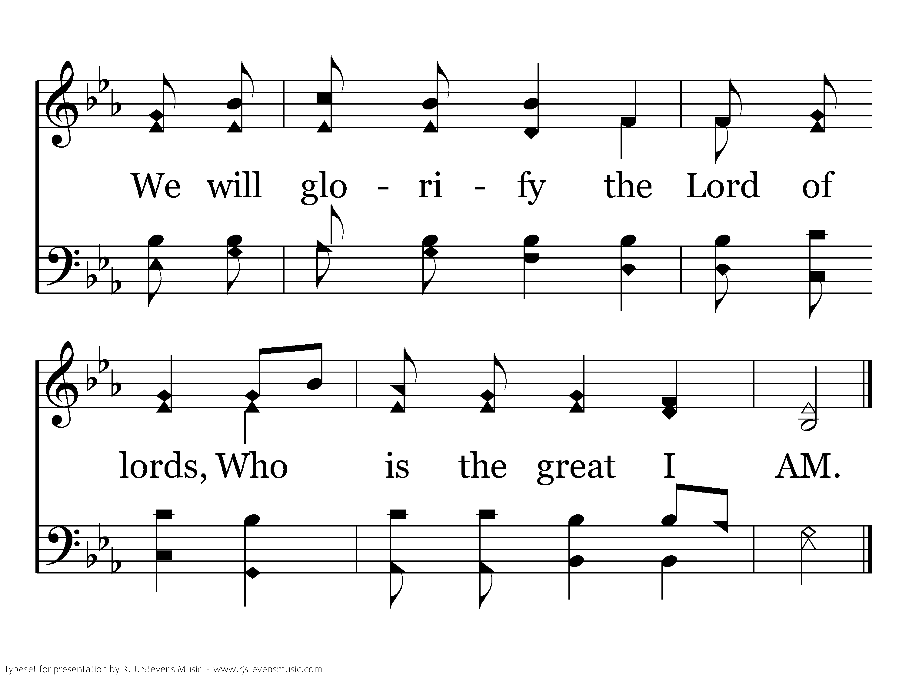 We will glorify the King of kings, We will glorify the Lamb; We will glorify the Lord of lords, who is the Great I AM.