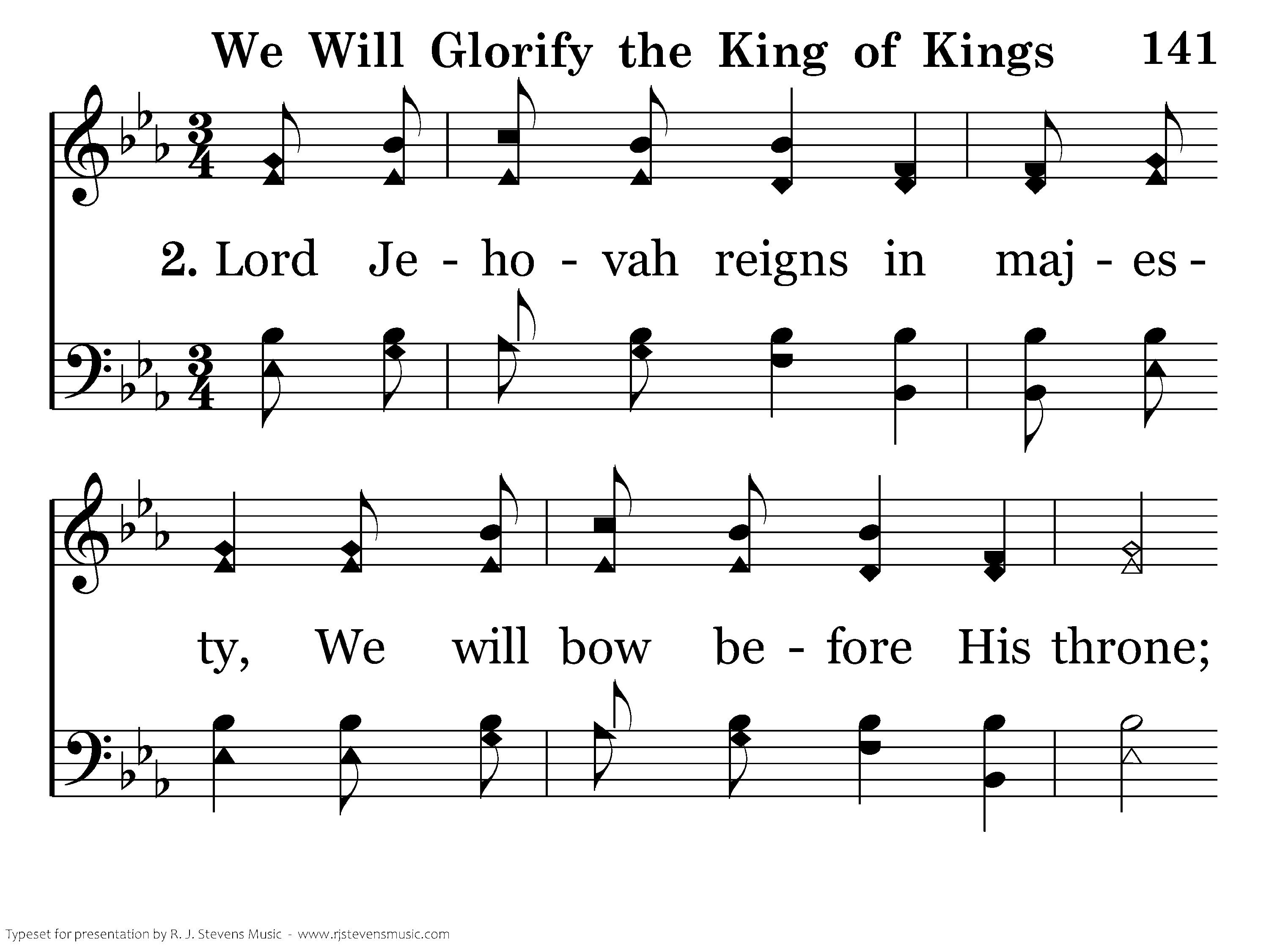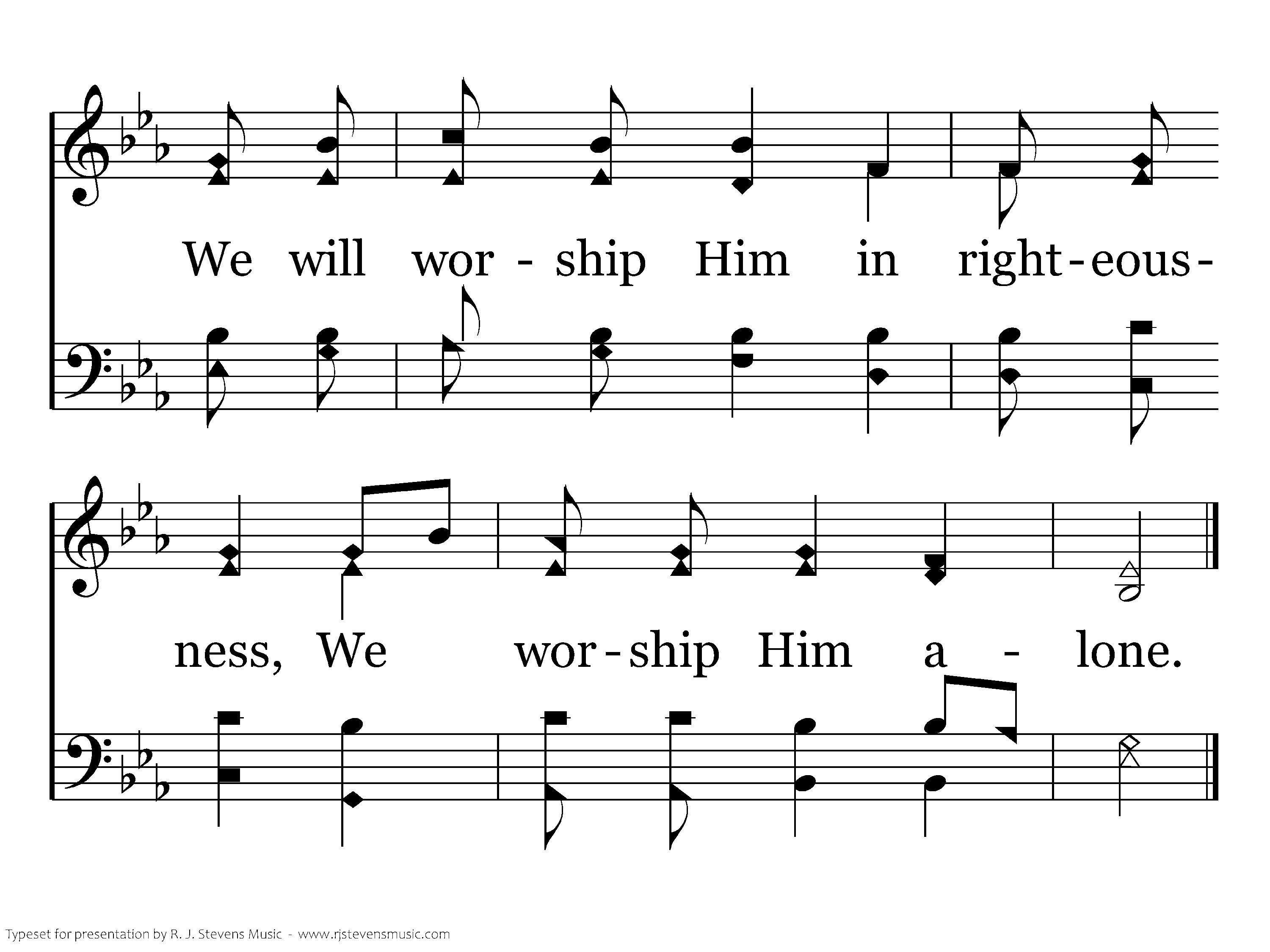 Lord Jehovah reigns in majesty, We will bow before His throne; We will worship Him in righteousness, We will worship Him alone.