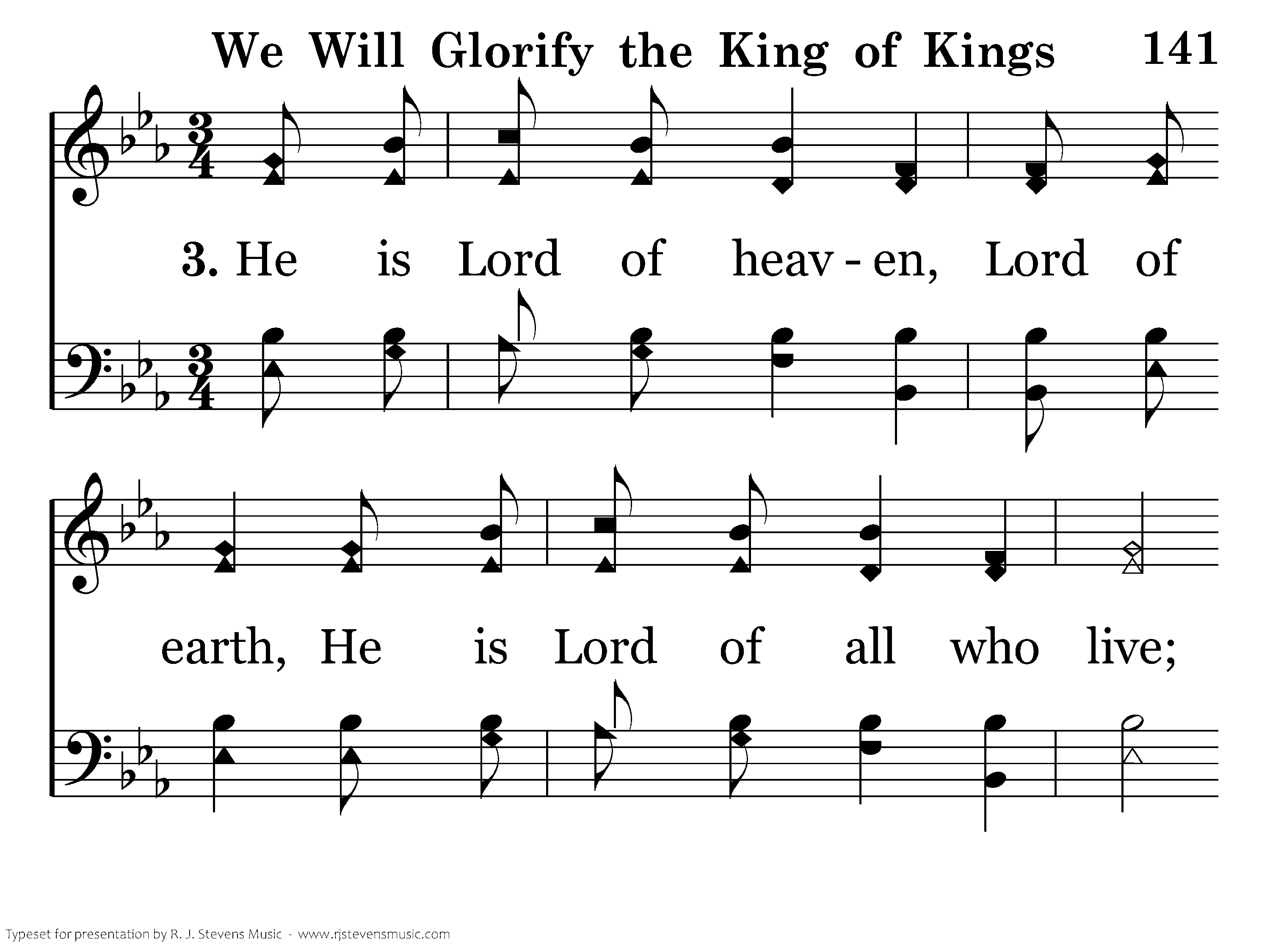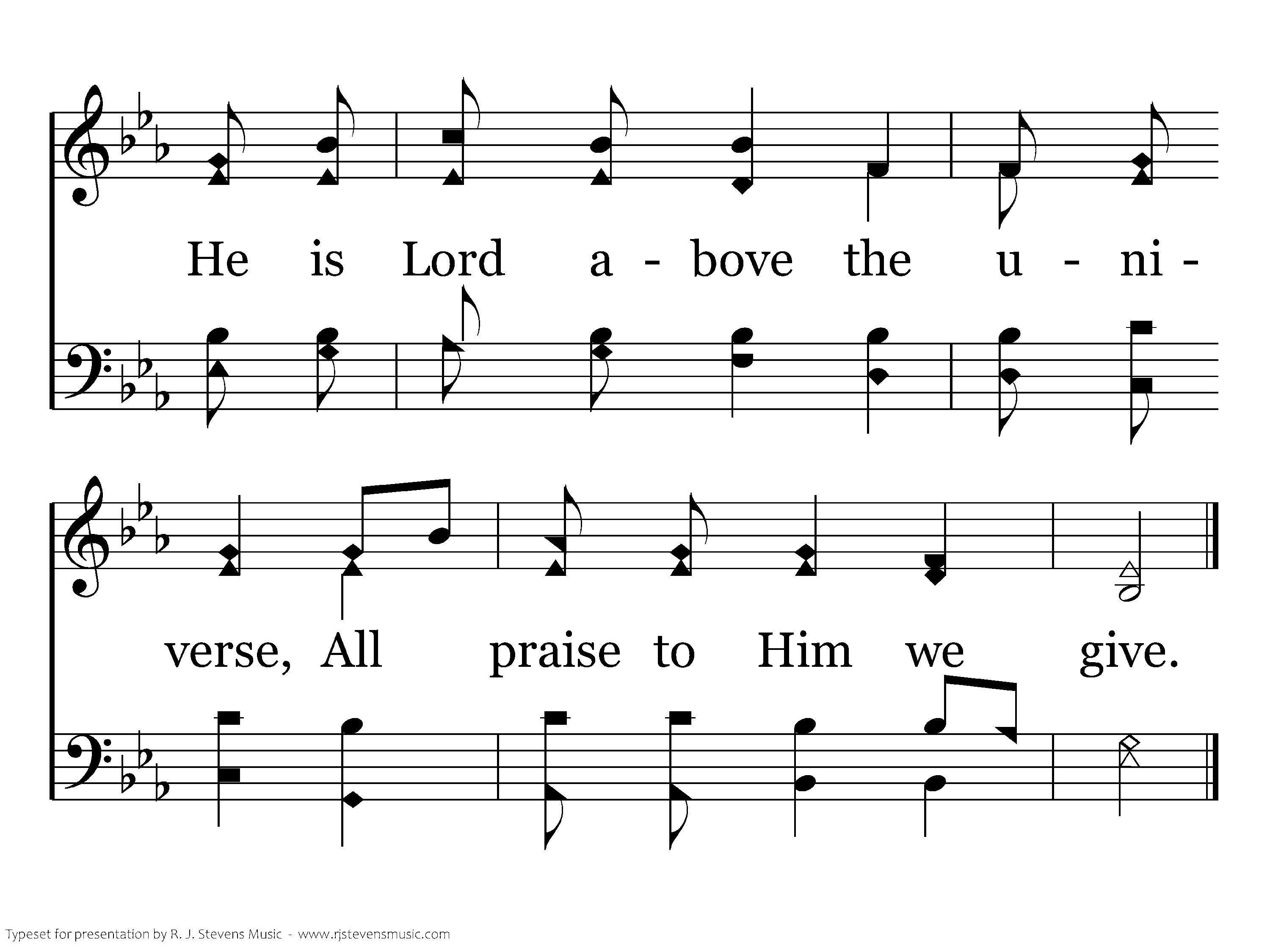 He is Lord of heaven, Lord of earth, He is Lord of all who live; He is Lord above the universe, All praise to Him we give.