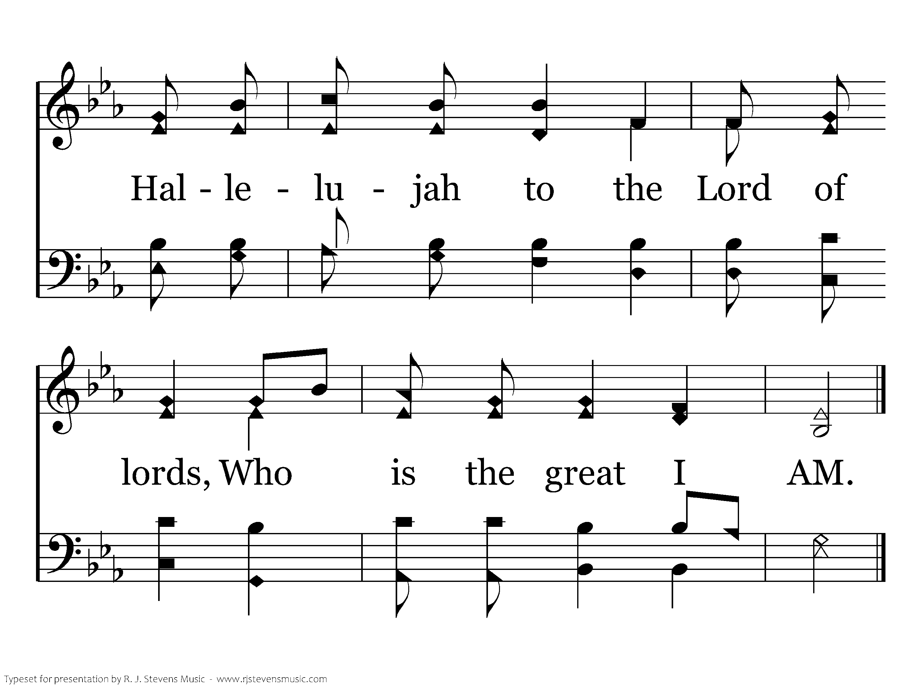 Hallelujah to the King of kings, Hallelujah to the Lamb; Hallelujah to the Lord of lords, Who is the great I AM.
