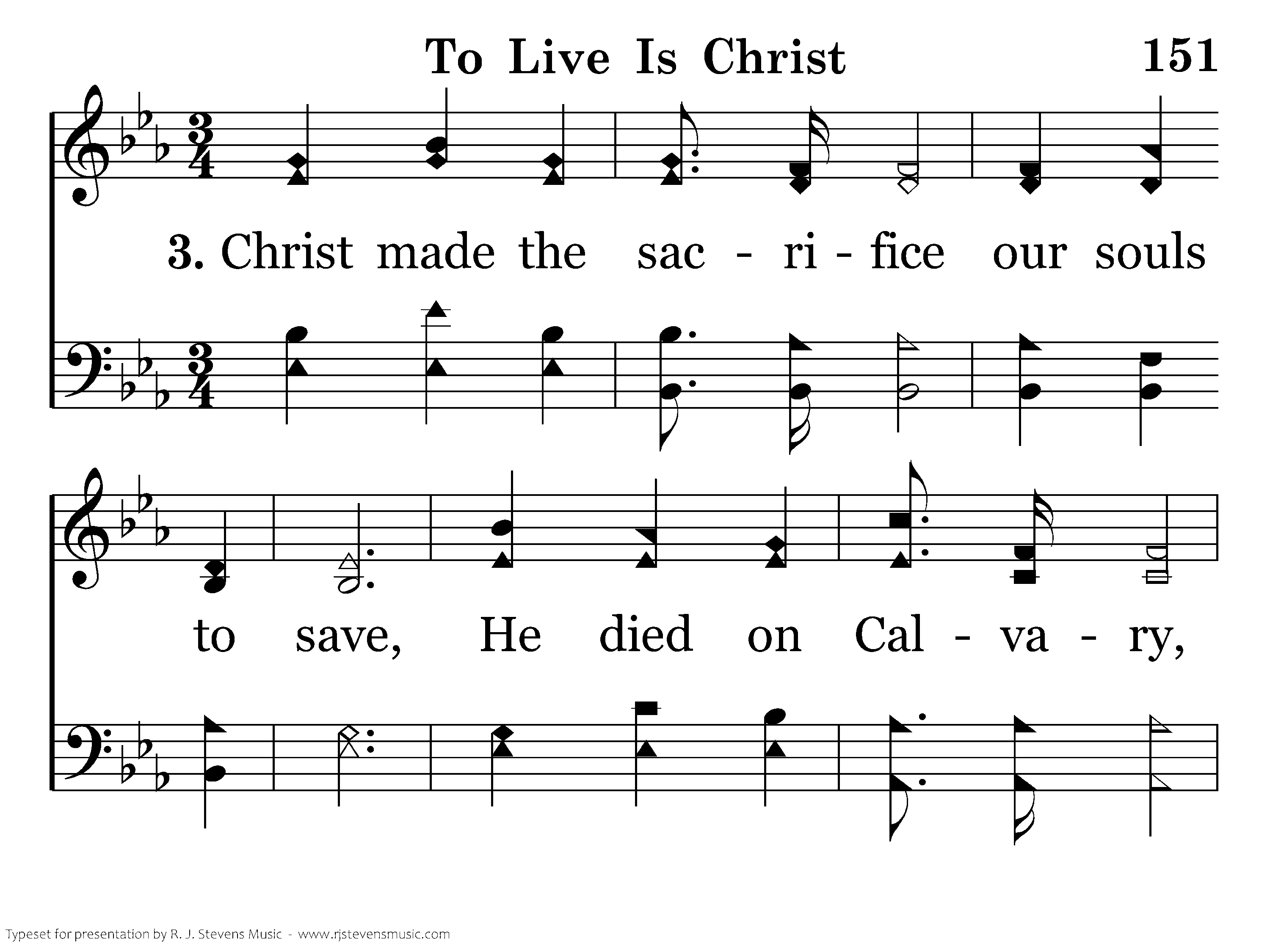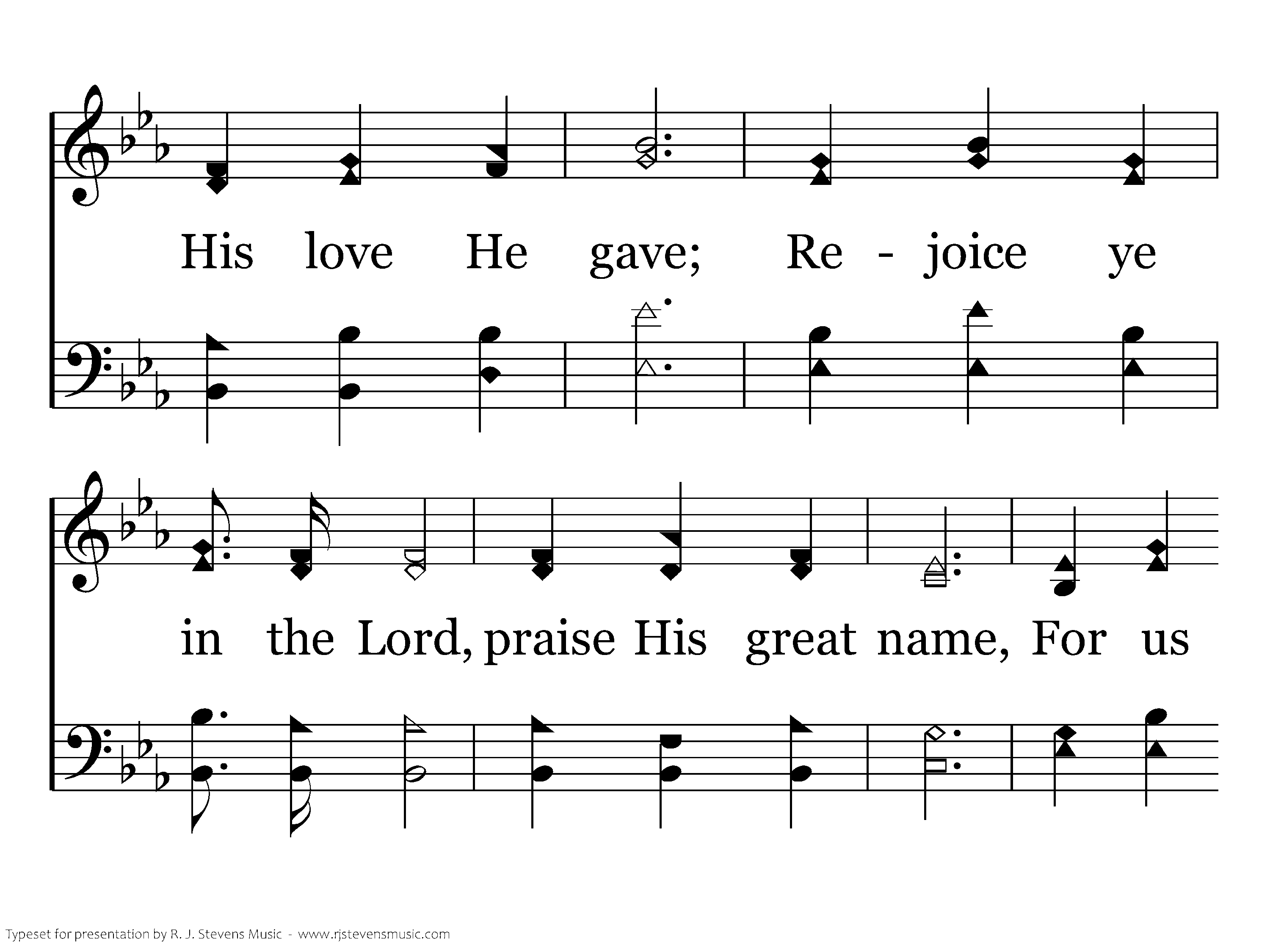 Christ made the sacrifice our souls to save, He died on Calvary, His love He gave, Rejoice ye in the Lord, praise His great name, For us to live is Christ, to die is gain.