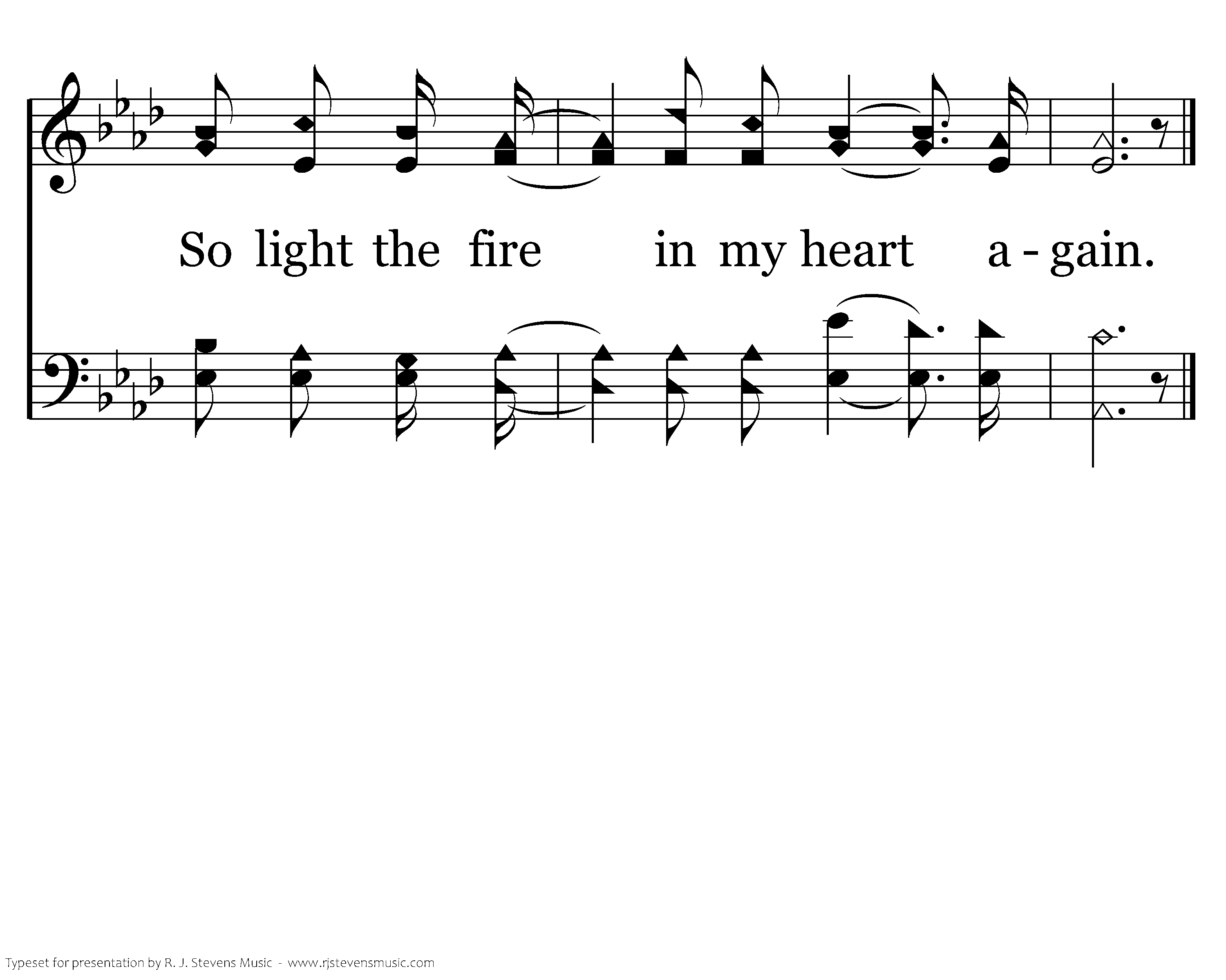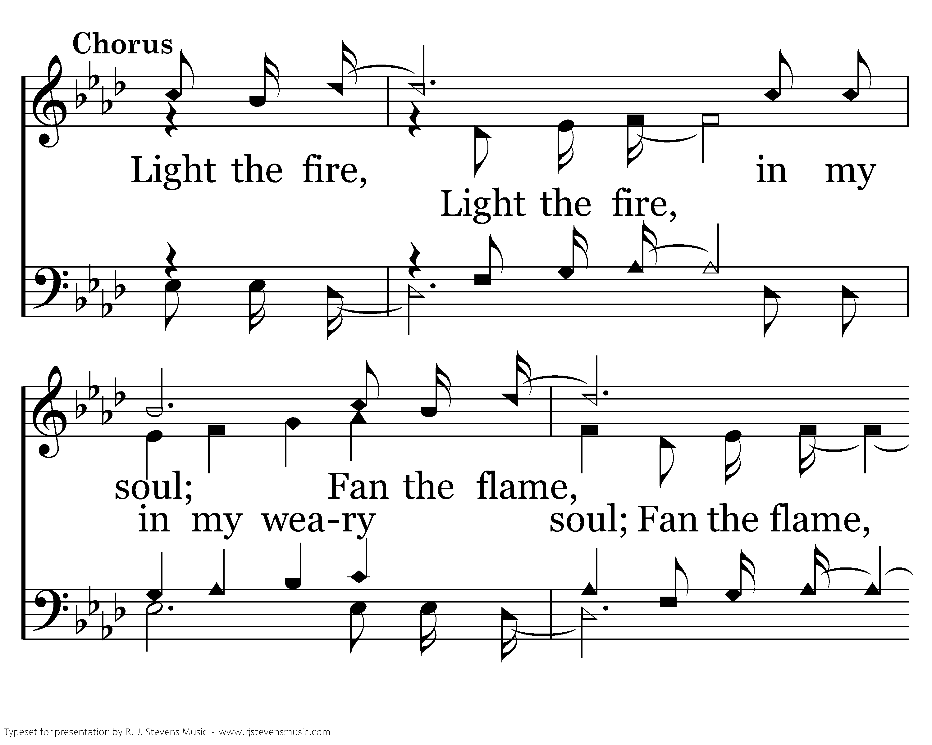 Light the fire in my soul; Fan the flame, make me whole. Lord, You know where I've been; So light the fire in my heart again.