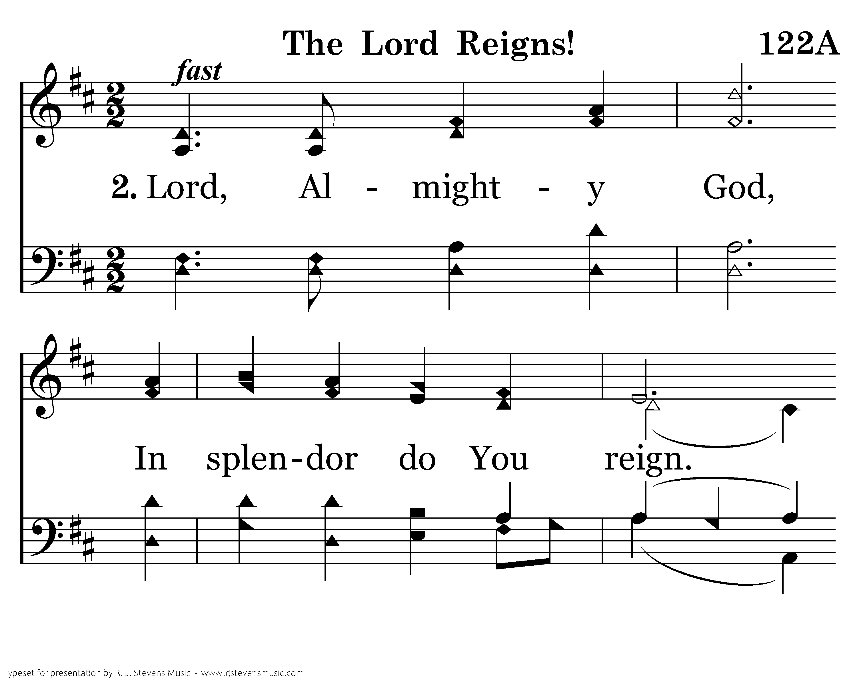 Lord, almighty God, in spendor do You reign. Your radiant Light reveals Your holy ways. In creation, strength revealed, In Your word, Your truth is sealed, ruling high above the vault of sky, enthroned in praises, You are glorified.