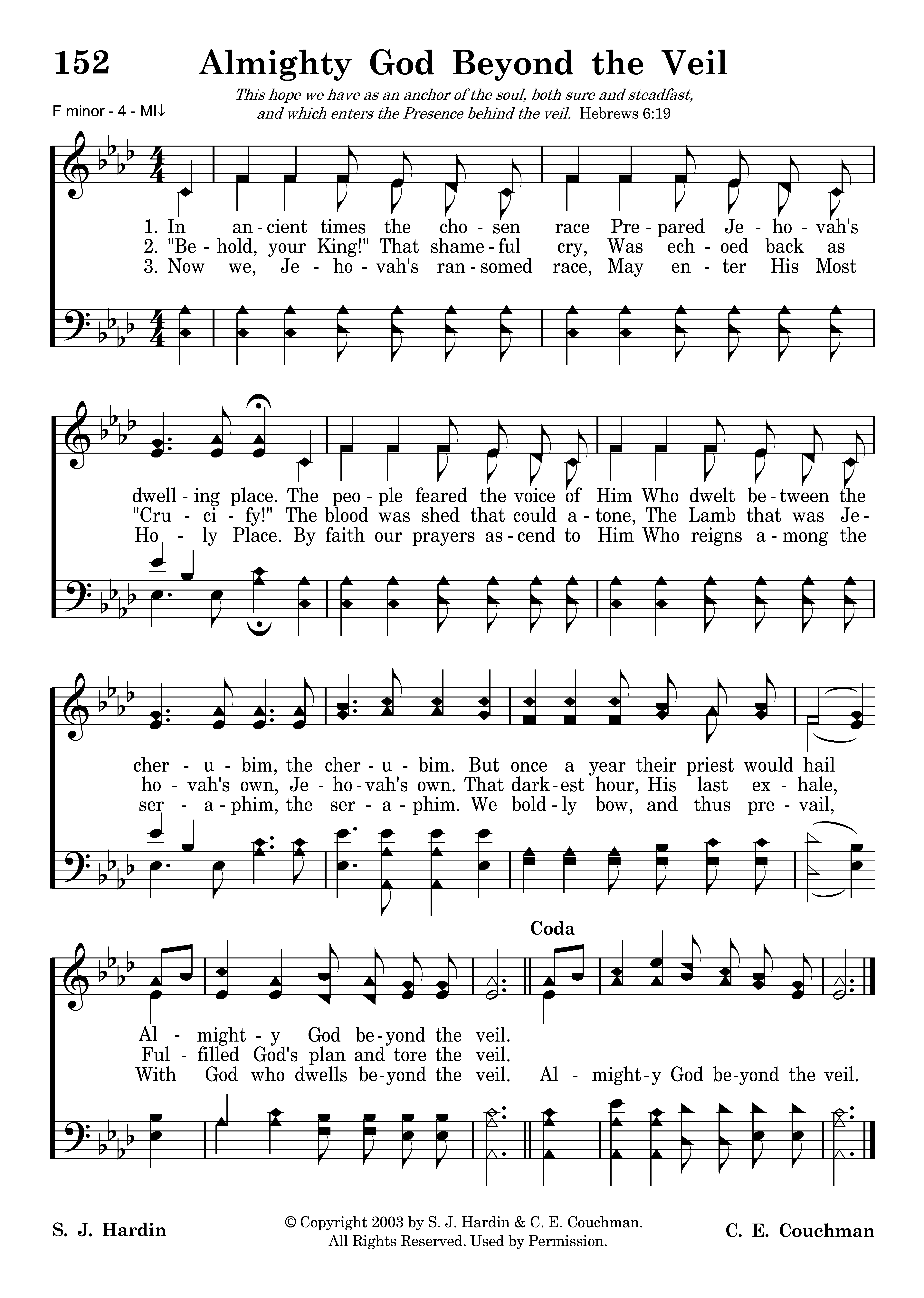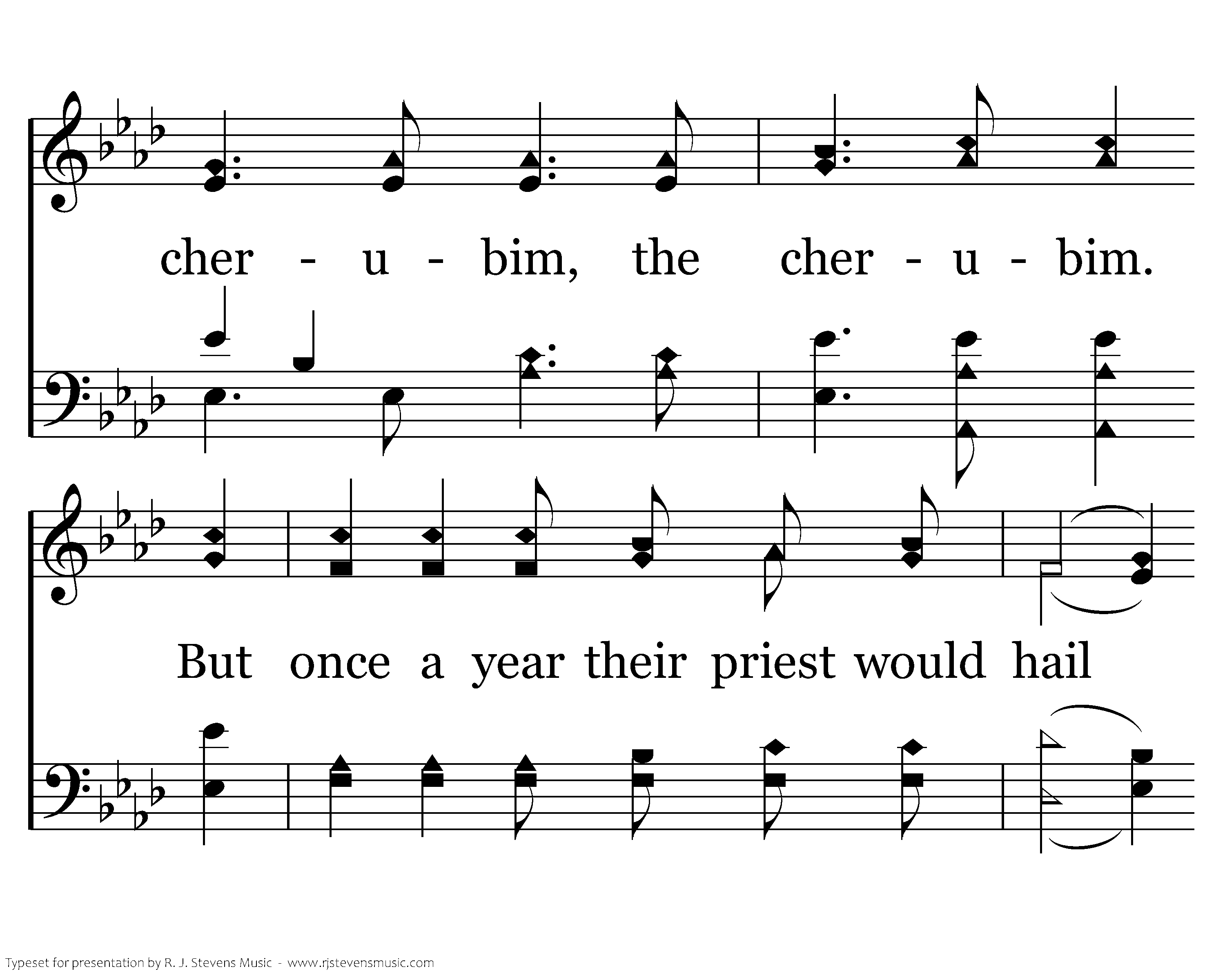 In ancient times the chosen race Prepared Jehovah's dwelling place. The people feared the voice of Him Who dwelt between the cherubim, the cherubim. But once a year their priest would hail Almighty God beyond the veil.
