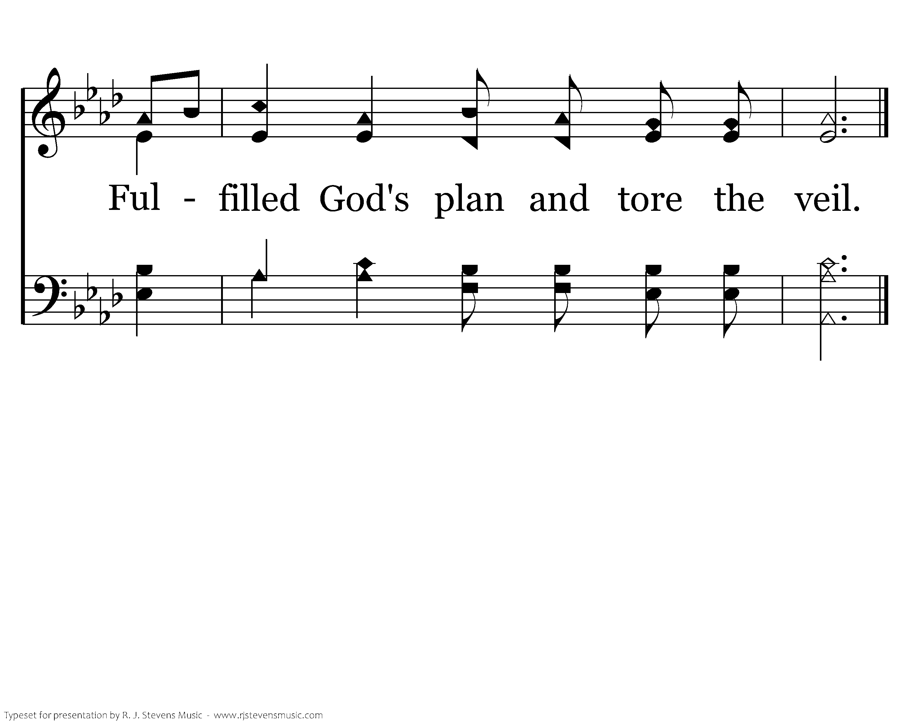 Behold, your King! That shameful cry, Was echoed back as "Crucify!" The blood was shed that could atone, The Lamb that was Jehovah's own, Jehovah's own. That darkest hour, His last exhale, Fulfilled God's plan and tore the veil.