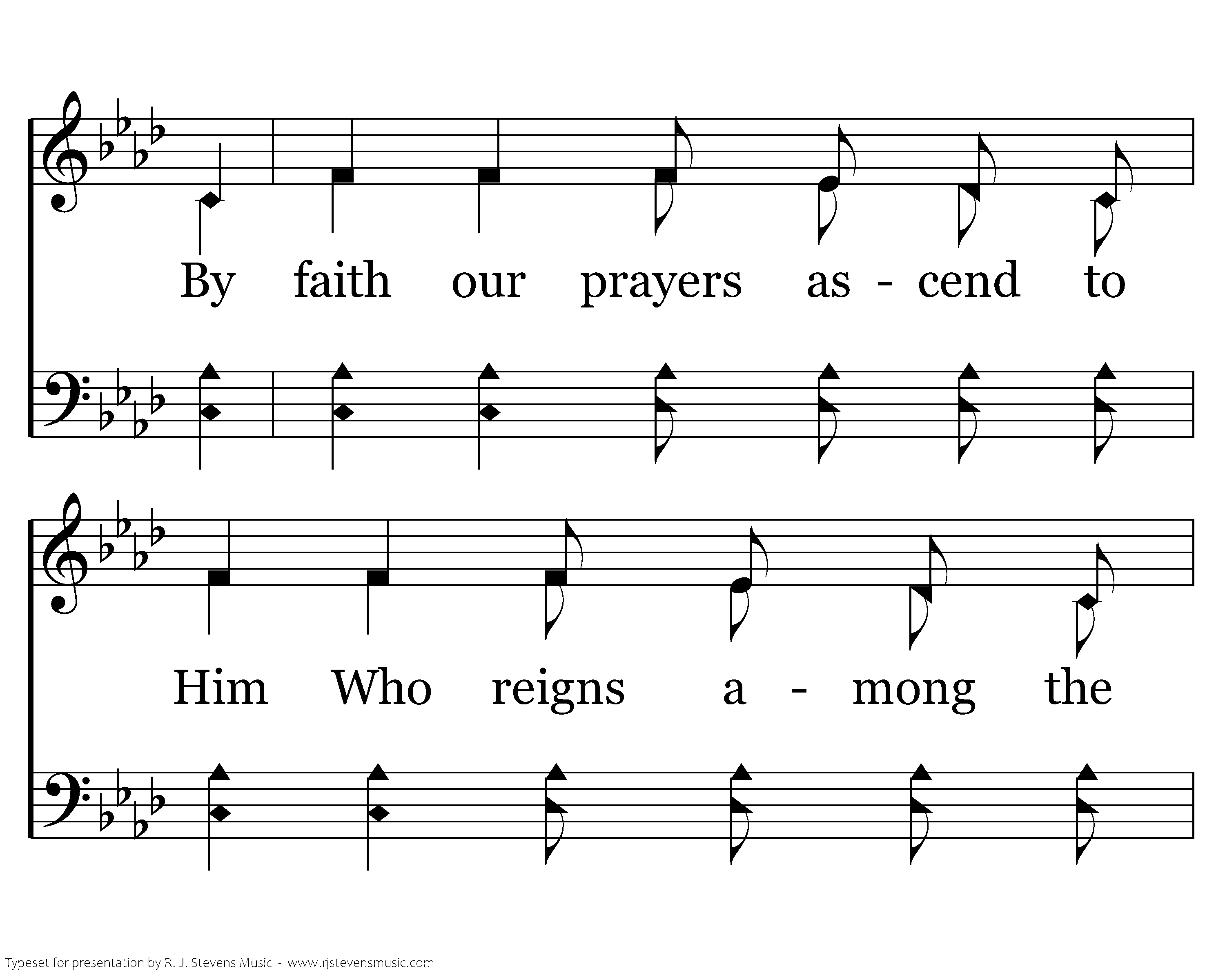 Now we, Jehovah's ransomed race, May enter His Most Holy Place. By faith our prayers ascend to Him Who reigns among the seraphim, We boldly bow, and thus prevail, With God who dwells be-yond the veil.