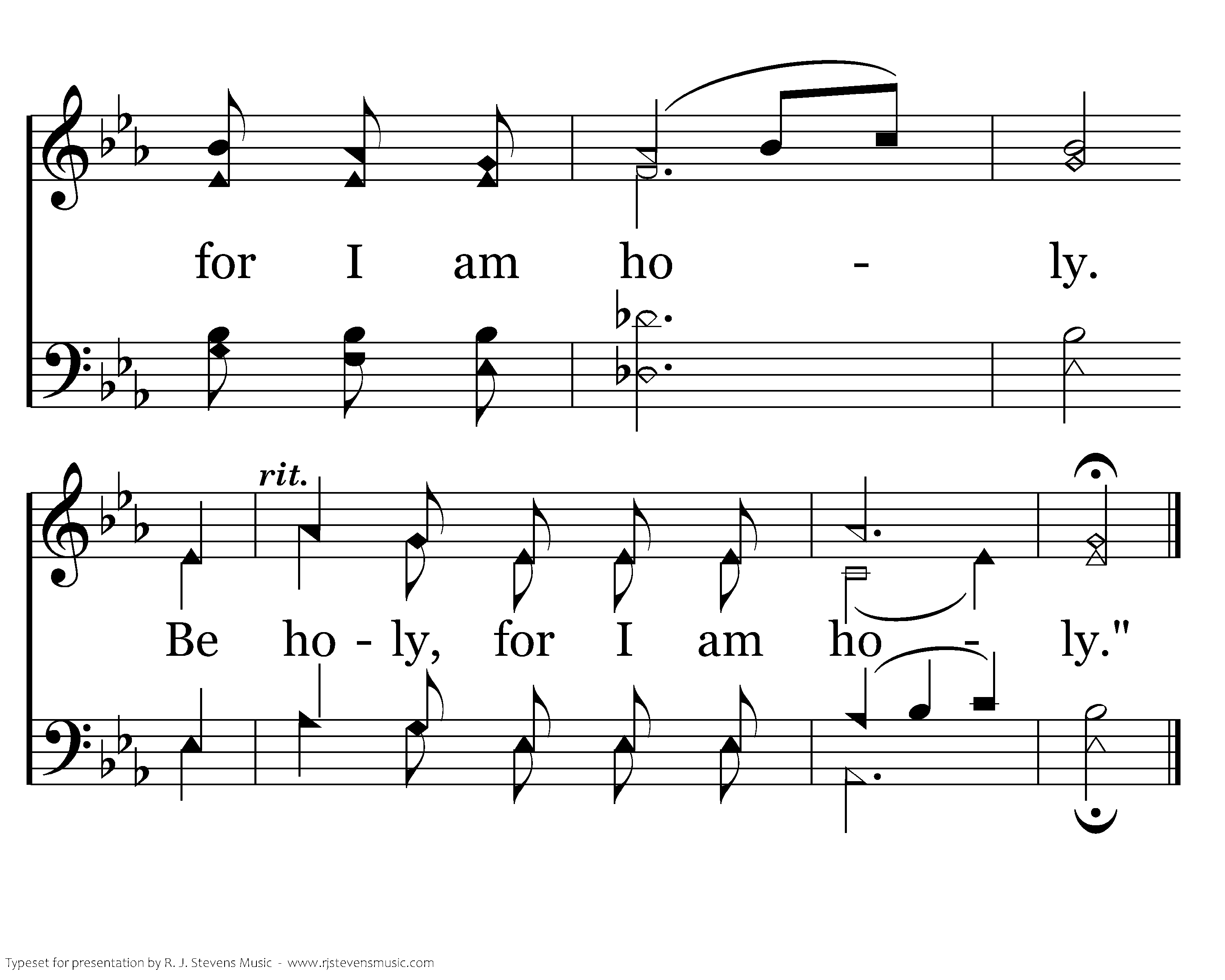 We come to You as living stones, Built up and fit together. Come fill Your holy house, O God; Abide within for ever. The Holy One has called us, Be holy, for I am holy.
