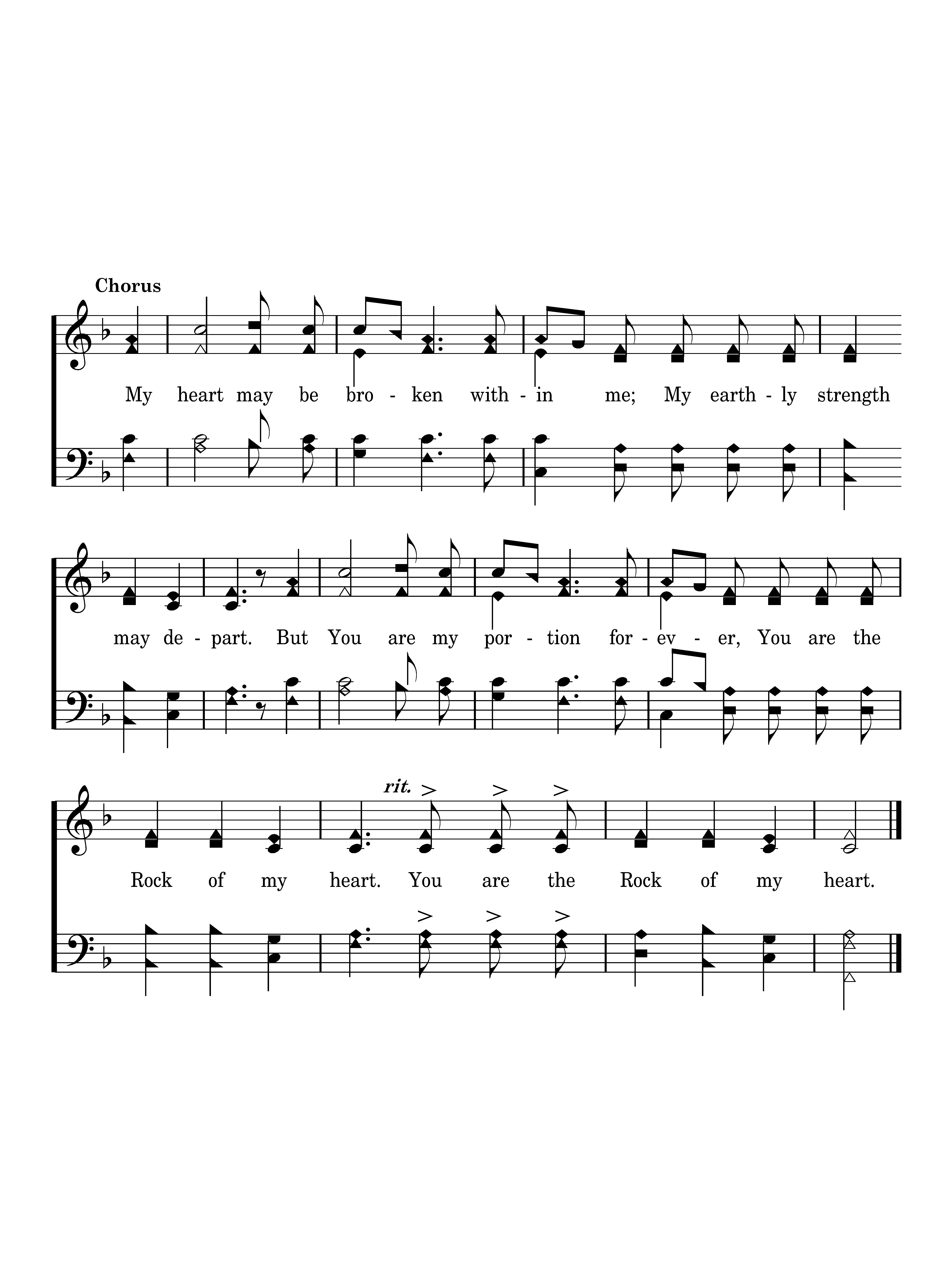 My heart may be broken within me; My earthly strength may depart. But You are my portion forever, You are the Rock of my heart. You are the Rock of my heart.