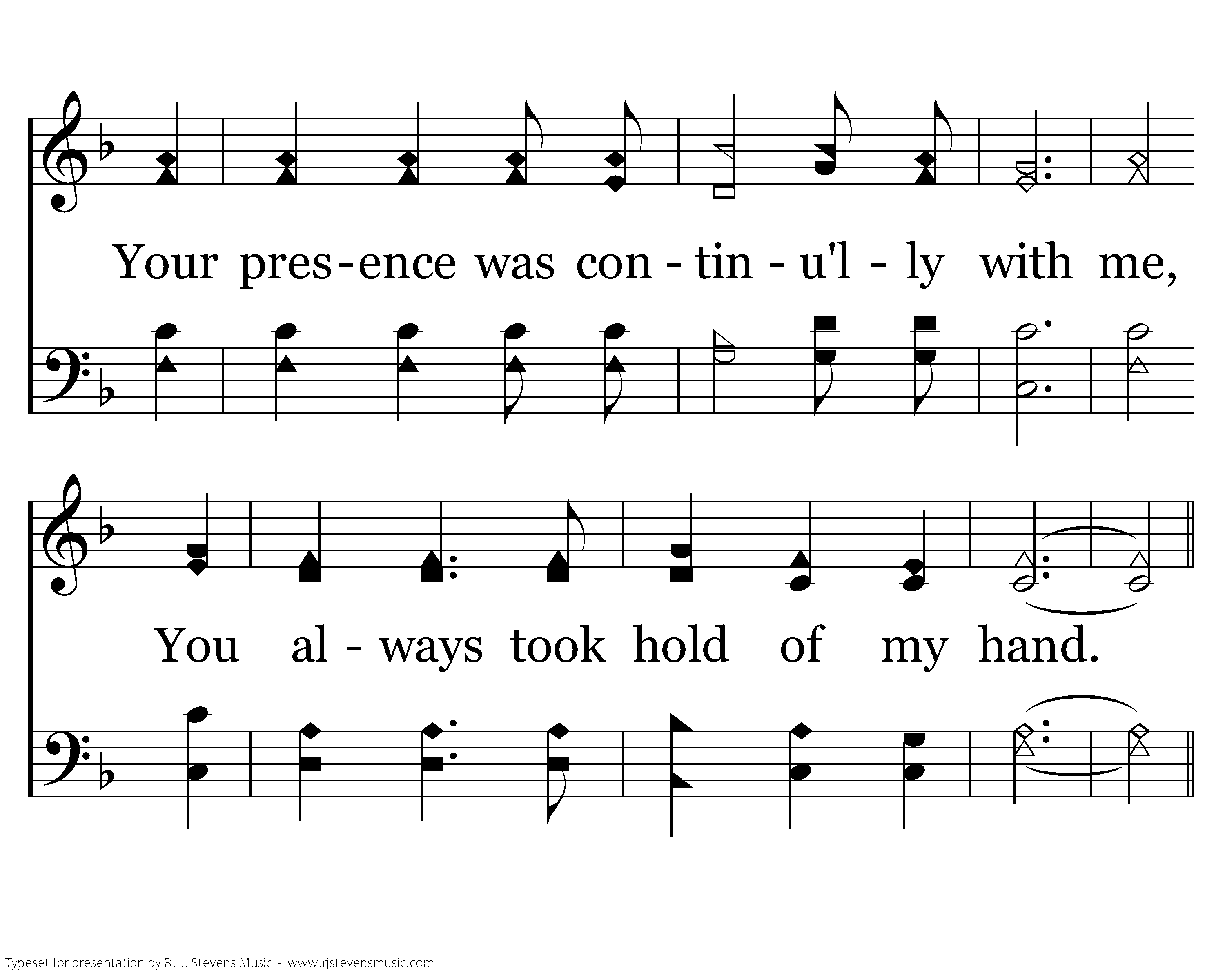 When I was distressed and embittered by things I could not understand, Your presence was continu'lly with me, You always took hold of my hand.