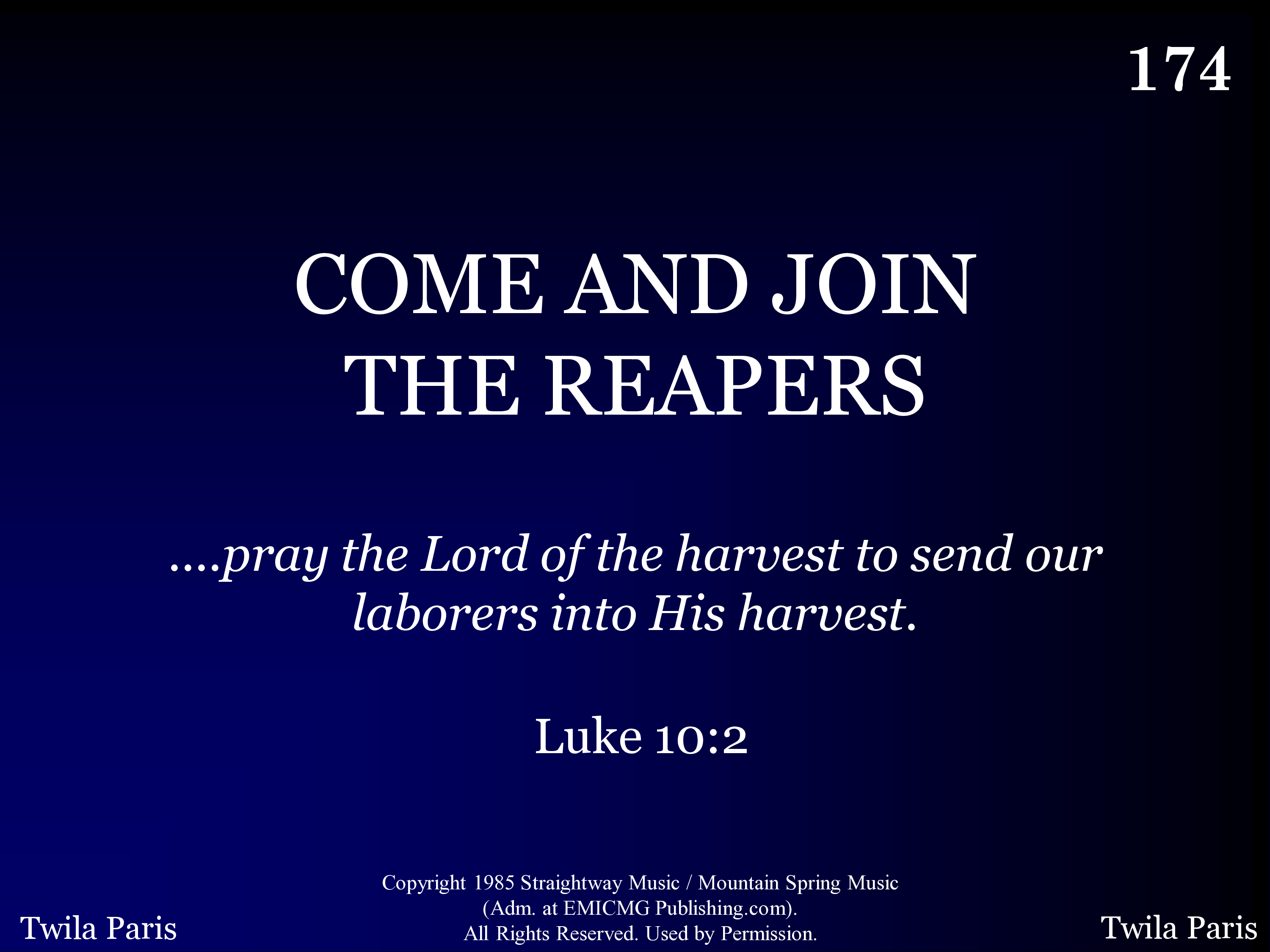 Come and join the reapers, called the kingdom seekers, Laying down your life to find it in the end. Come and share the harvest, help to light the darkness, For the Lord is calling faithful men.