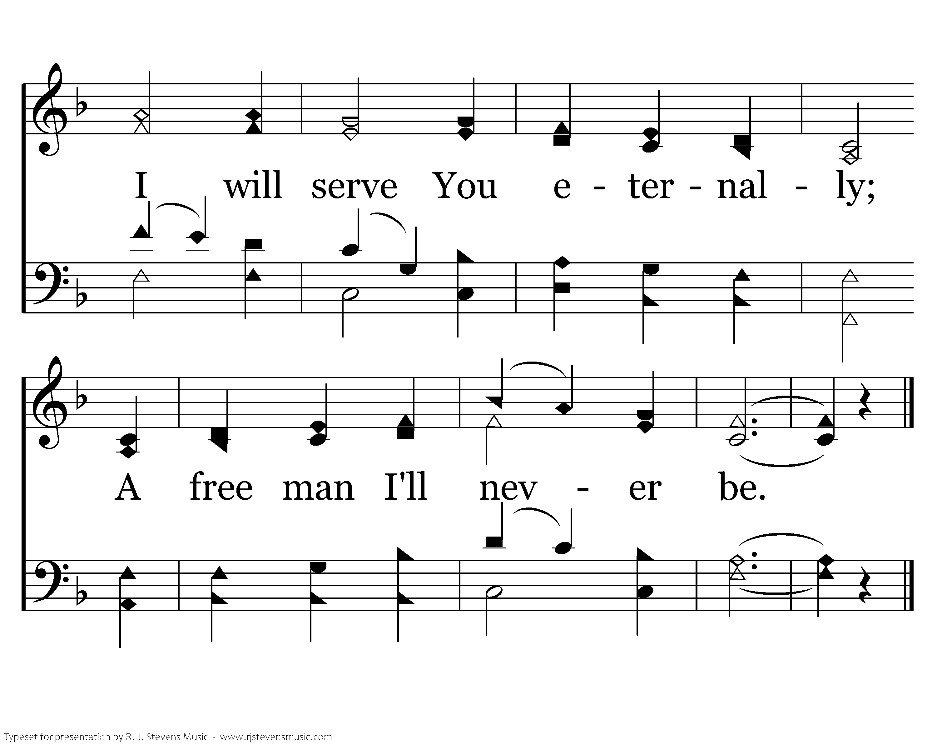 You have paid the price for me; With Your blood You ransomed me. I will serve You eternally; A free man I'll never be.
