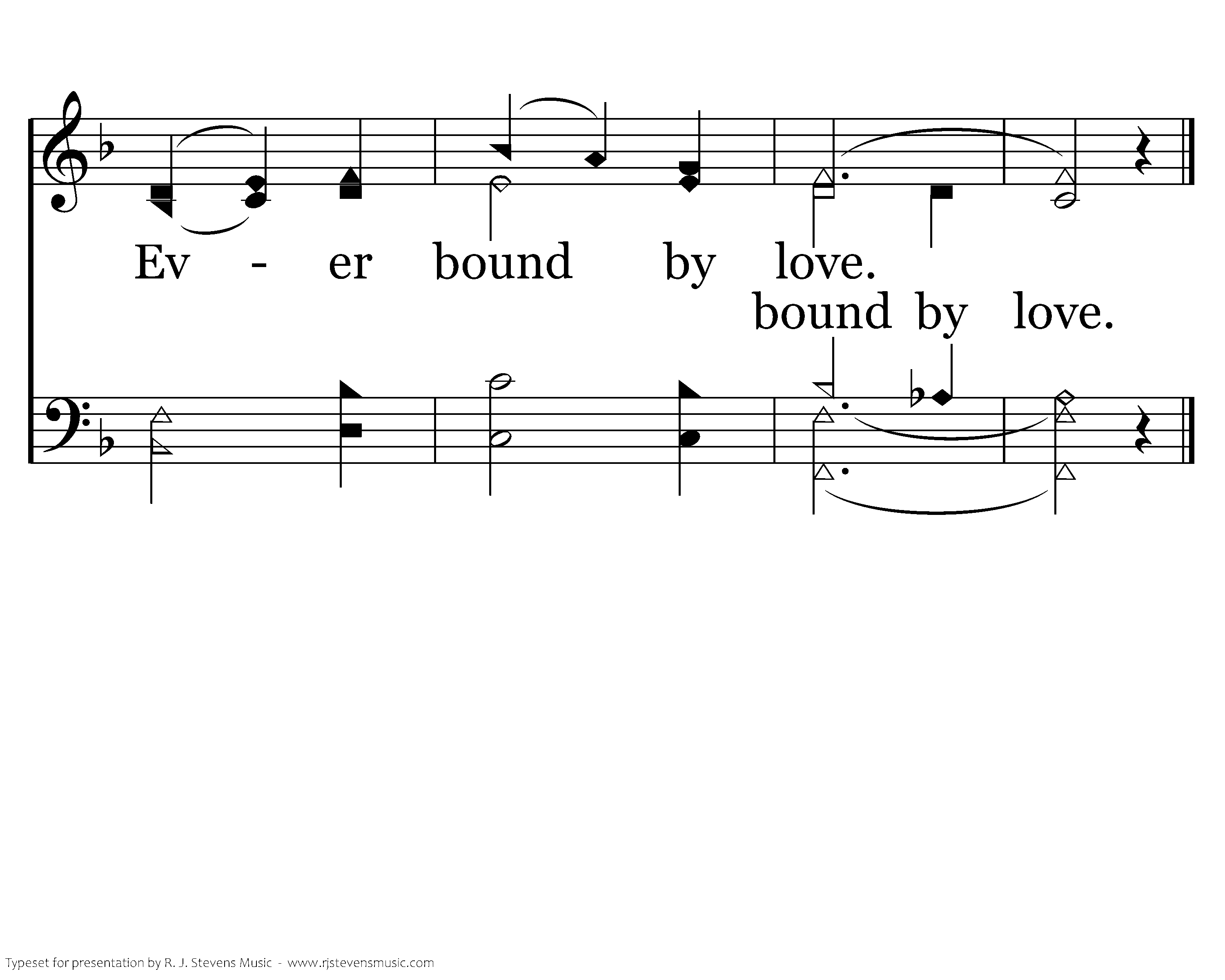 Pierce my ear, O Lord, my God; Take me to Your door this day. I will serve no other god; O Lord, I'm here to stay. For love. Ever bound by love.