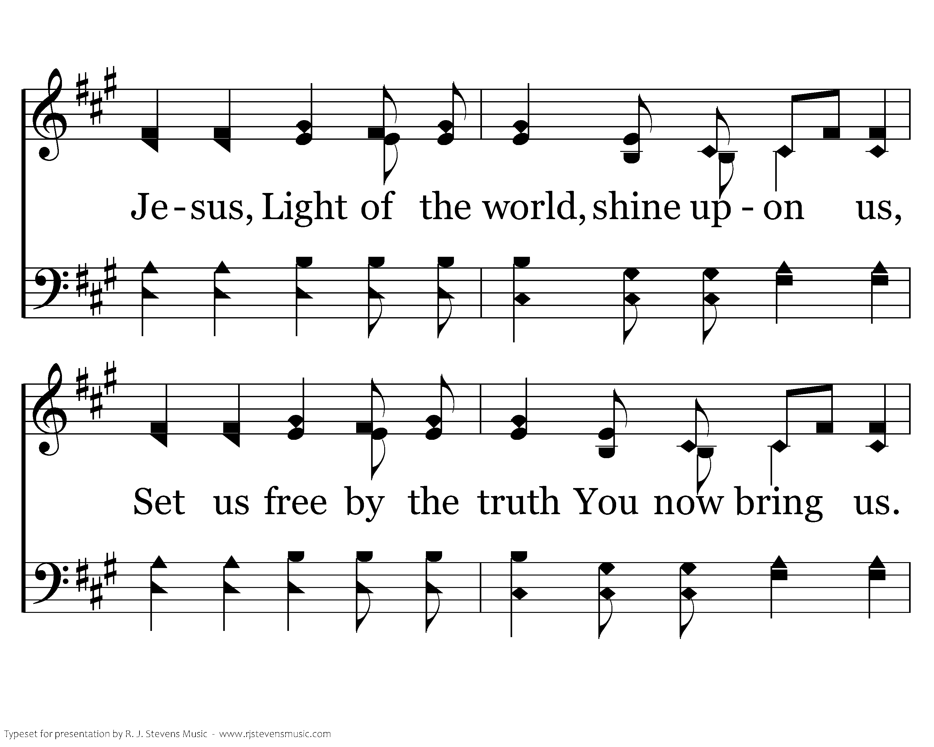 Lord, the light of Your love is shining In the midst of the darkness shining; Jesus, Light of the world, shine upon us, Set us free by the truth You now bring us. Shine on me, shine on me.