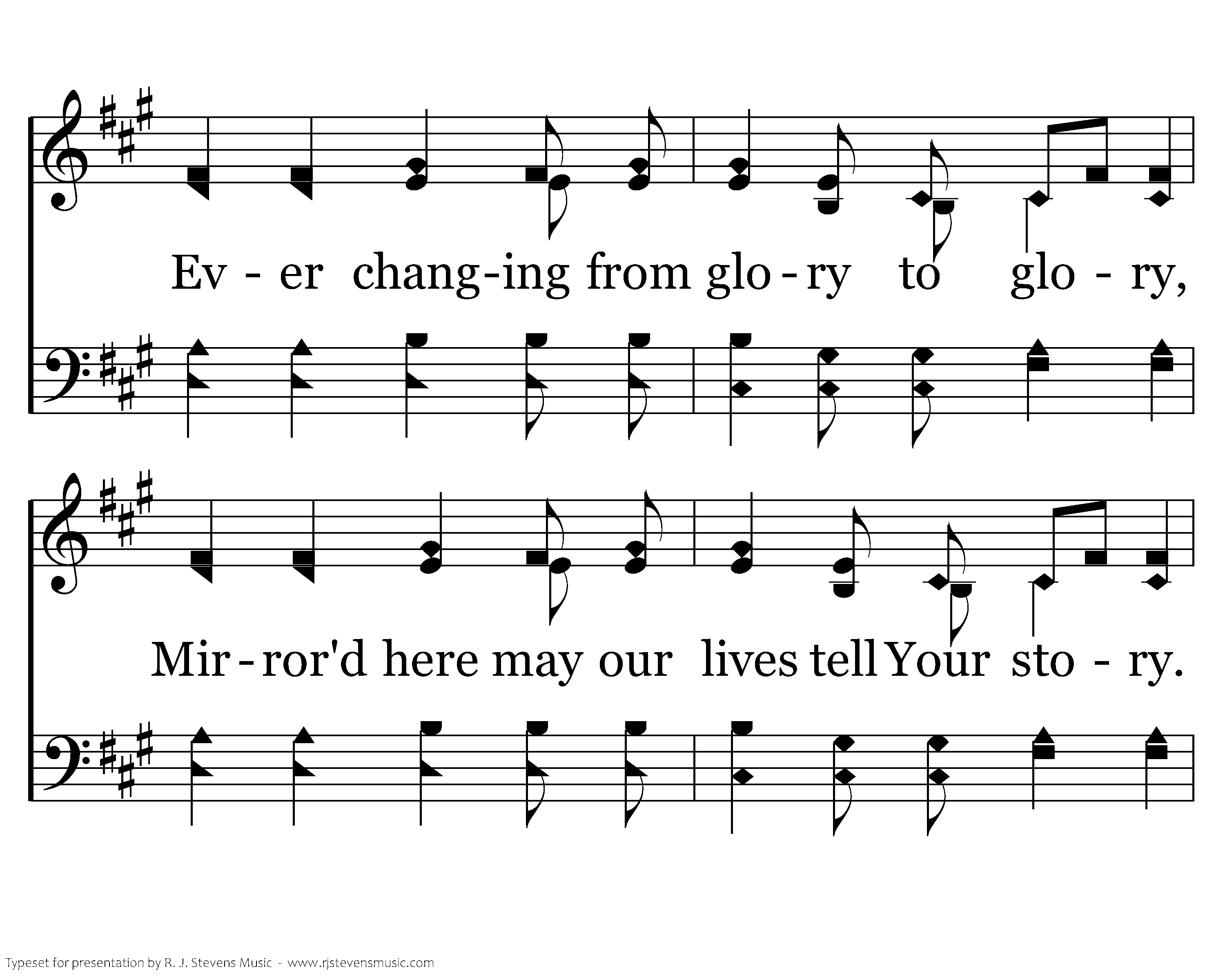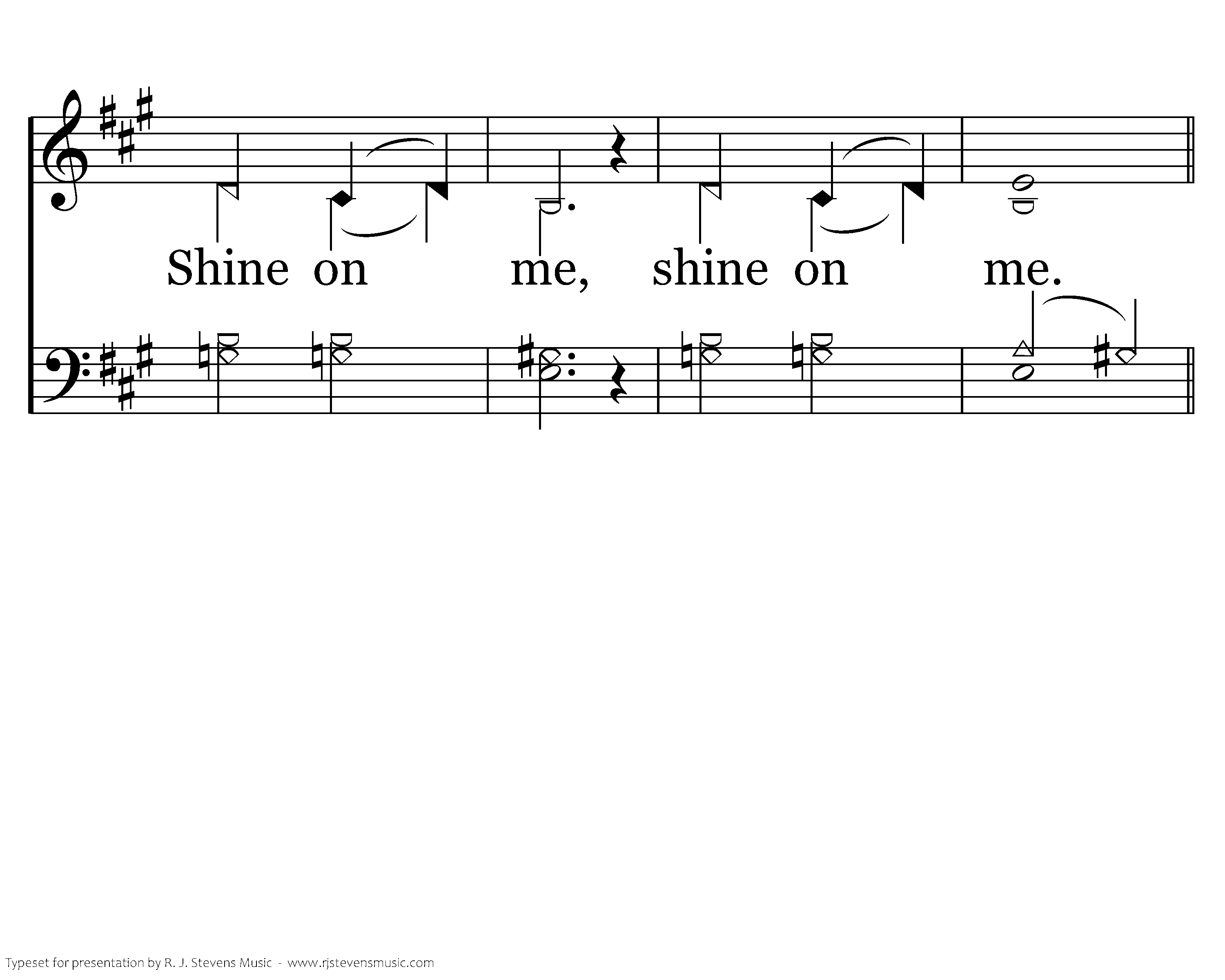 As we gaze on Your kingly brightness, So our faces display Your likeness; Ever changing from glory to glory, Mirrored here may our lives tell Your story. Shine on me, shine on me.