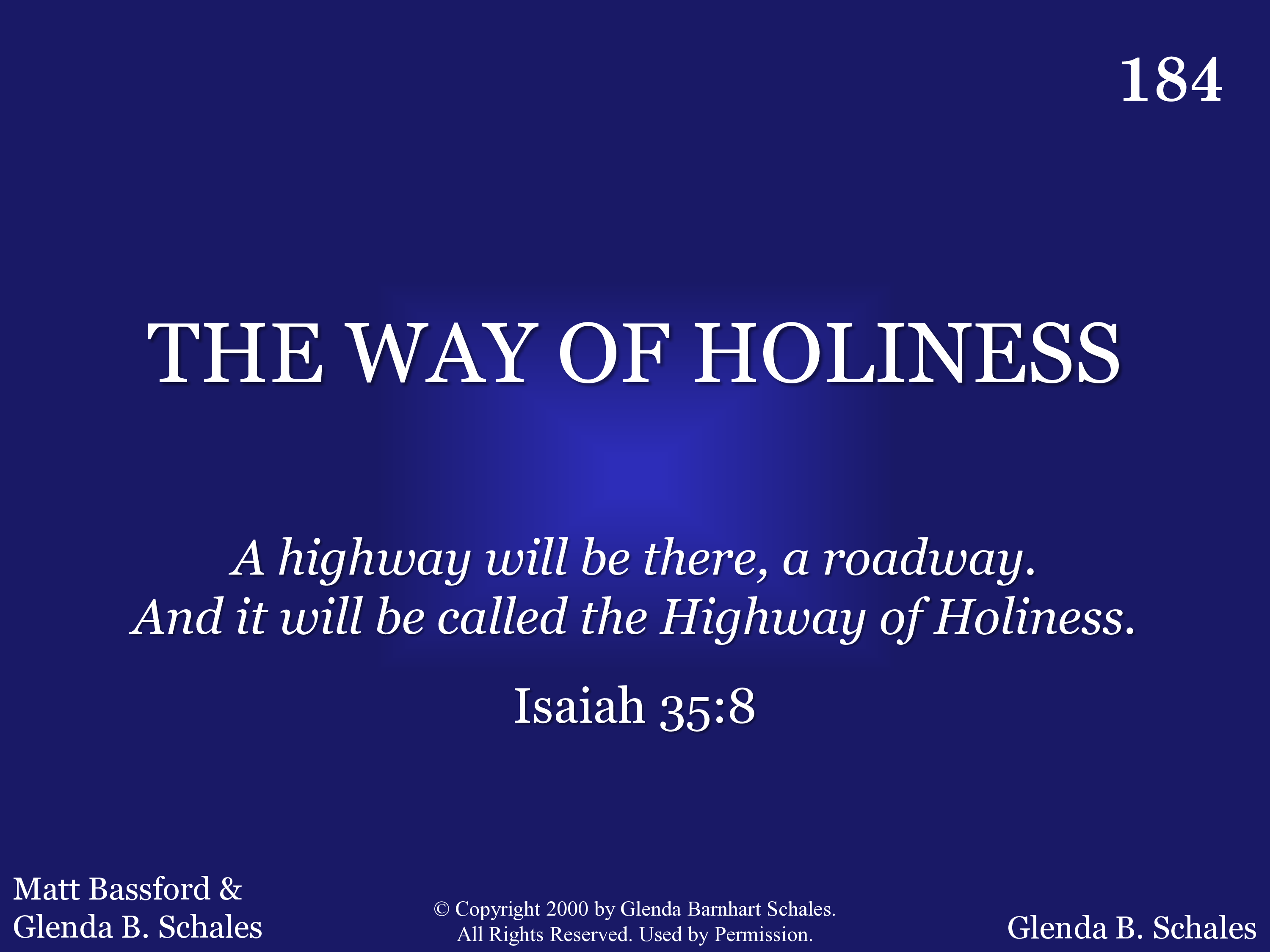 - Copyright © 2000 by Glenda Barnhart Schales. All Rights Reserved. Used by Permission.