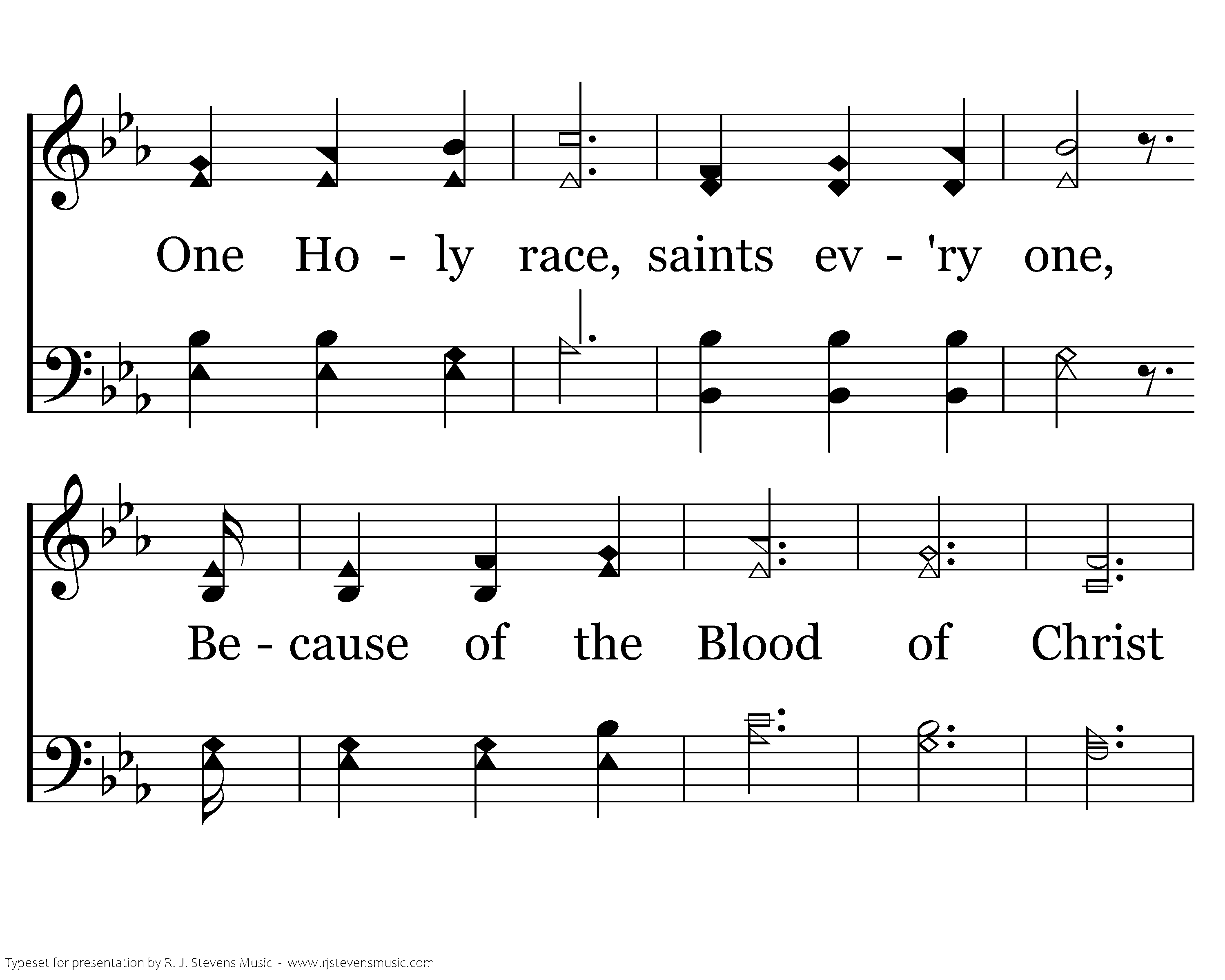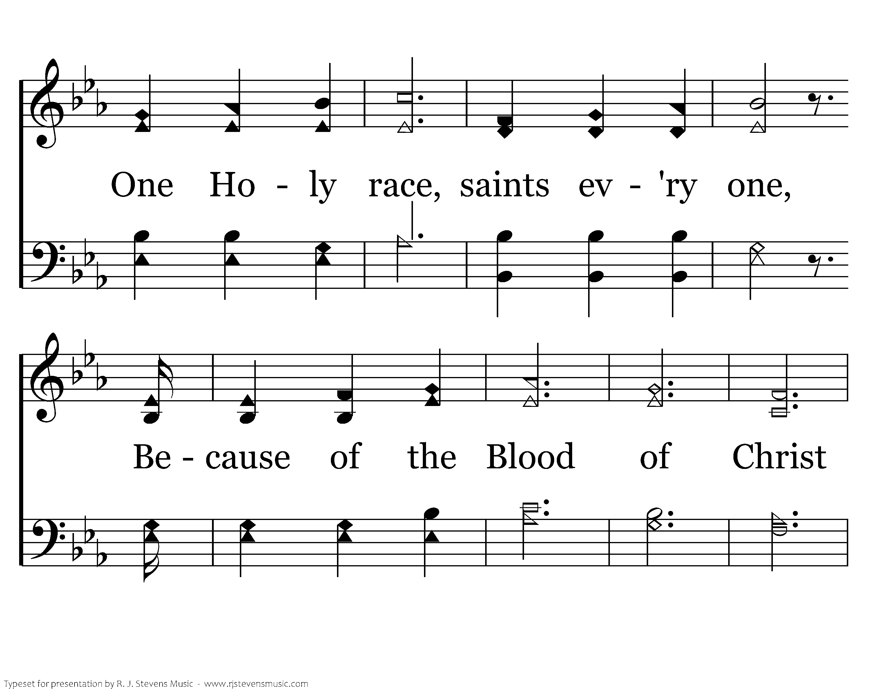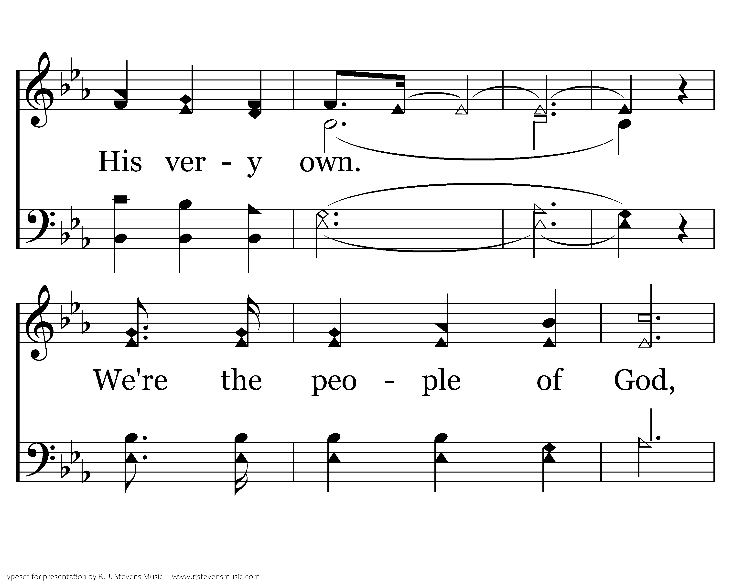 With our lips let us sing one confession, with our hearts hold to one truth alone; For He has erased our transgression, claimed us and called us His own, His very own. We're the people of God, called by His Name, Called from the dark and delivered from shame. One Holy race, saints ev'ry one, Because of the Blood of Christ Jesus the Son.