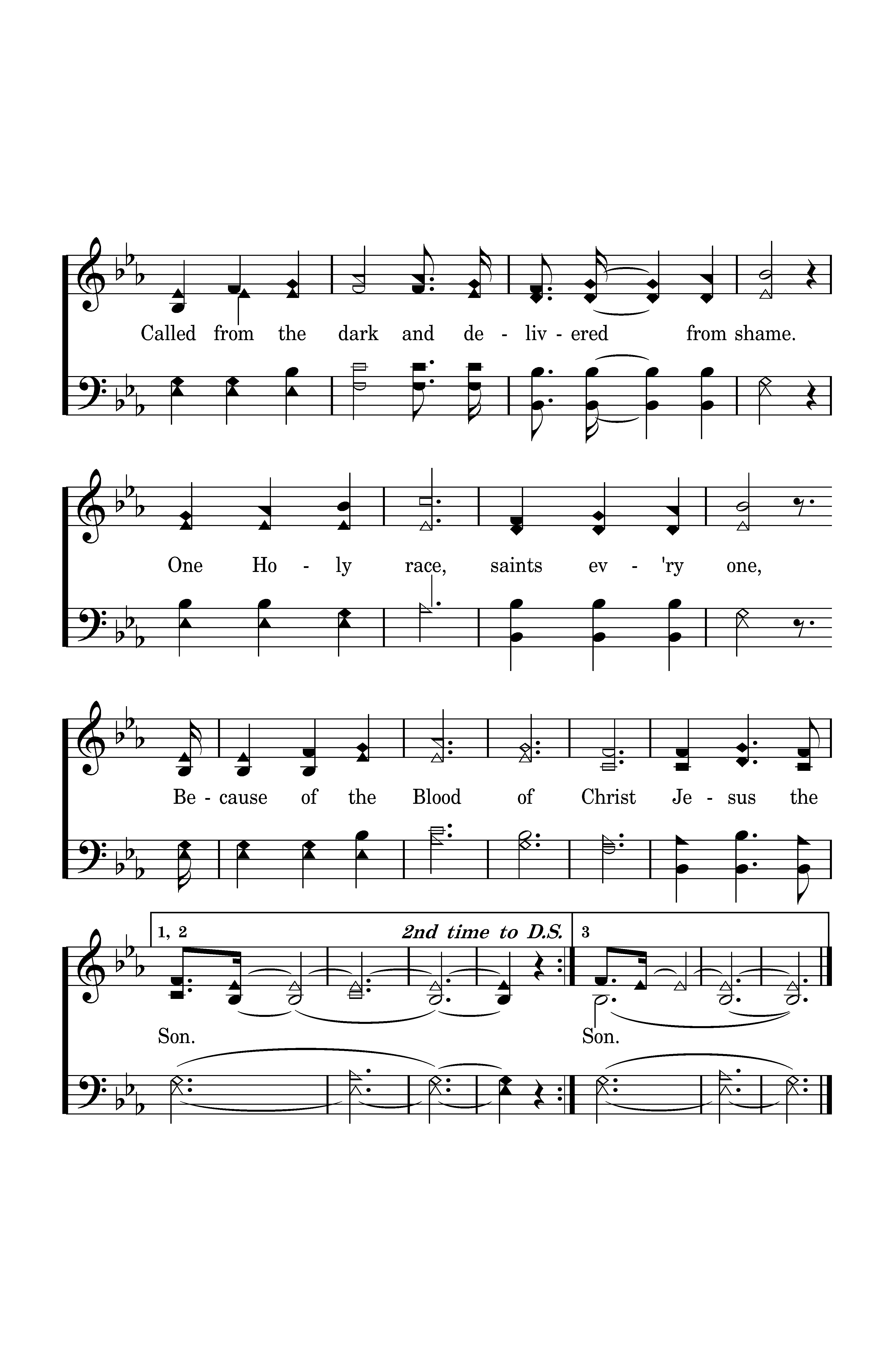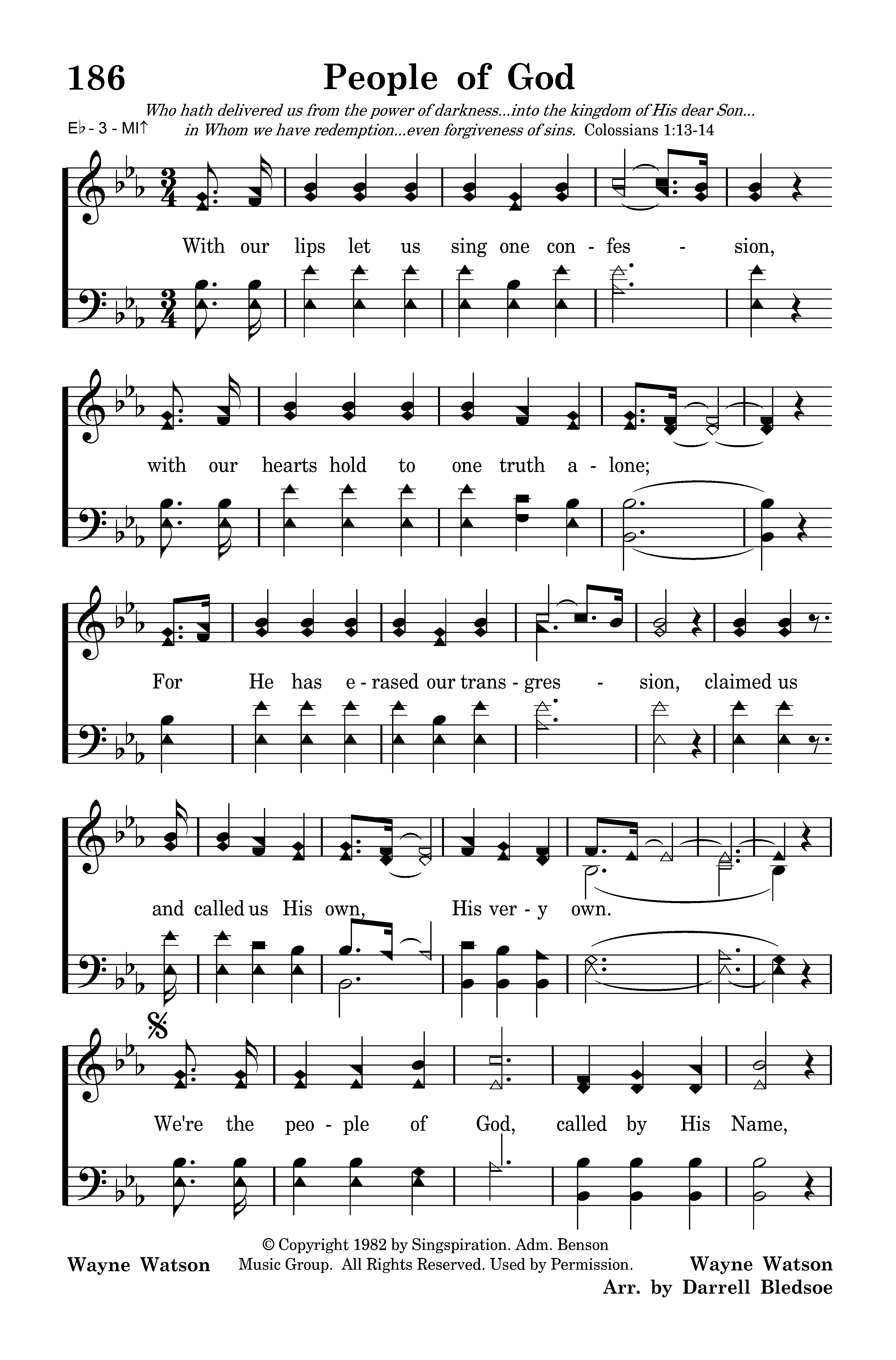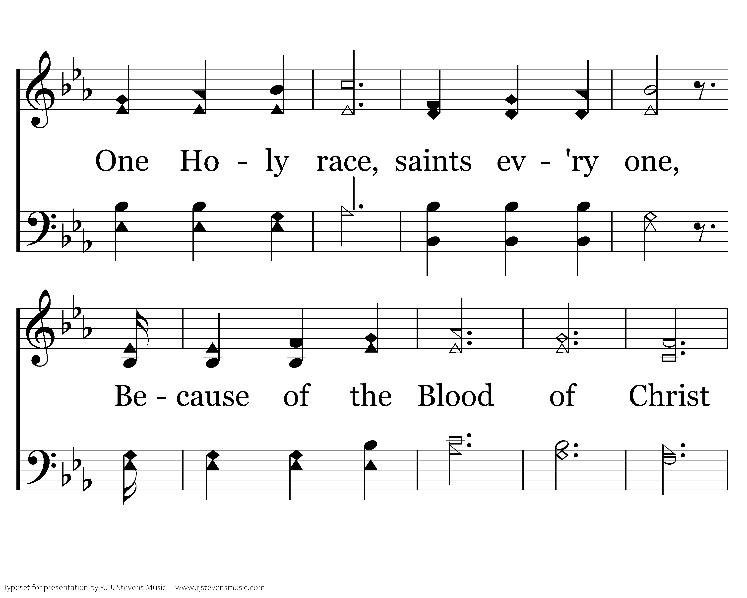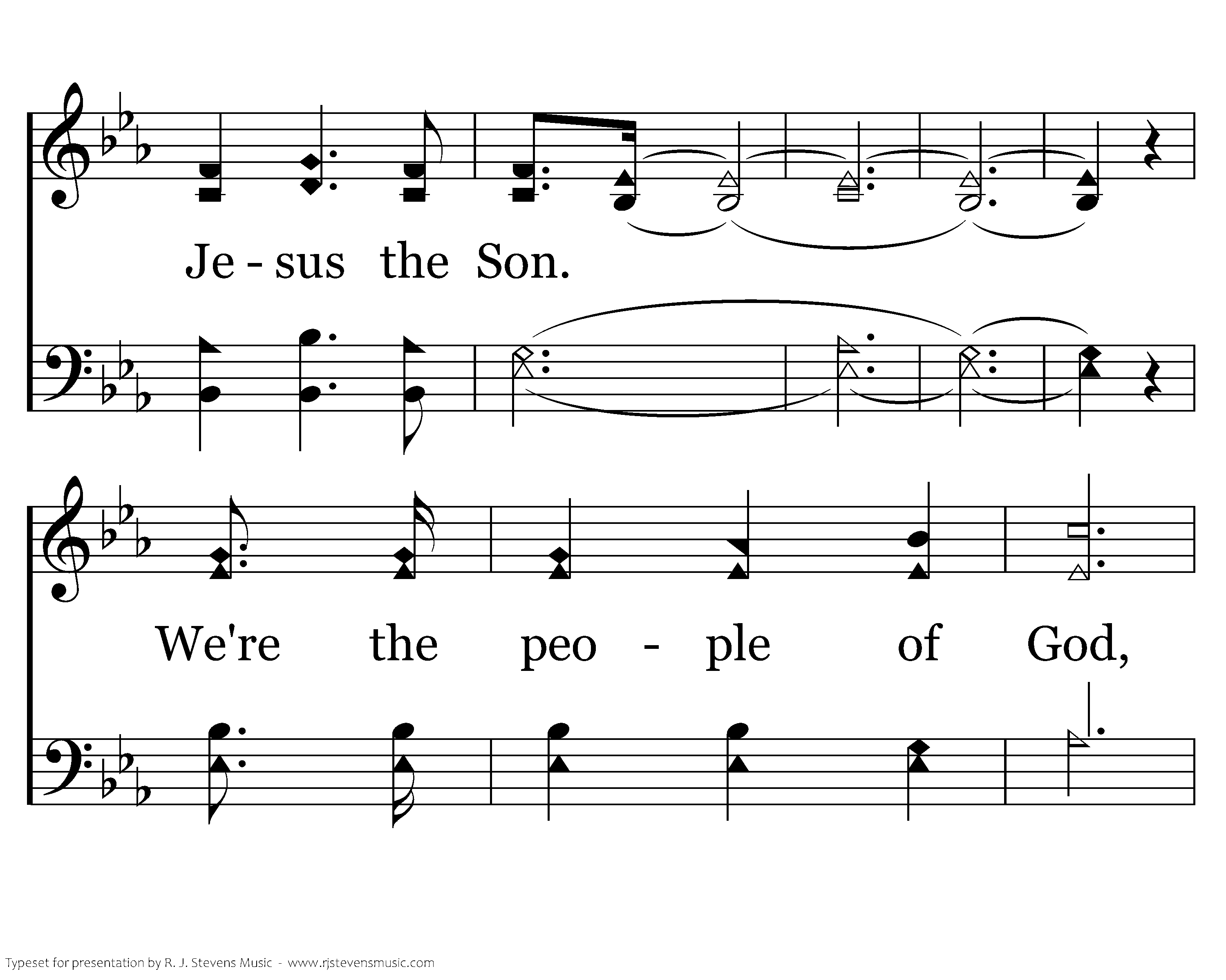 With our lips let us sing one confession, with our hearts hold to one truth alone; For He has erased our transgression, claimed us and called us His own, His very own. We're the people of God, called by His Name, Called from the dark and delivered from shame. One Holy race, saints ev'ry one, Because of the Blood of Christ Jesus the Son.